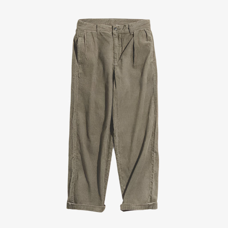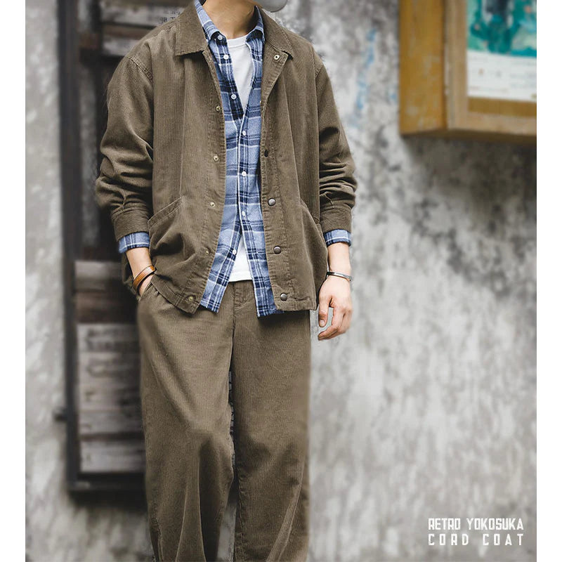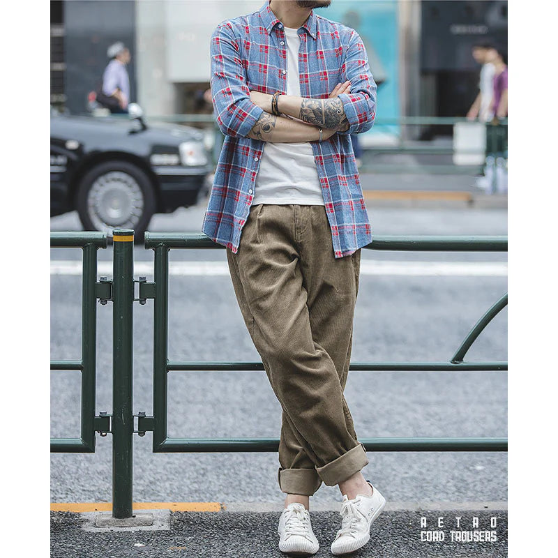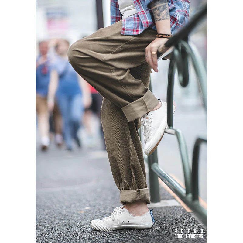 The corduroy pants, made from a classic fall and winter fabric, feature a plush surface that enhances warmth and a brushed finish that creates a soft sheen. Widely recognized for its casual appeal, corduroy has become a staple in American-inspired outdoor styles. It offers a comfortable and relaxed fit, perfect for adults who appreciate timeless style.