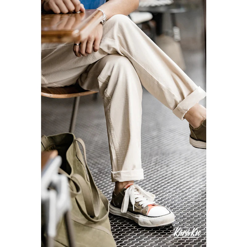Natural Cotton Canvas Blend Trousers