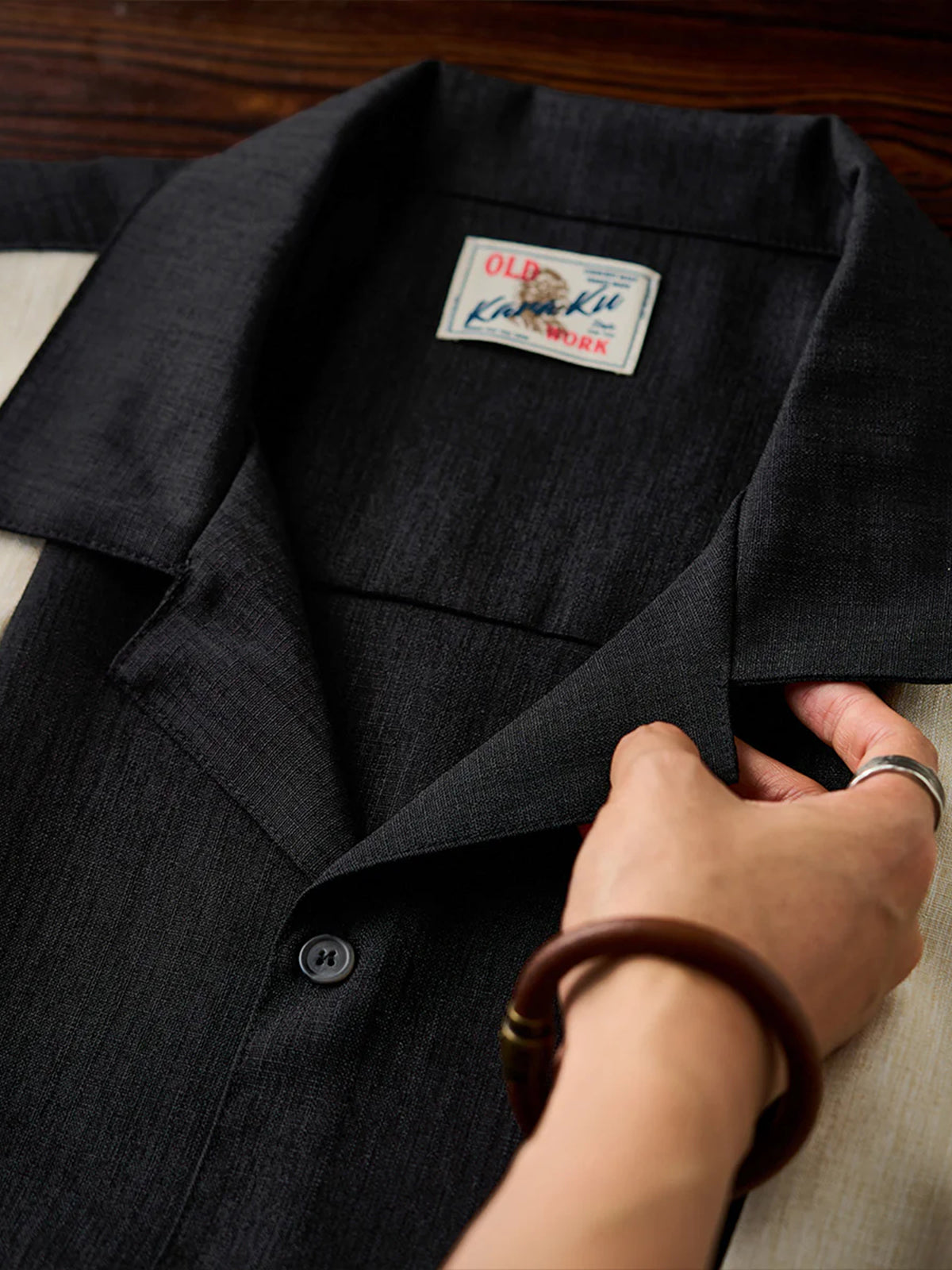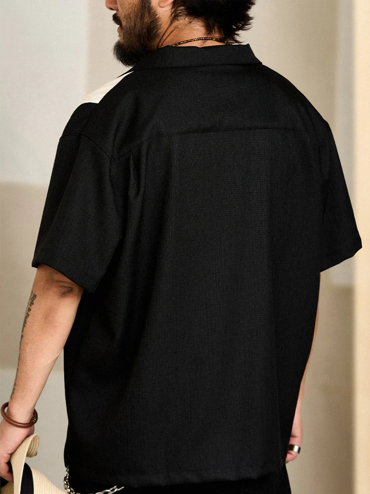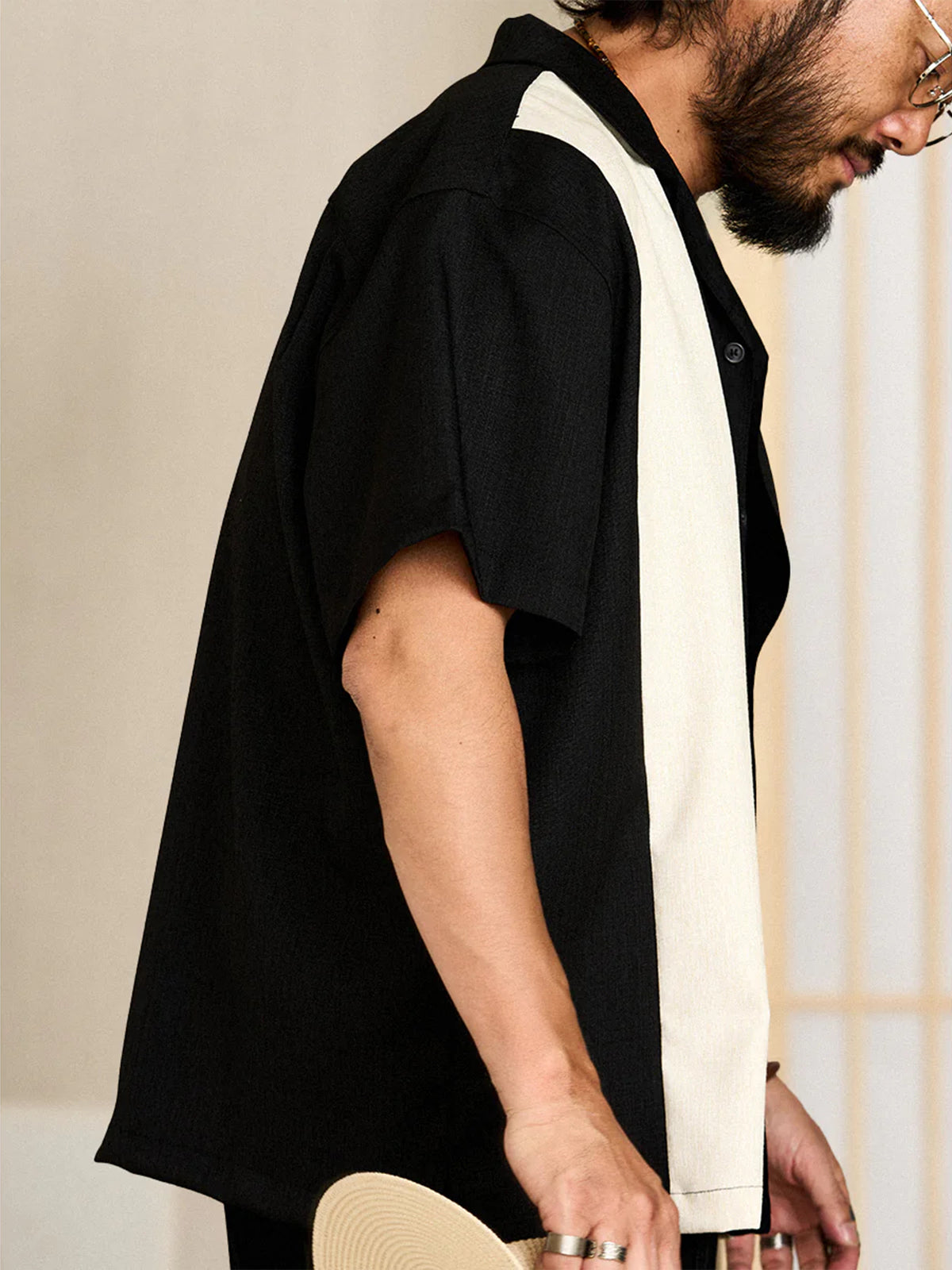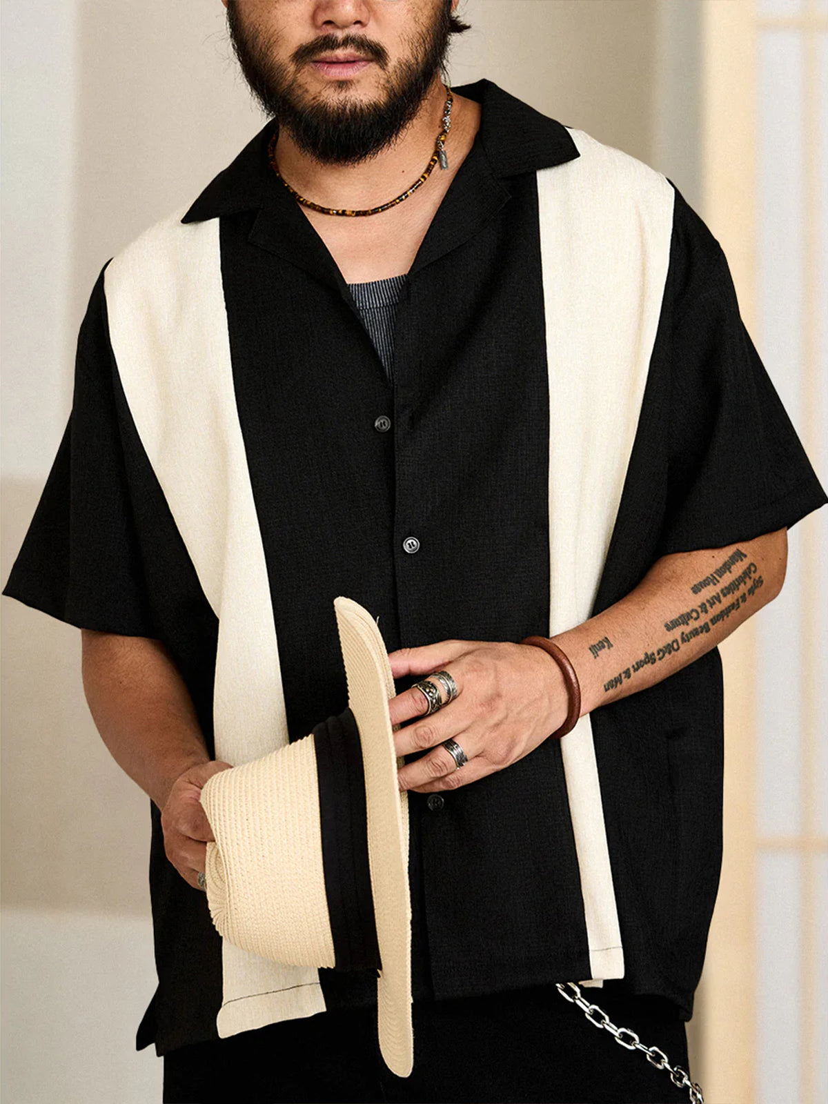 Solid Tricolor Peach Leather Cuban Collar Shirt