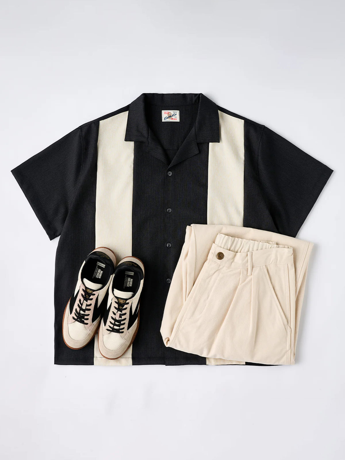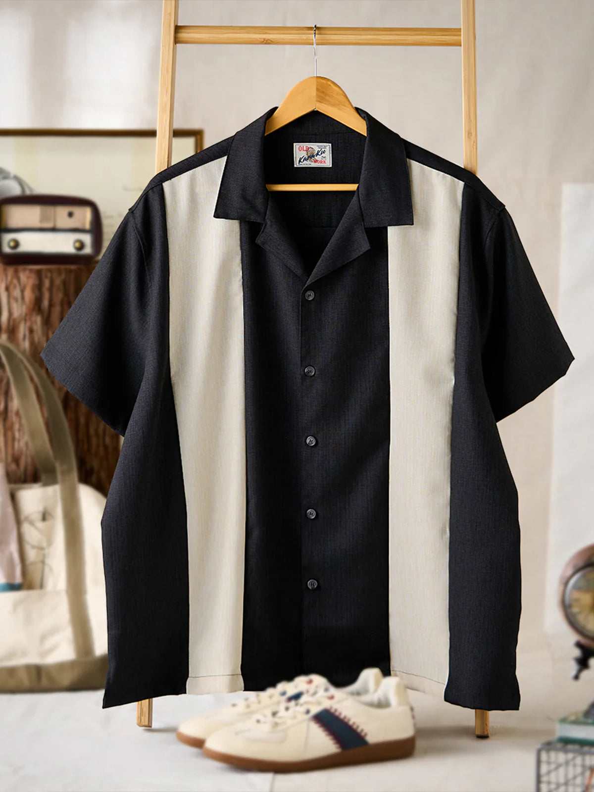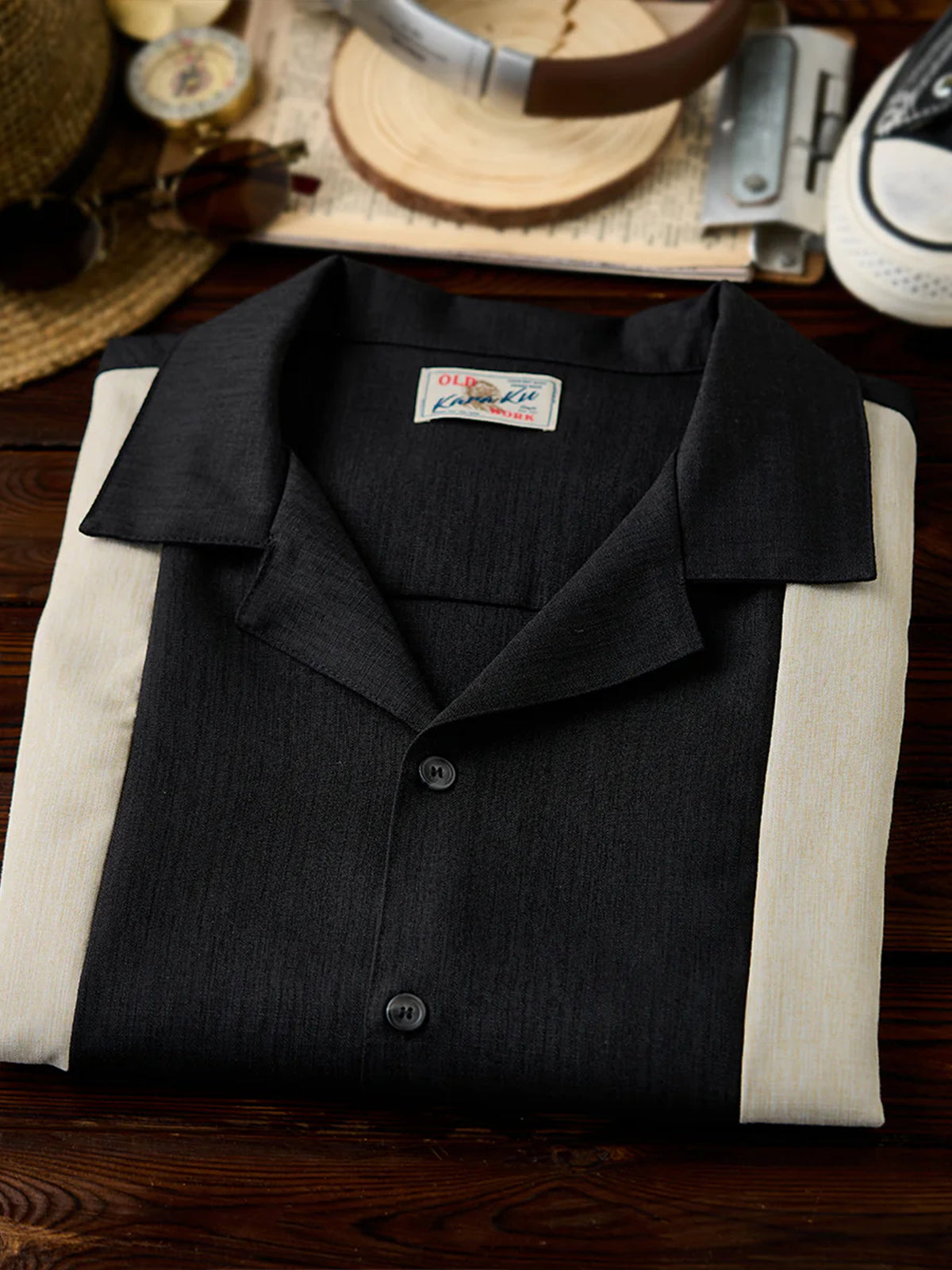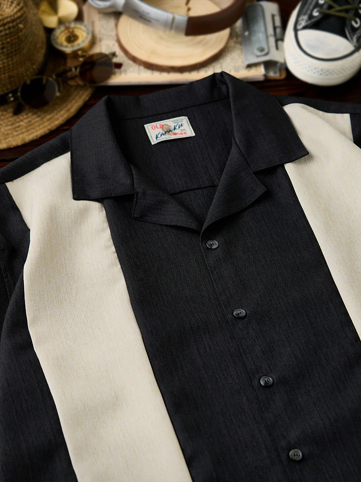 Solid Tricolor Peach Leather Cuban Collar Shirt