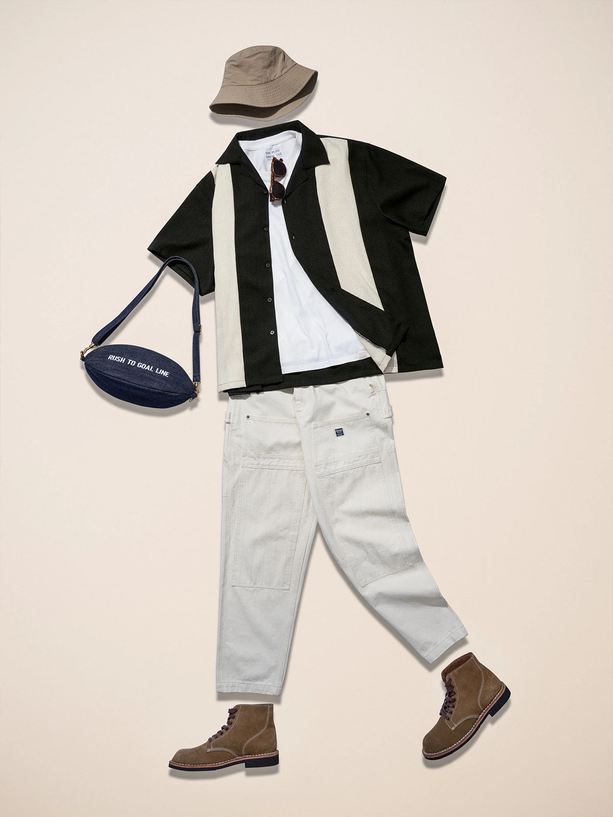 Striped & Solid Washed Short Sleeve Denim Work Shirt