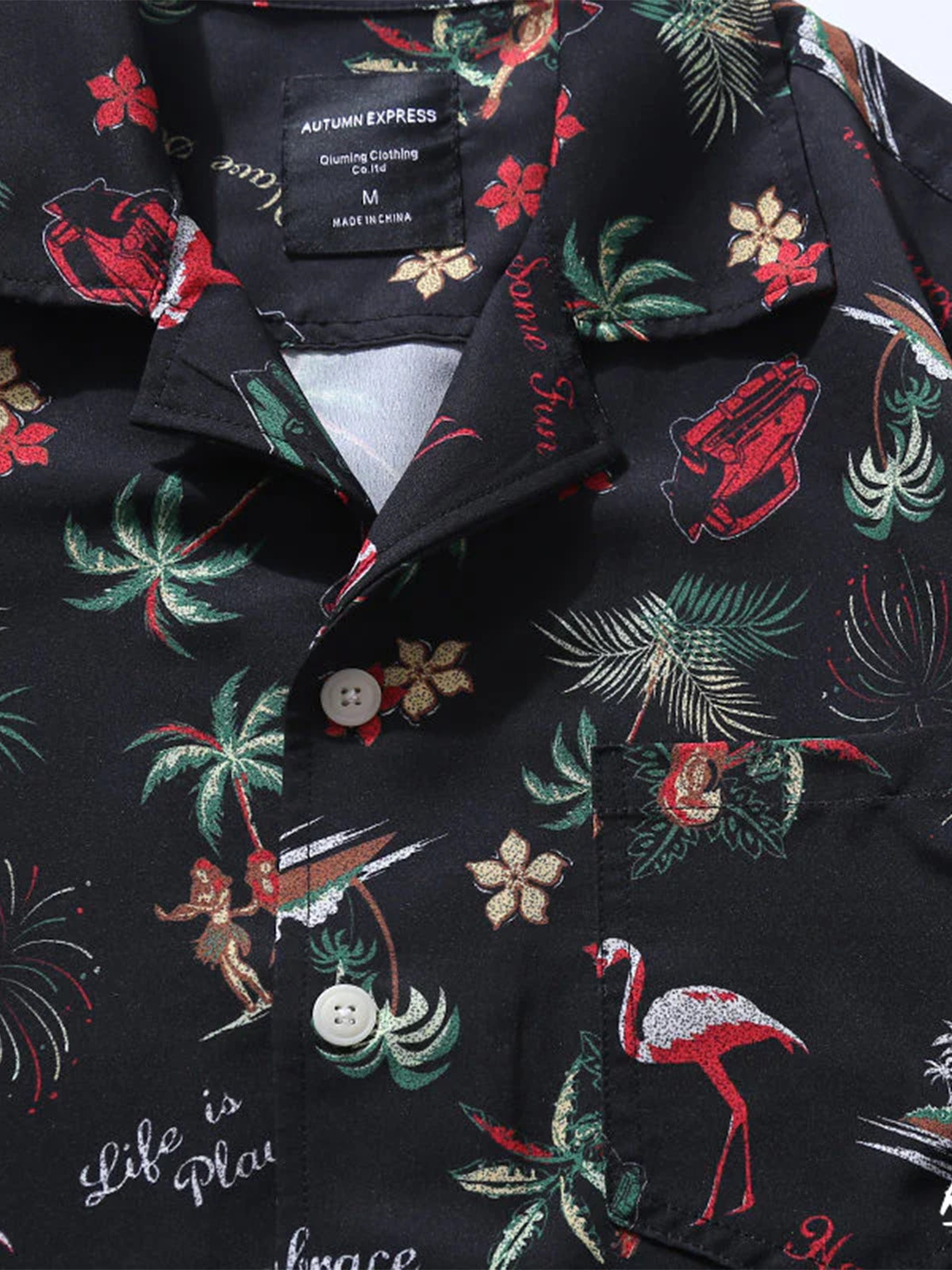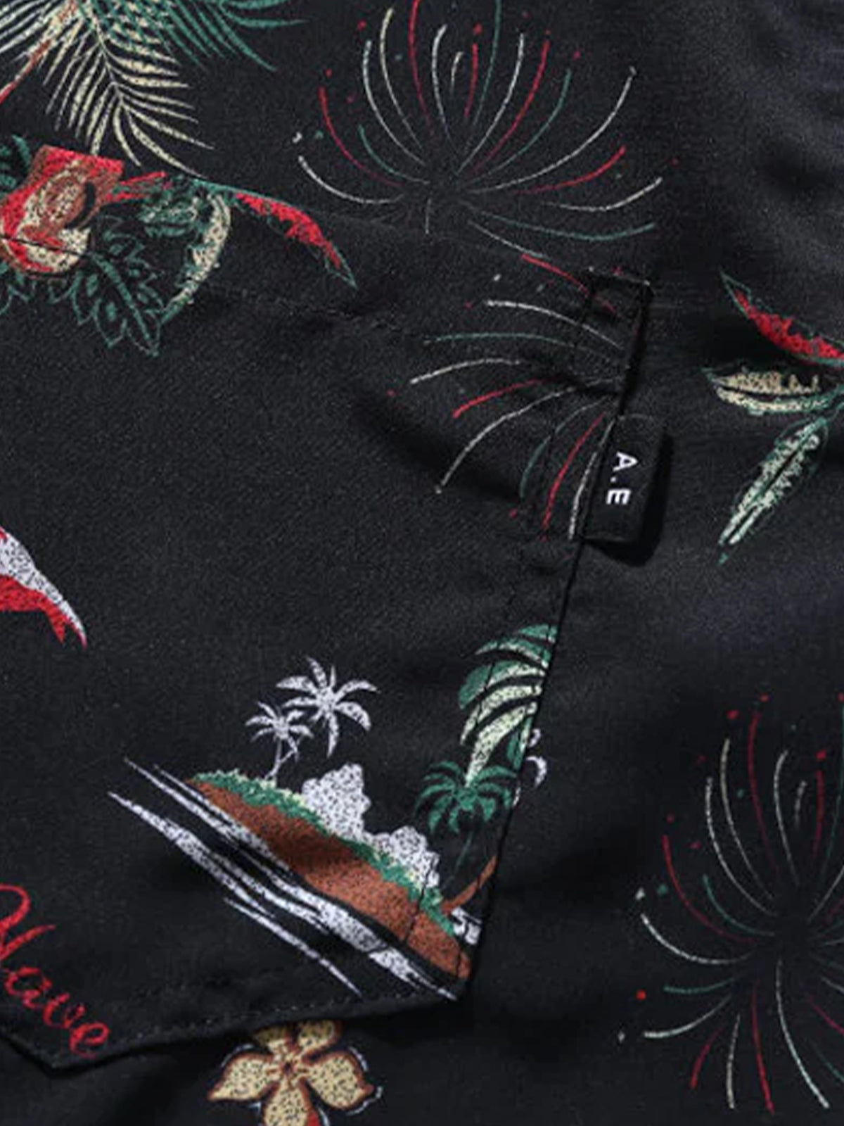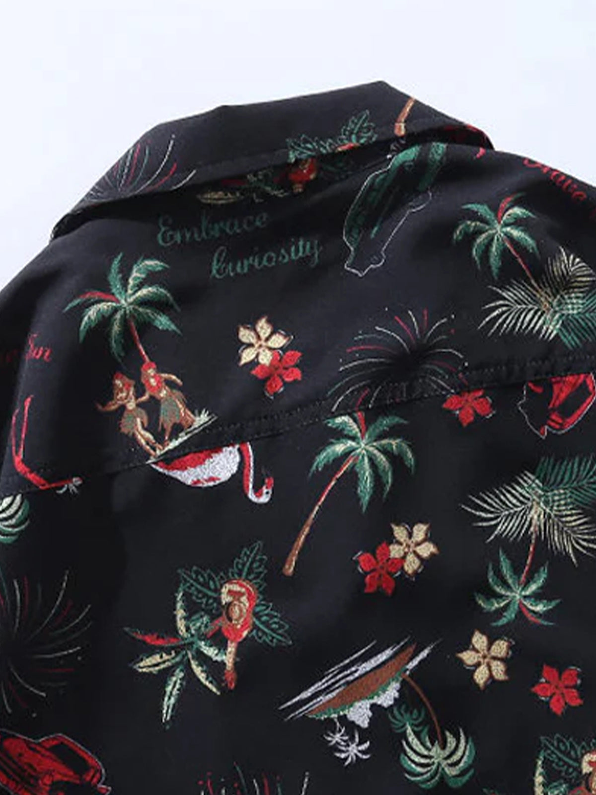 Utagawa Kuniyoshi's "Waste Calligraphy on the Wall of the Treasure House" Graffiti-style Printed Open-collar Shirt
