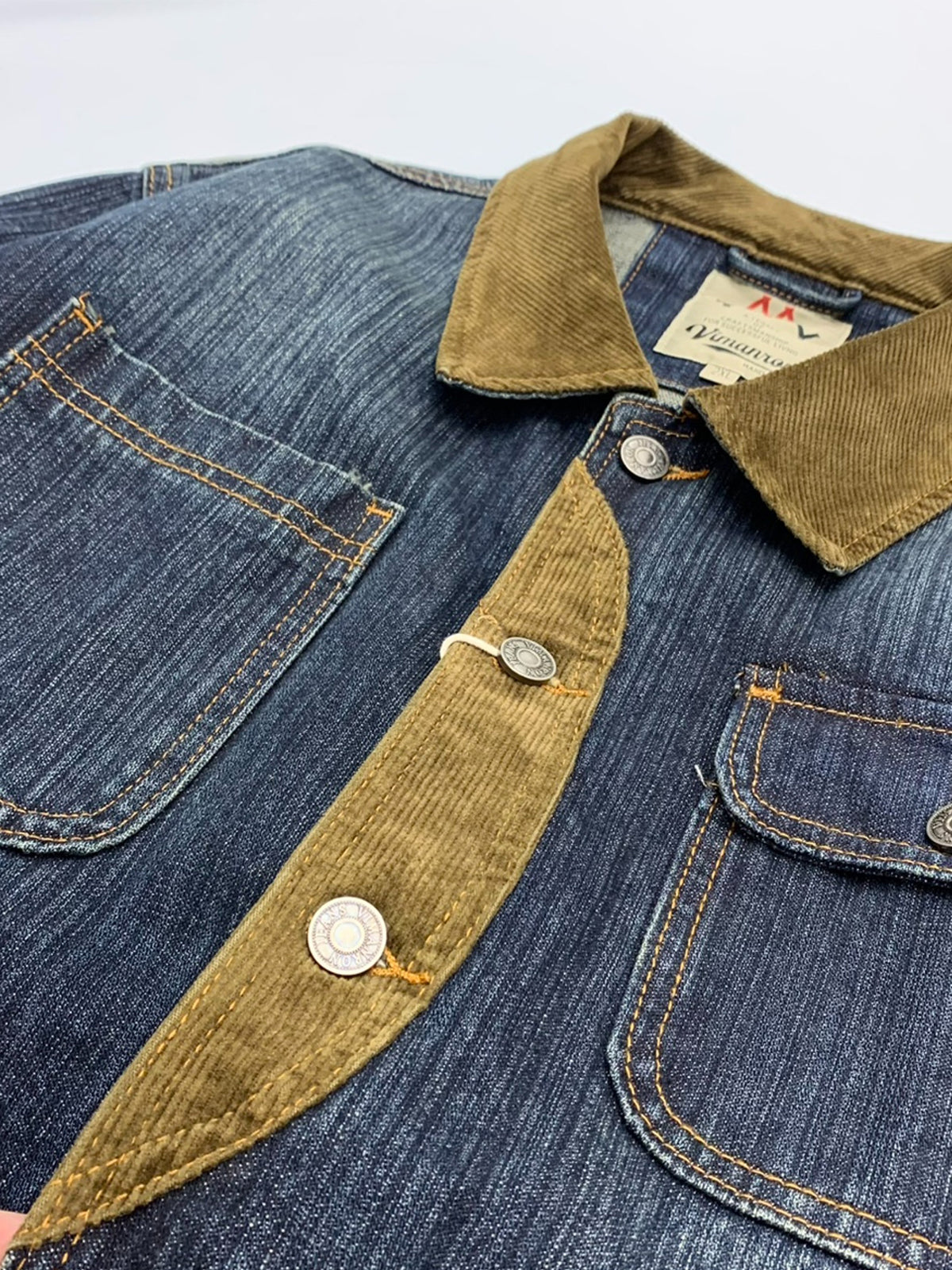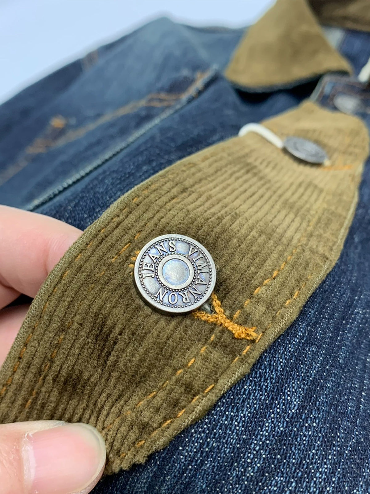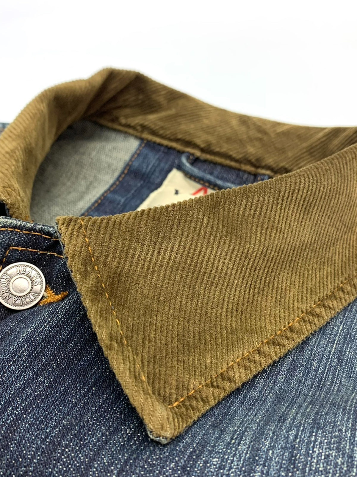 - Fabric Features: Washed denim with soft texture and natural fading. Corduroy collar adds warmth and contrast.