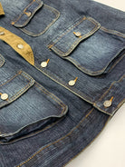 Washed Patchwork Denim Utility Jacket with Corduroy Collar