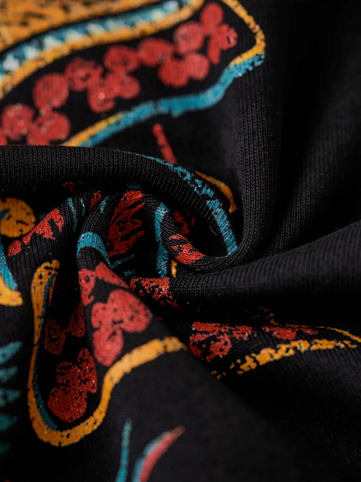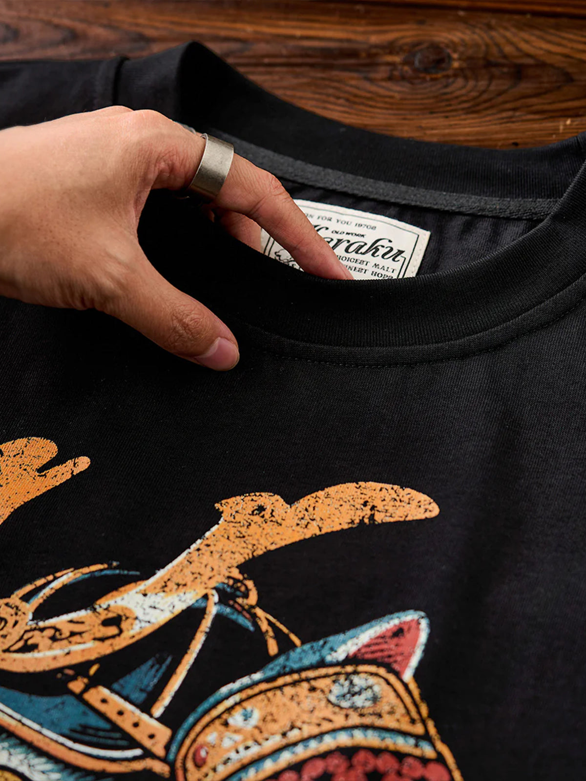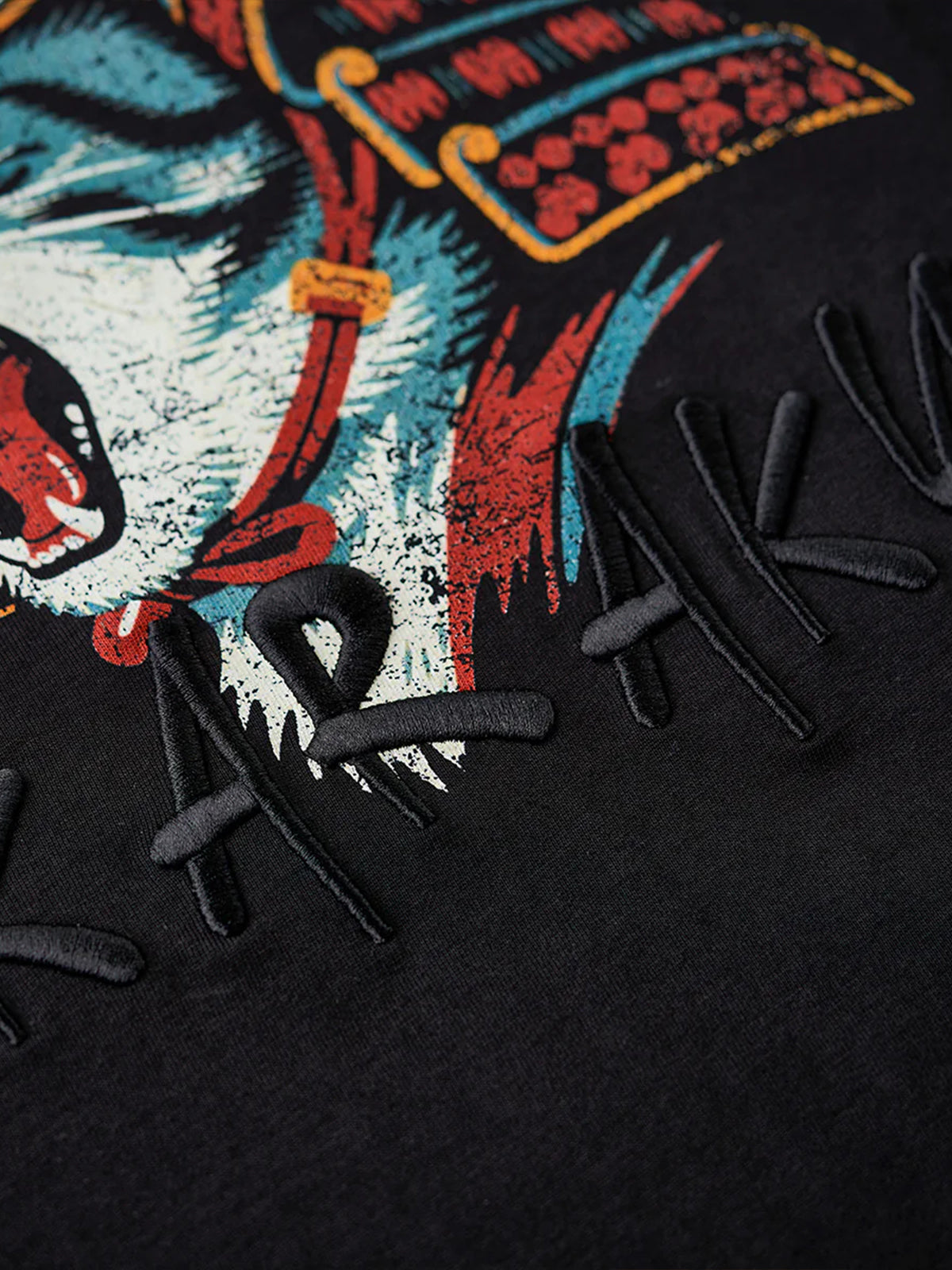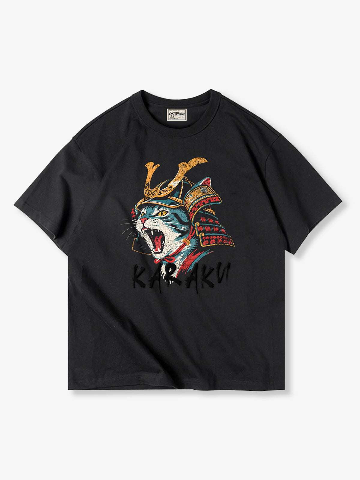 "Roaring Shogun Cat" Print & Karaku Embroidery T-shirt