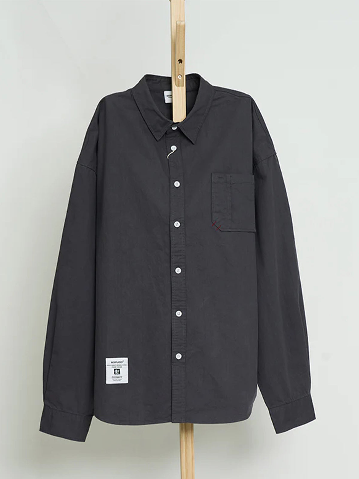 A long-sleeve shirt featuring a minimalist design that’s effortless to wear. The refined solid color offers a clean, elevated look with a subtle sense of luxury. A red contrast stitch along the chest pocket seam adds a tasteful accent—simple, but never plain. With a cohesive tone-on-tone aesthetic, this versatile shirt easily adapts to a wide range of styles, whether dressed up or down.