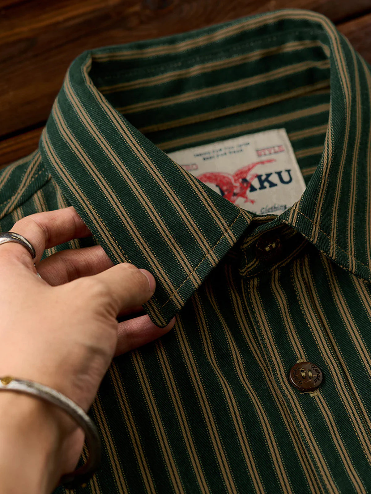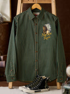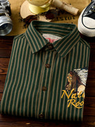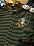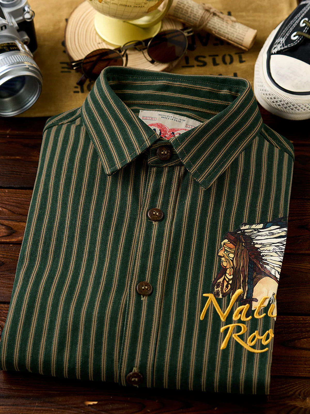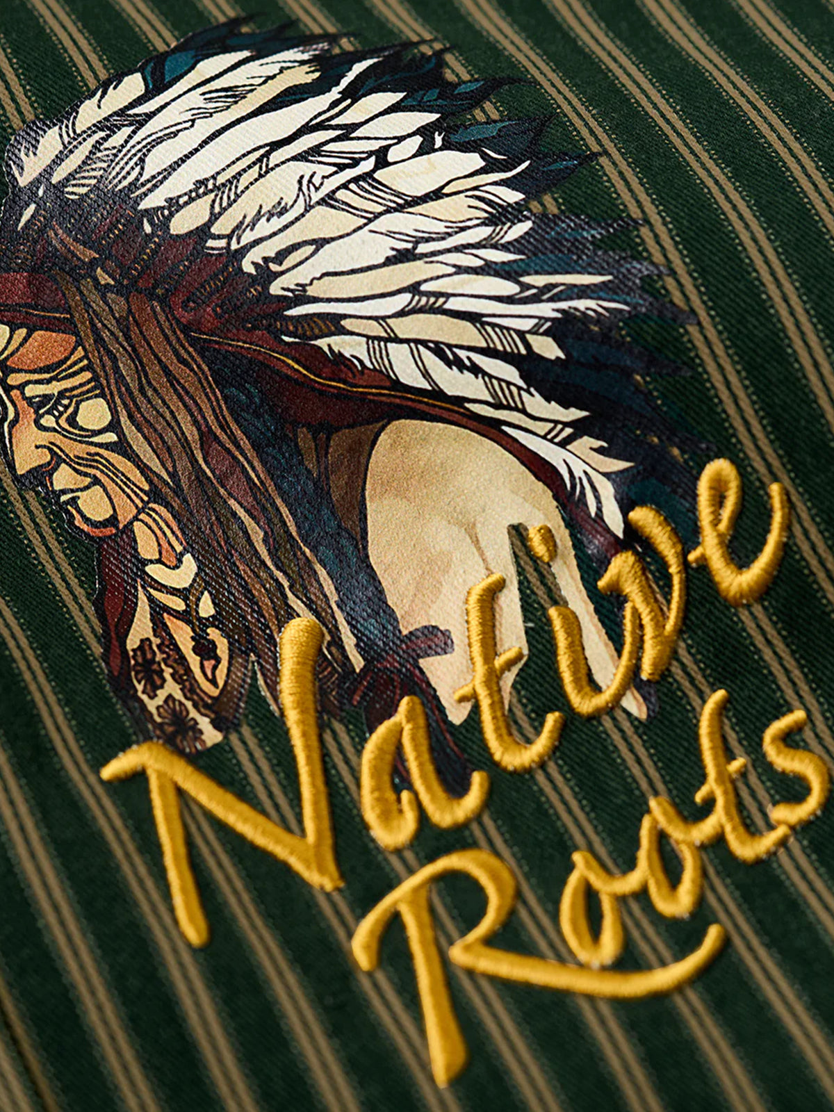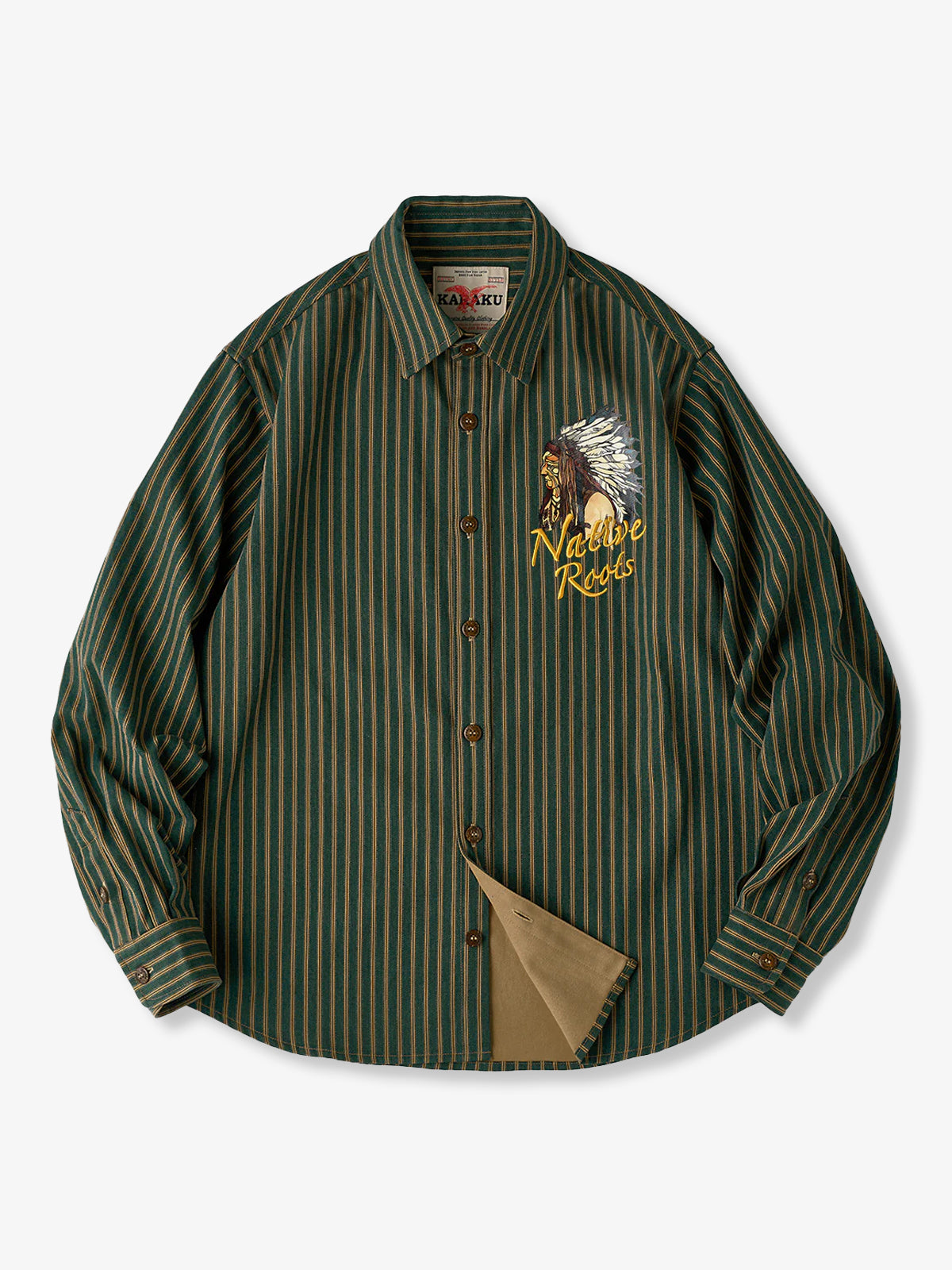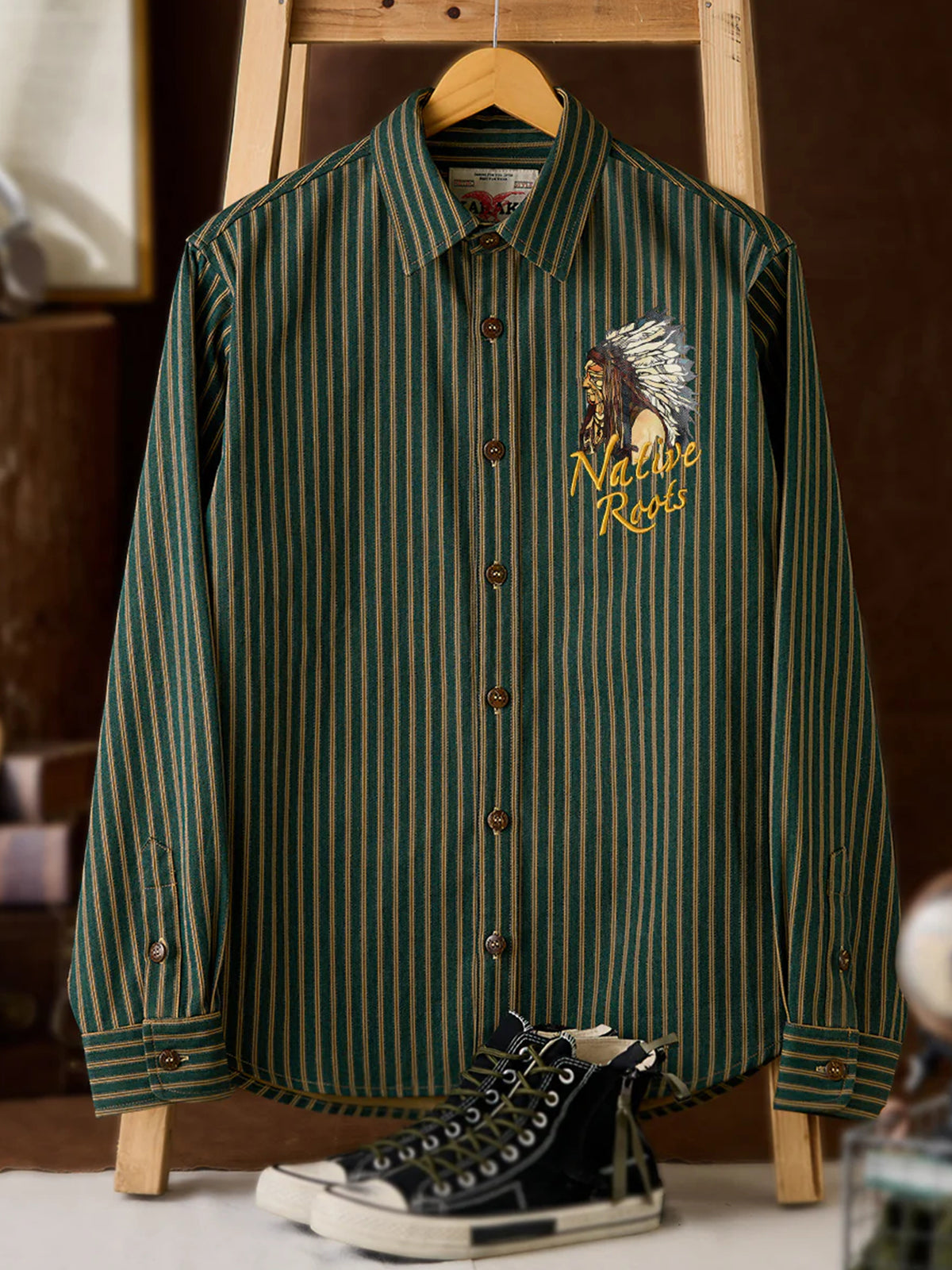 Indian Chief Print & Embroidery Heavyweight Striped Overshirt