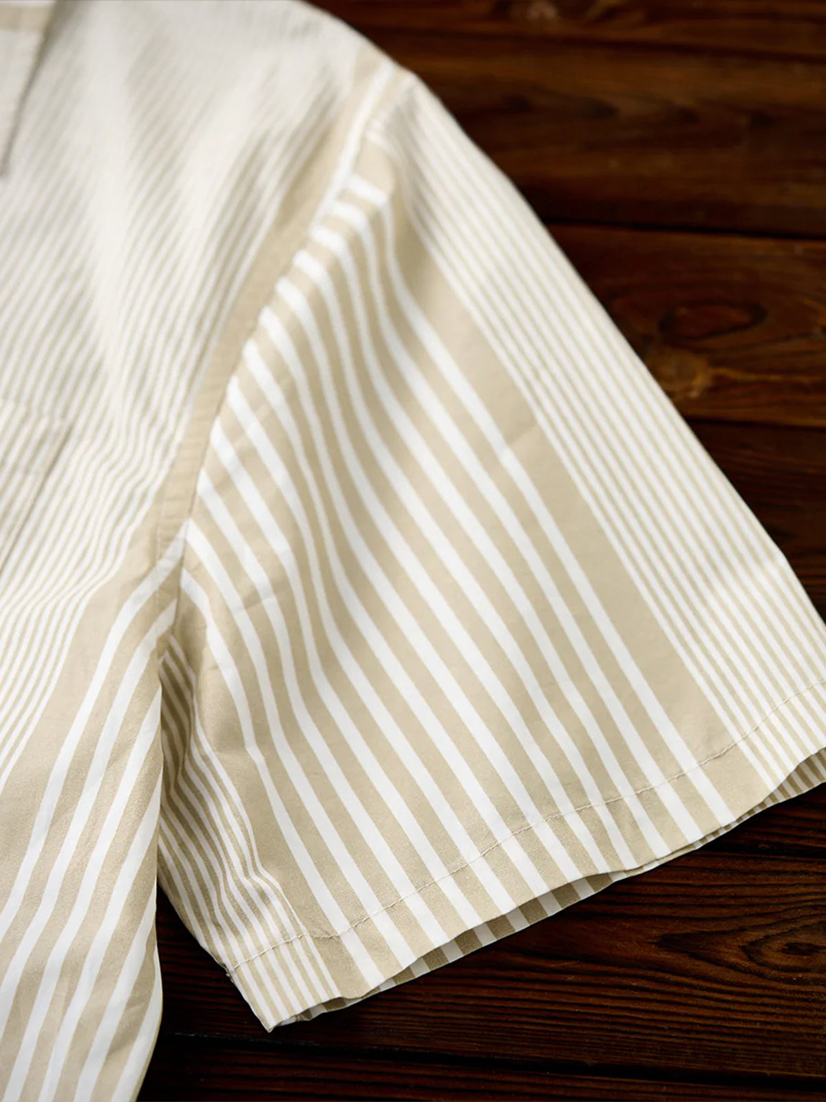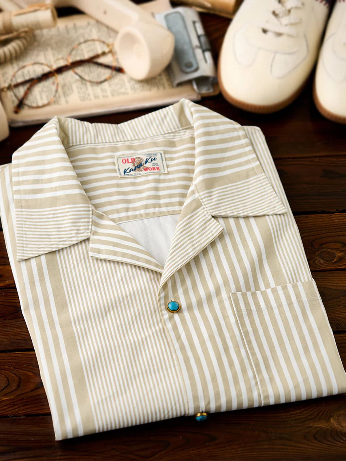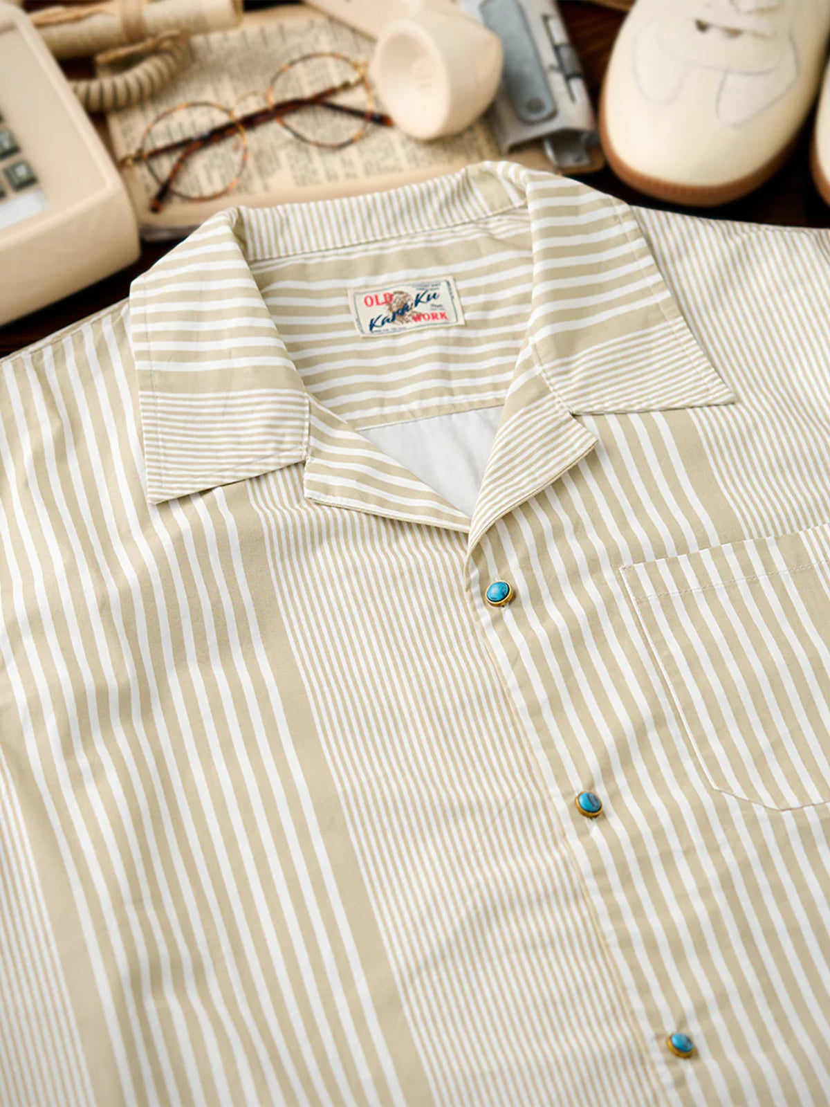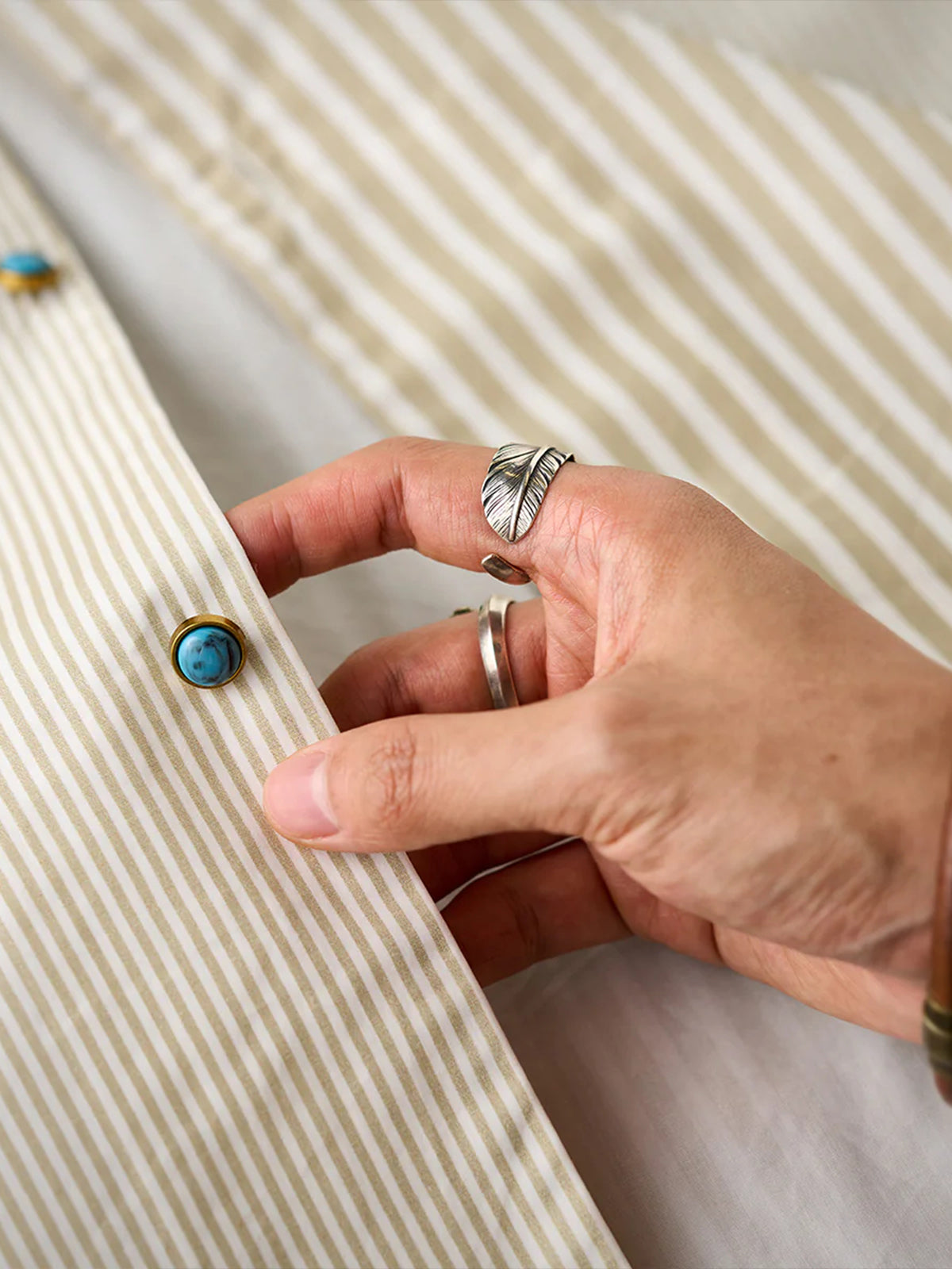 Striped Open-Collar Shirt with Turquoise-Style Buttons