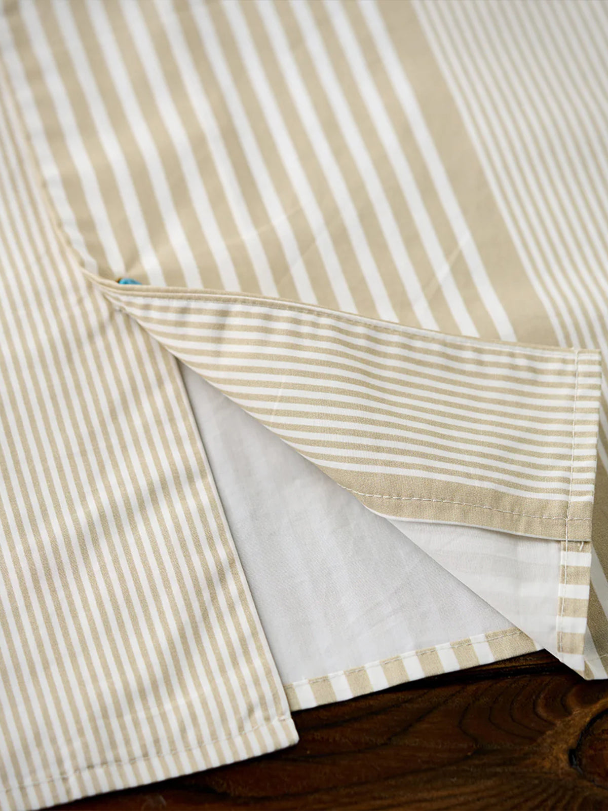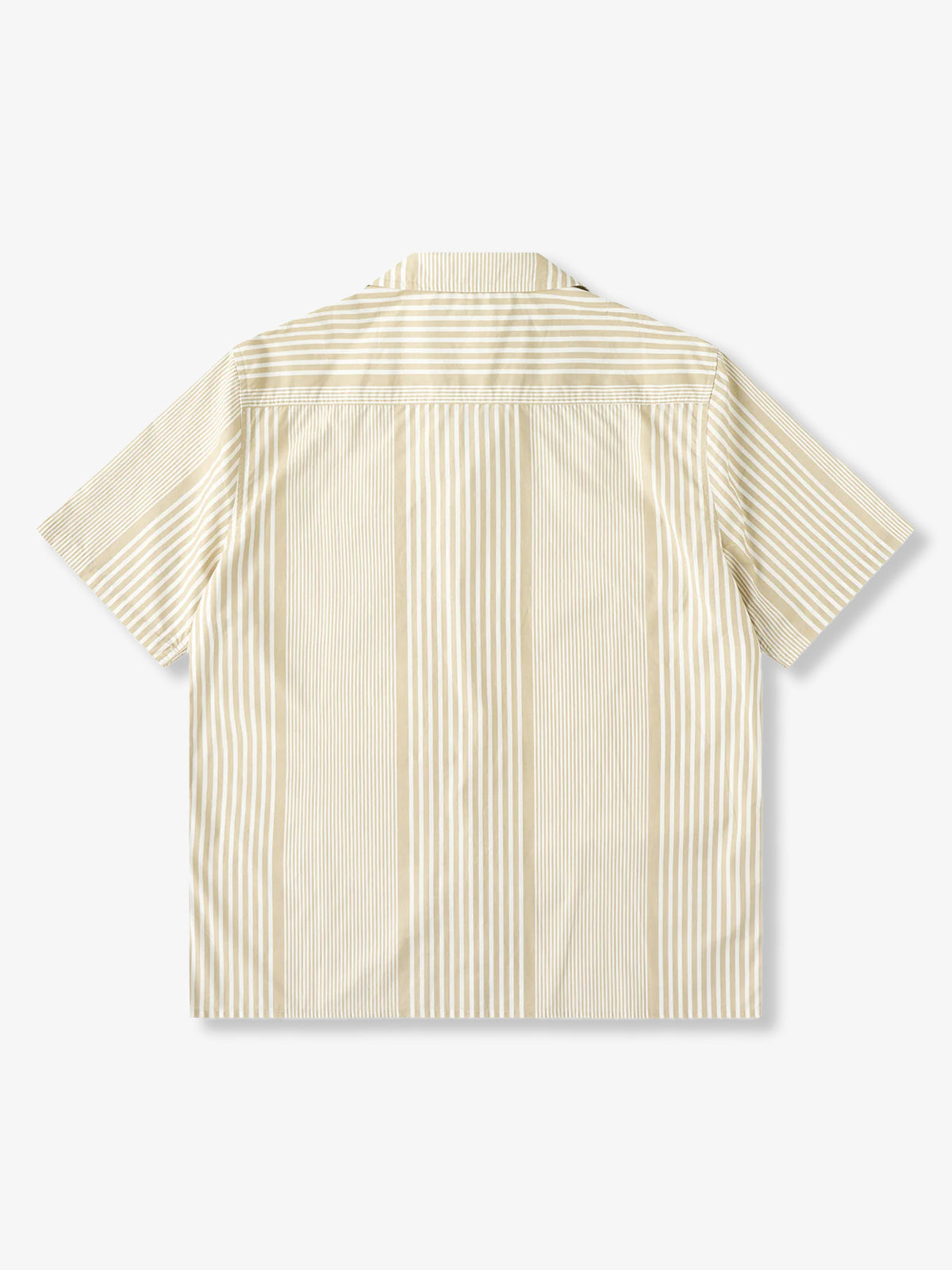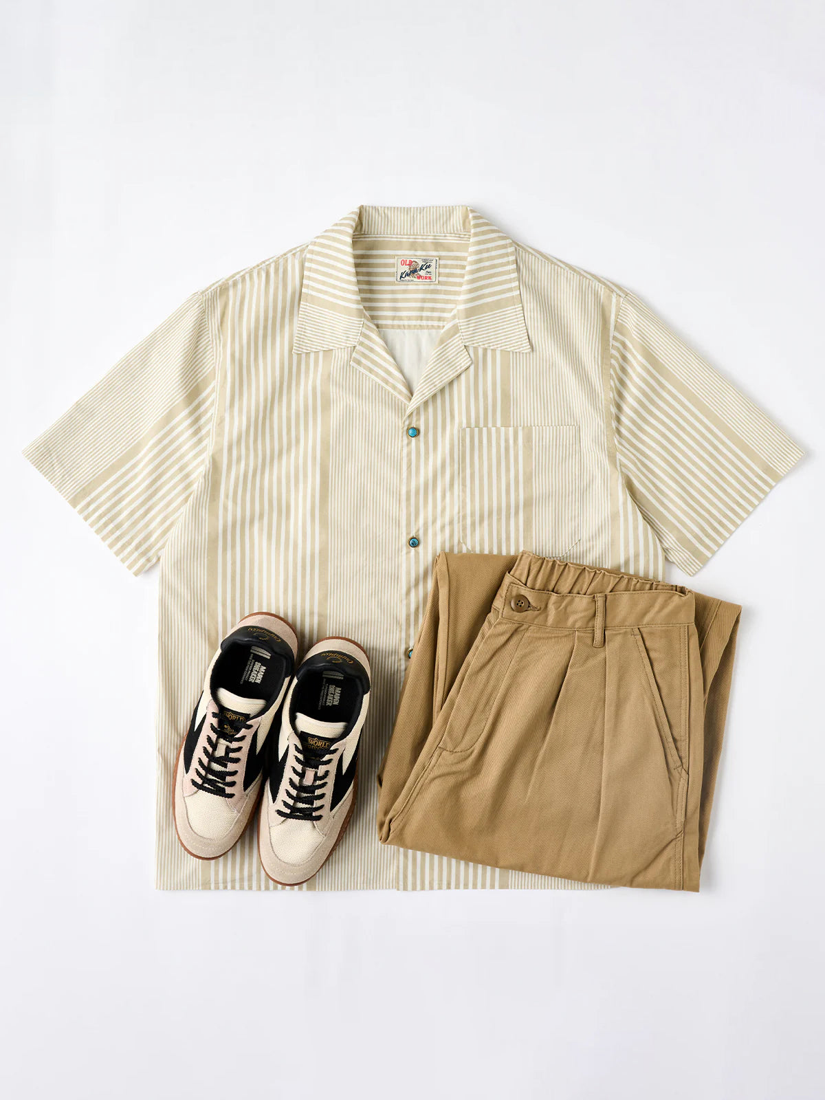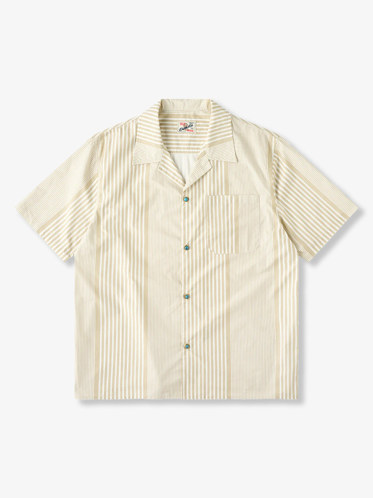 Striped Open-Collar Shirt with Turquoise-Style Buttons