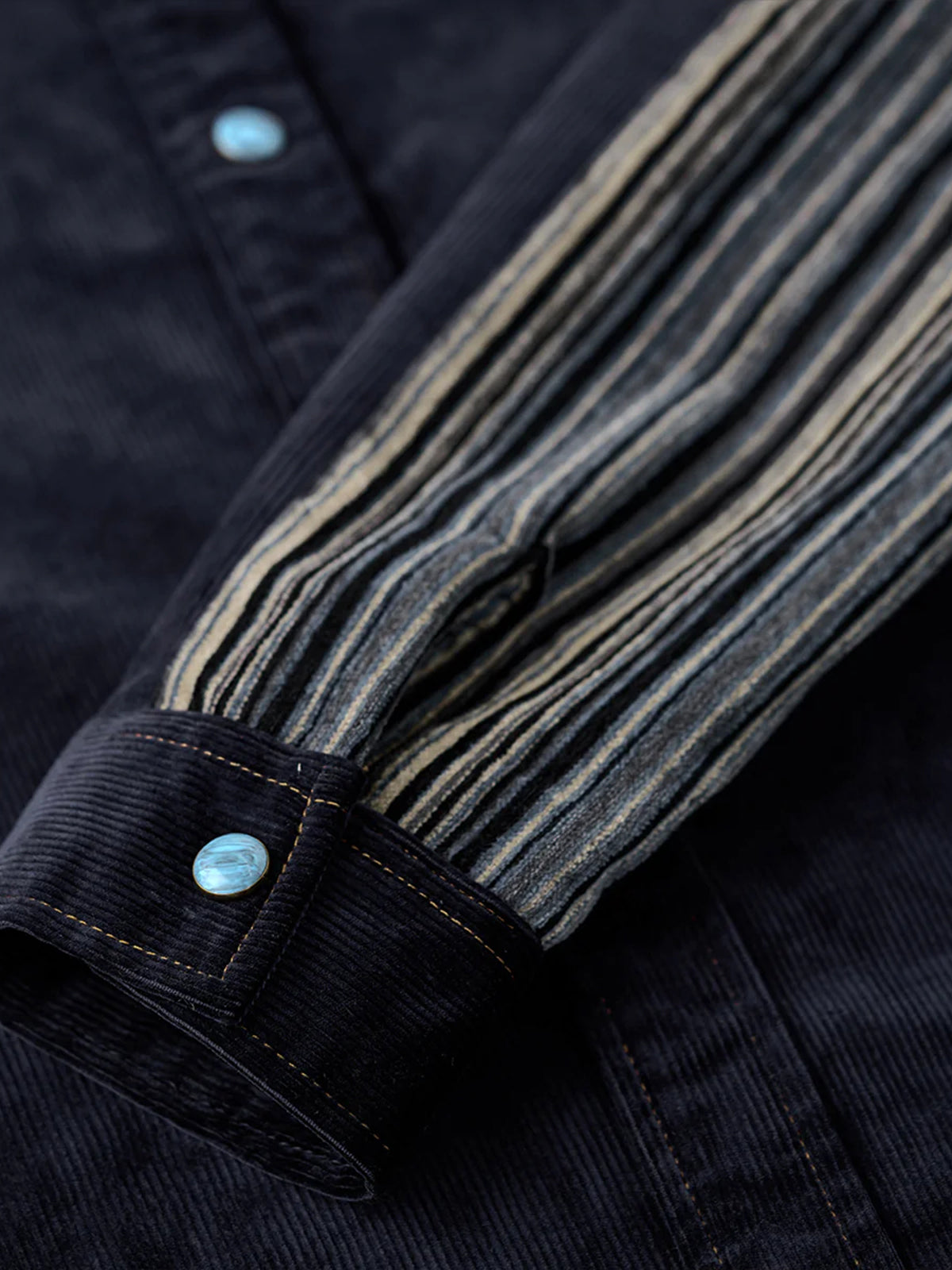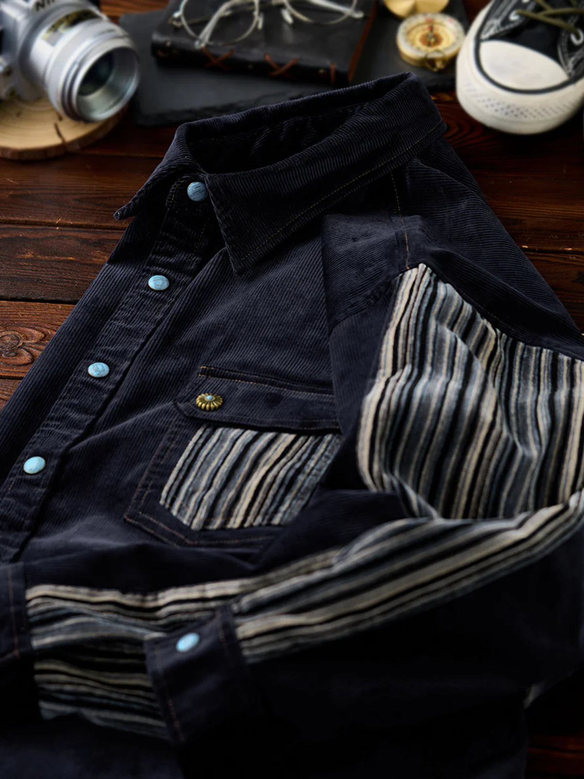 Custom Patchwork Corduroy Shirt with Turquoise-Style Buttons