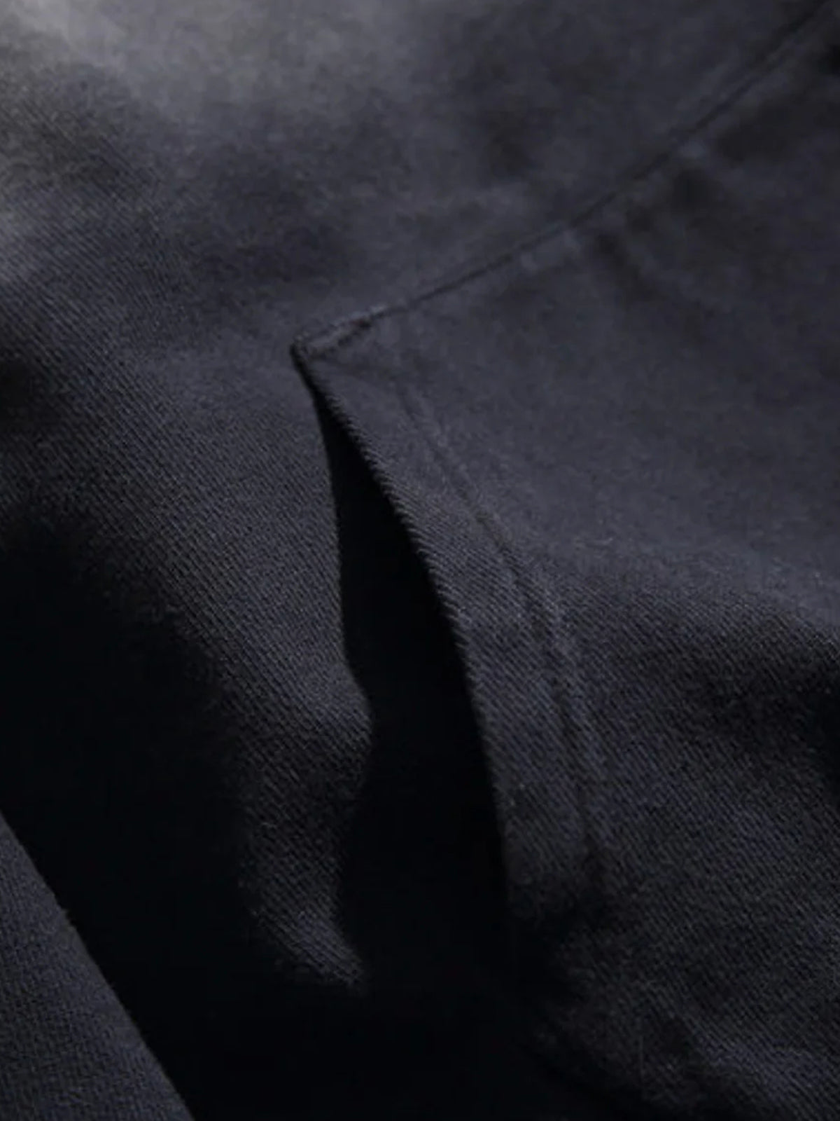 [Pre-Order] Mixed-Material Combo Denim-Trim Henley Neck Sweatshirt with Pocket & Placket