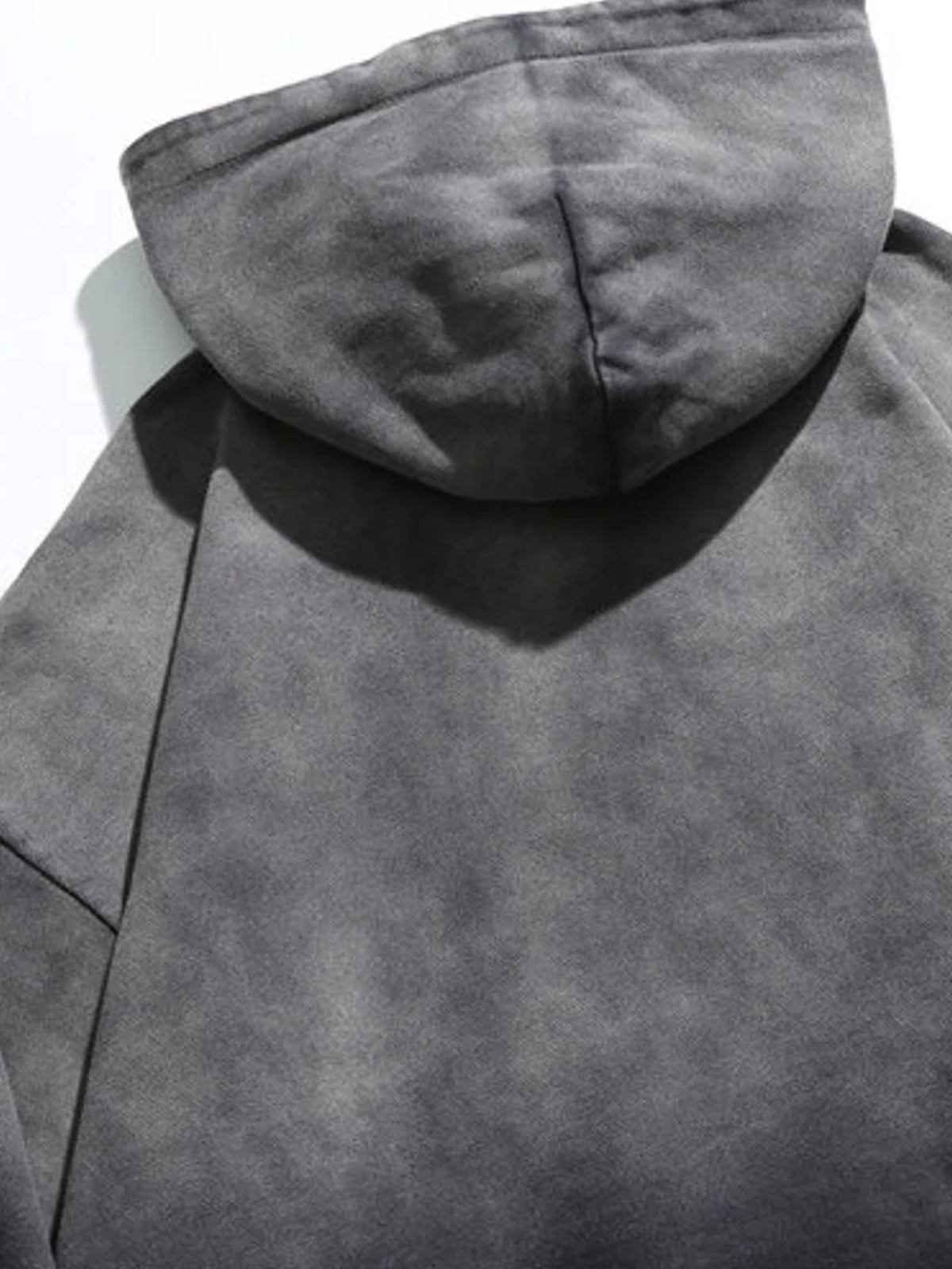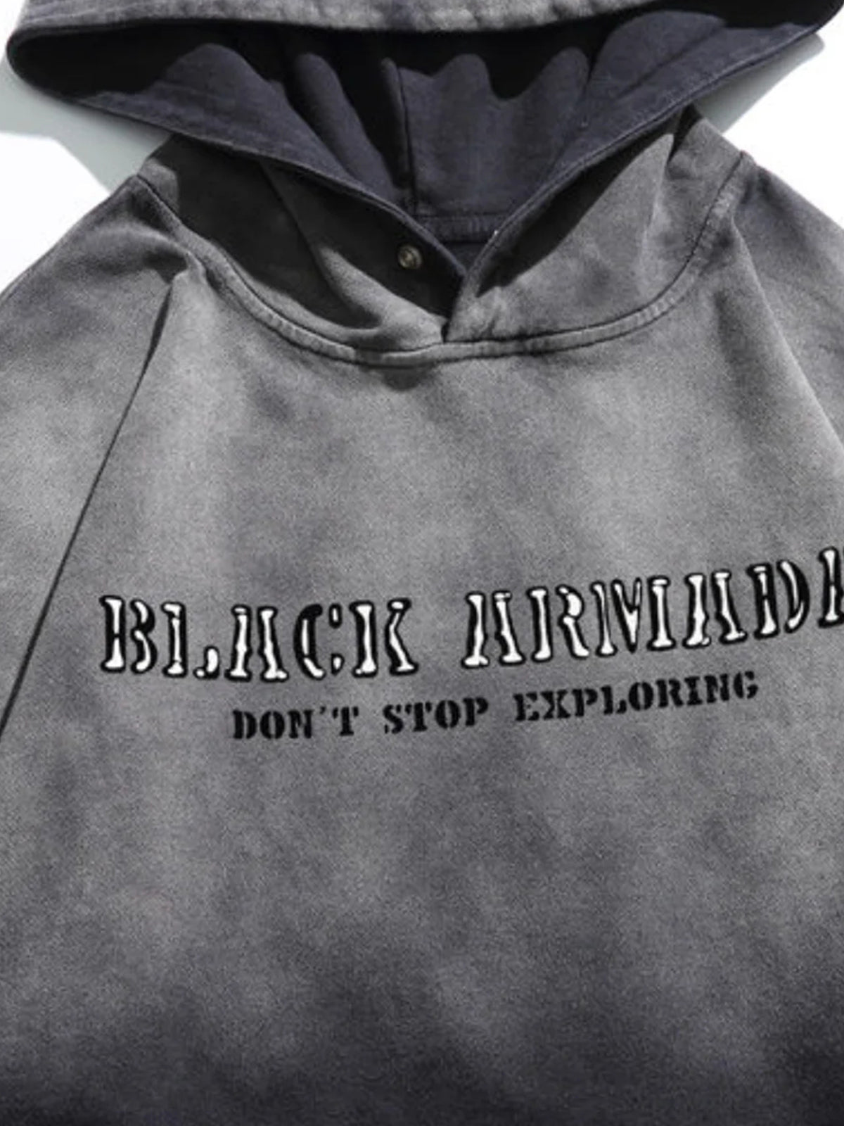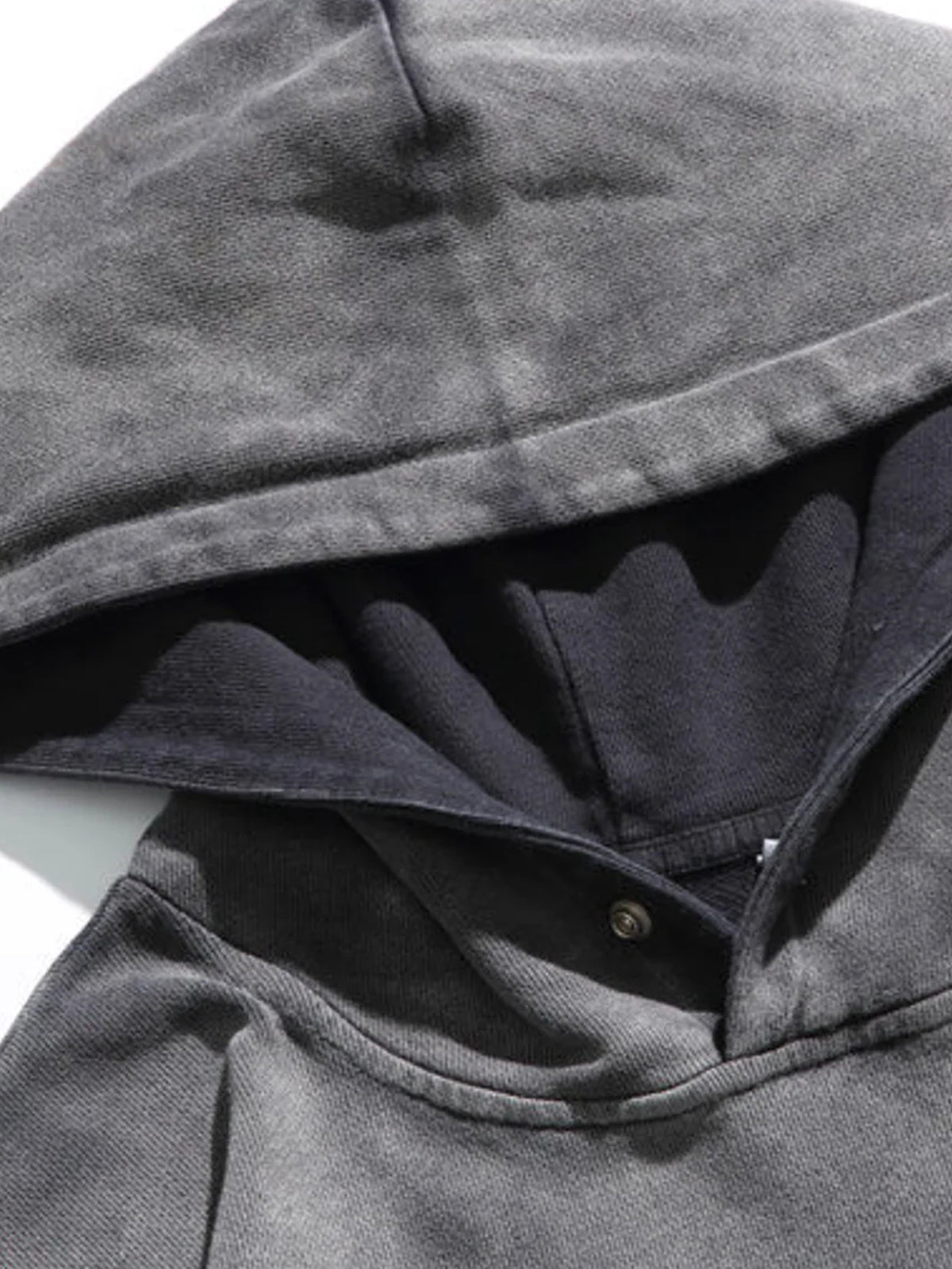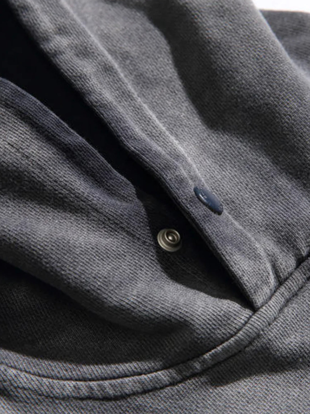 Half-Button Hoodie with Vintage-Style Elbow & Lining Print Panels