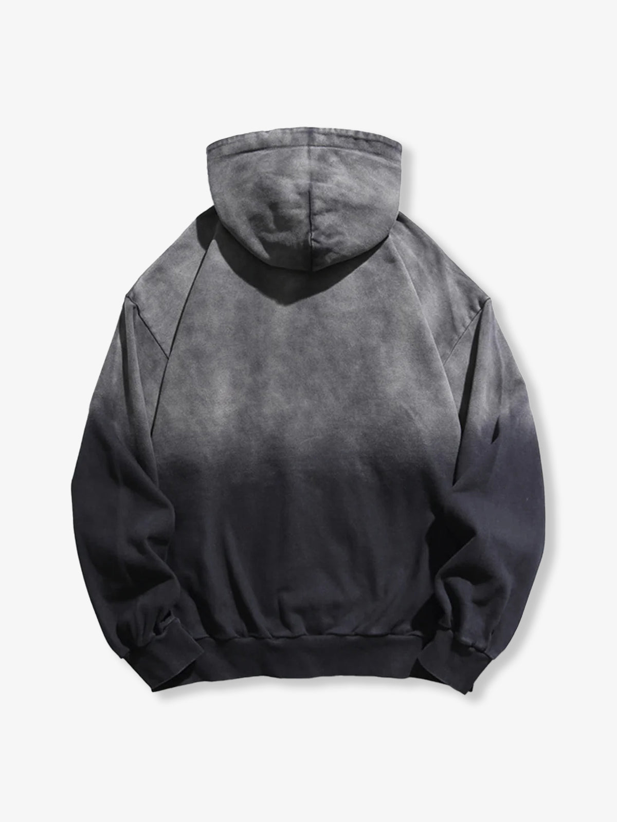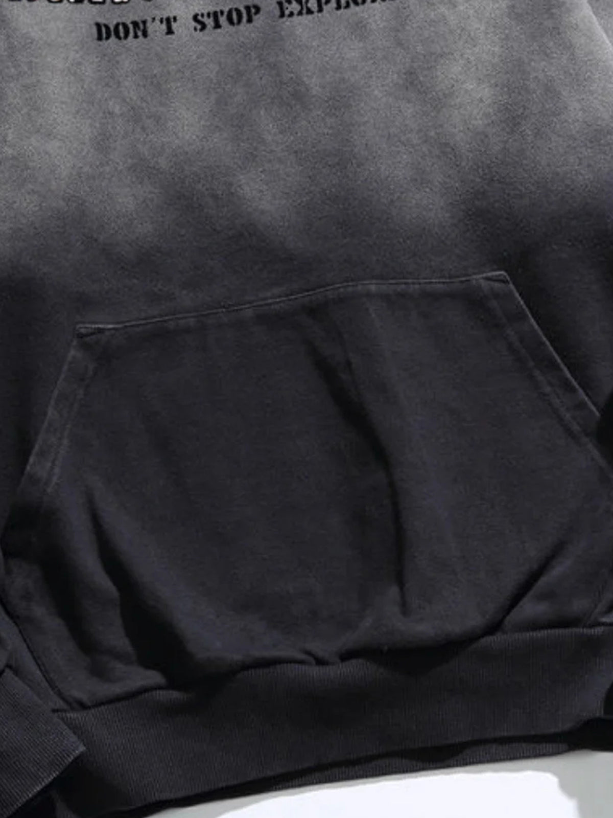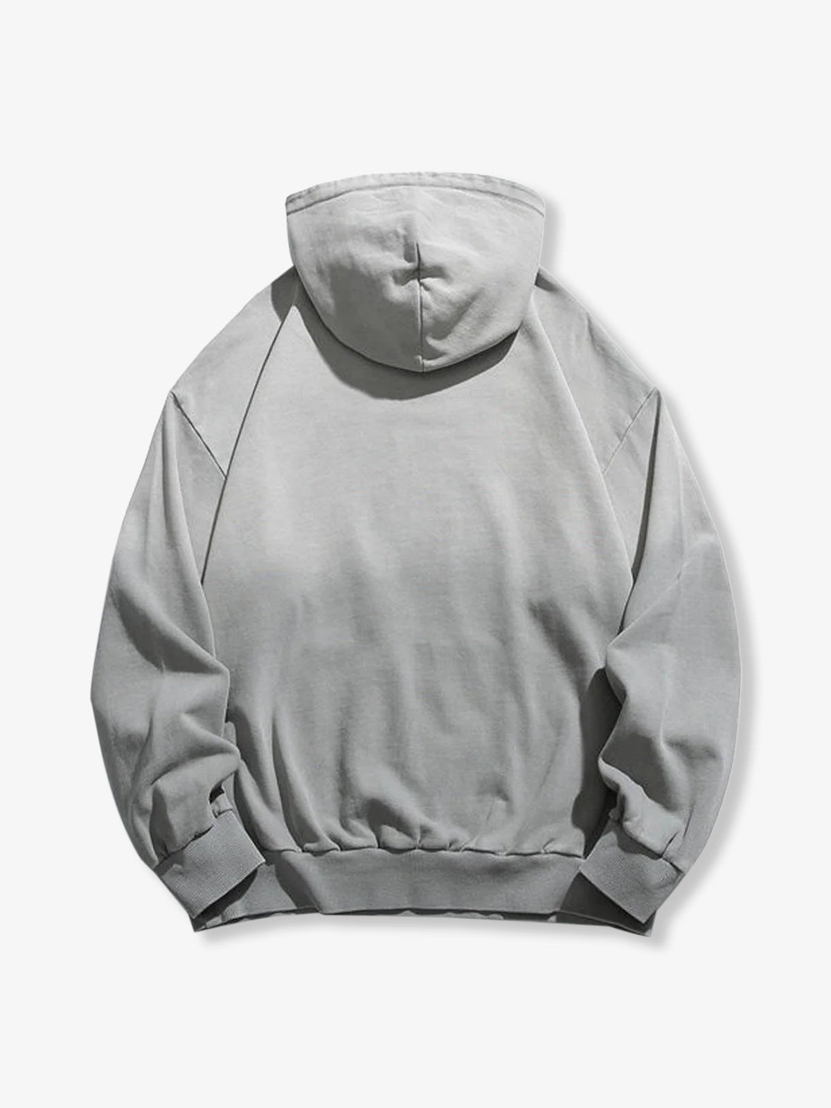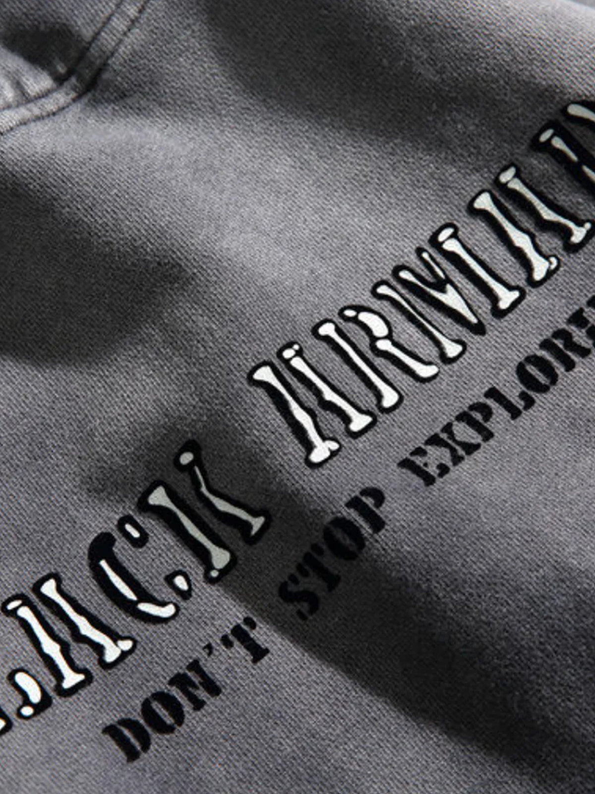Half-Button Hoodie with Vintage-Style Elbow & Lining Print Panels