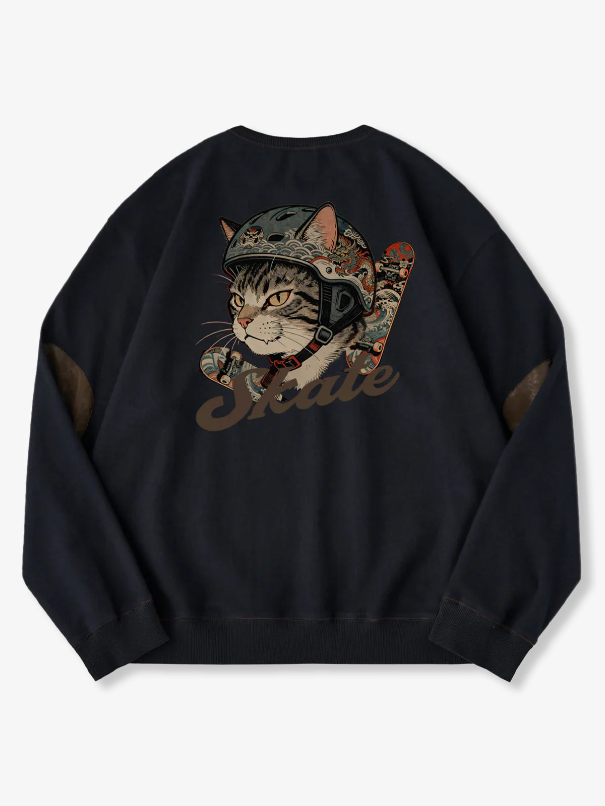Elbow Suede Patch “Helmet Cat” Print Sweatshirt