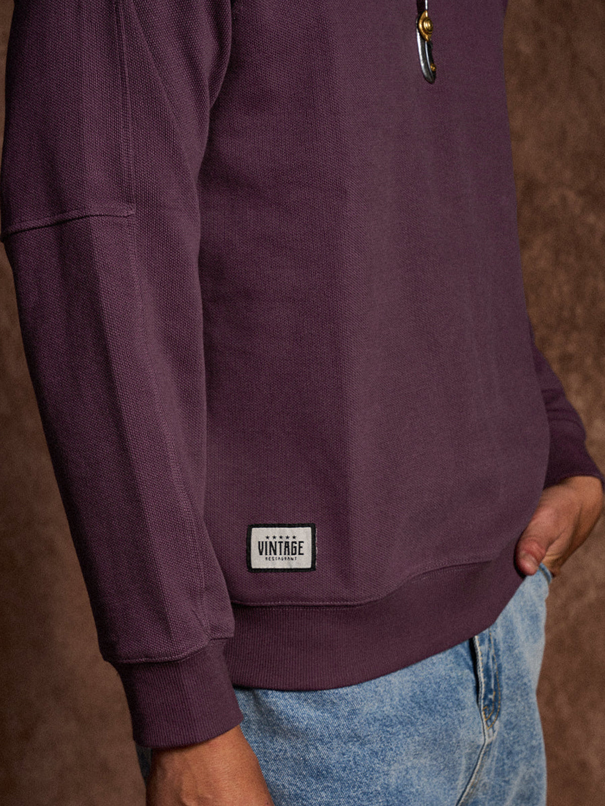 Mini Waffle Henley Long Sleeve Sweatshirt with Faux Layered Design