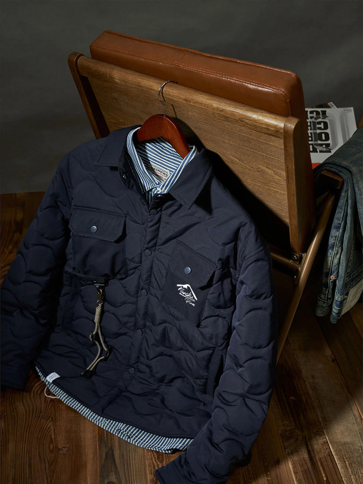 This jacket features a modern balloon silhouette with unique details like a mountain print on the chest pocket and a loop-rope carabiner. Crafted from durable fabric, it offers high shape retention, resistance to wrinkles, and easy care. Ideal for layering with hoodies or as a stand-alone piece, it's perfect for casual outings, providing warmth and style in any season.