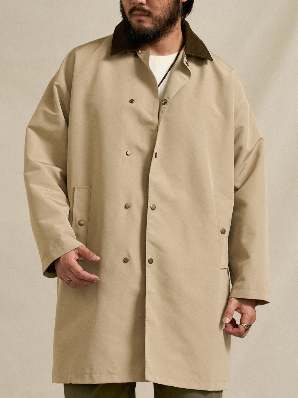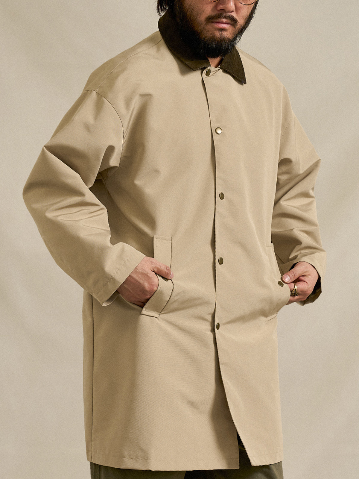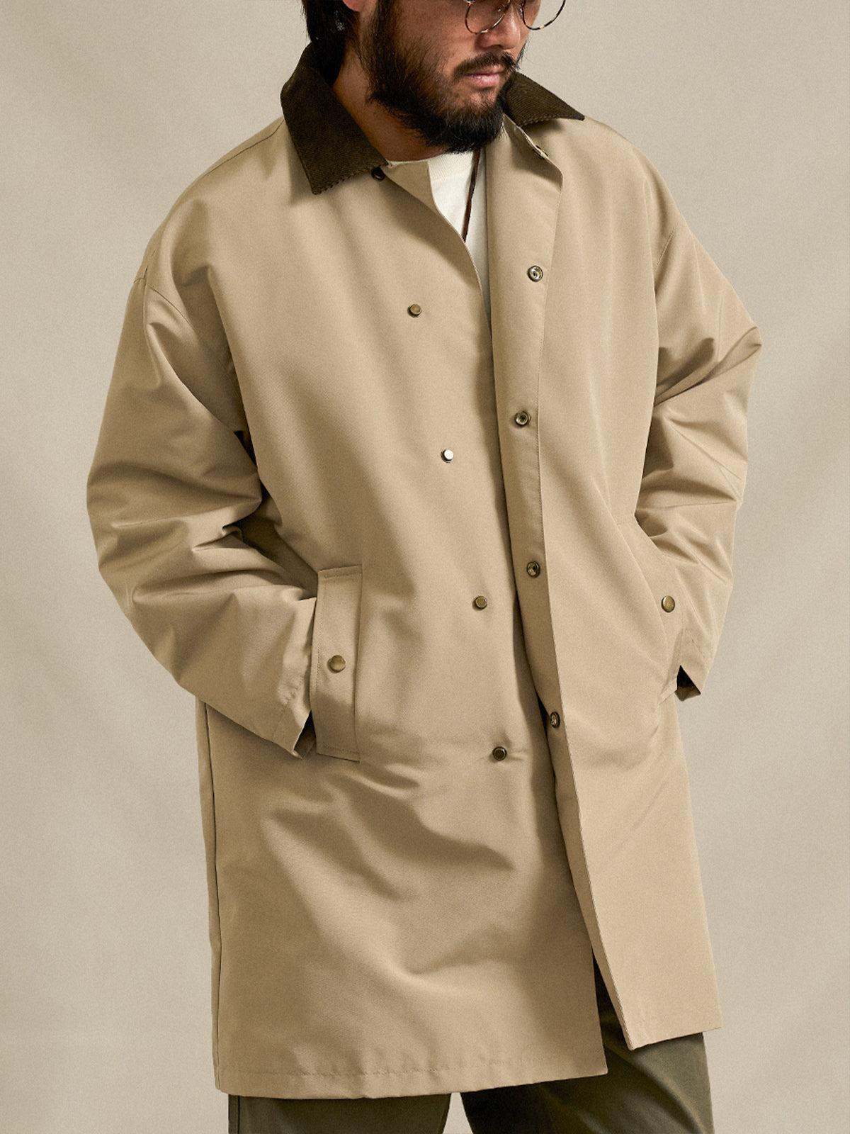 Corduroy-Collar Down Jacket with Cigarette Pockets