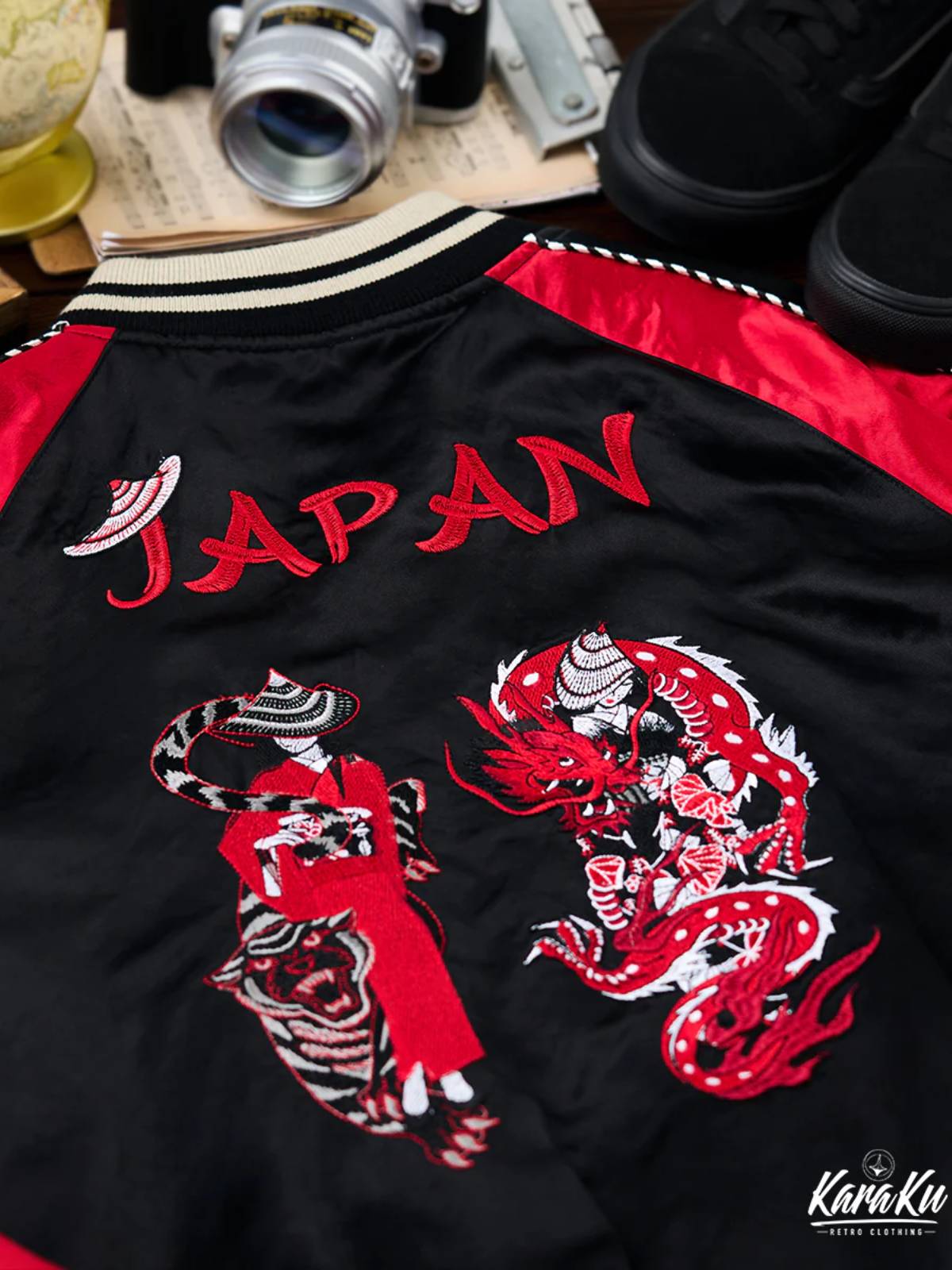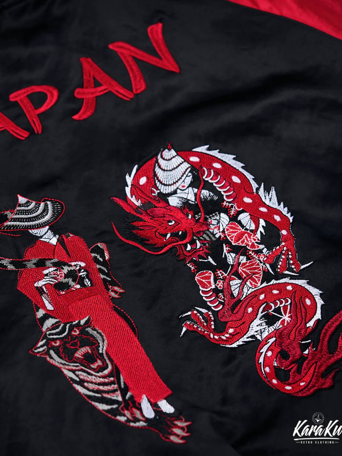 "Onmyoji with Shikigami Tiger & Dragon" Ukiyo-e Embroidered Sukajan