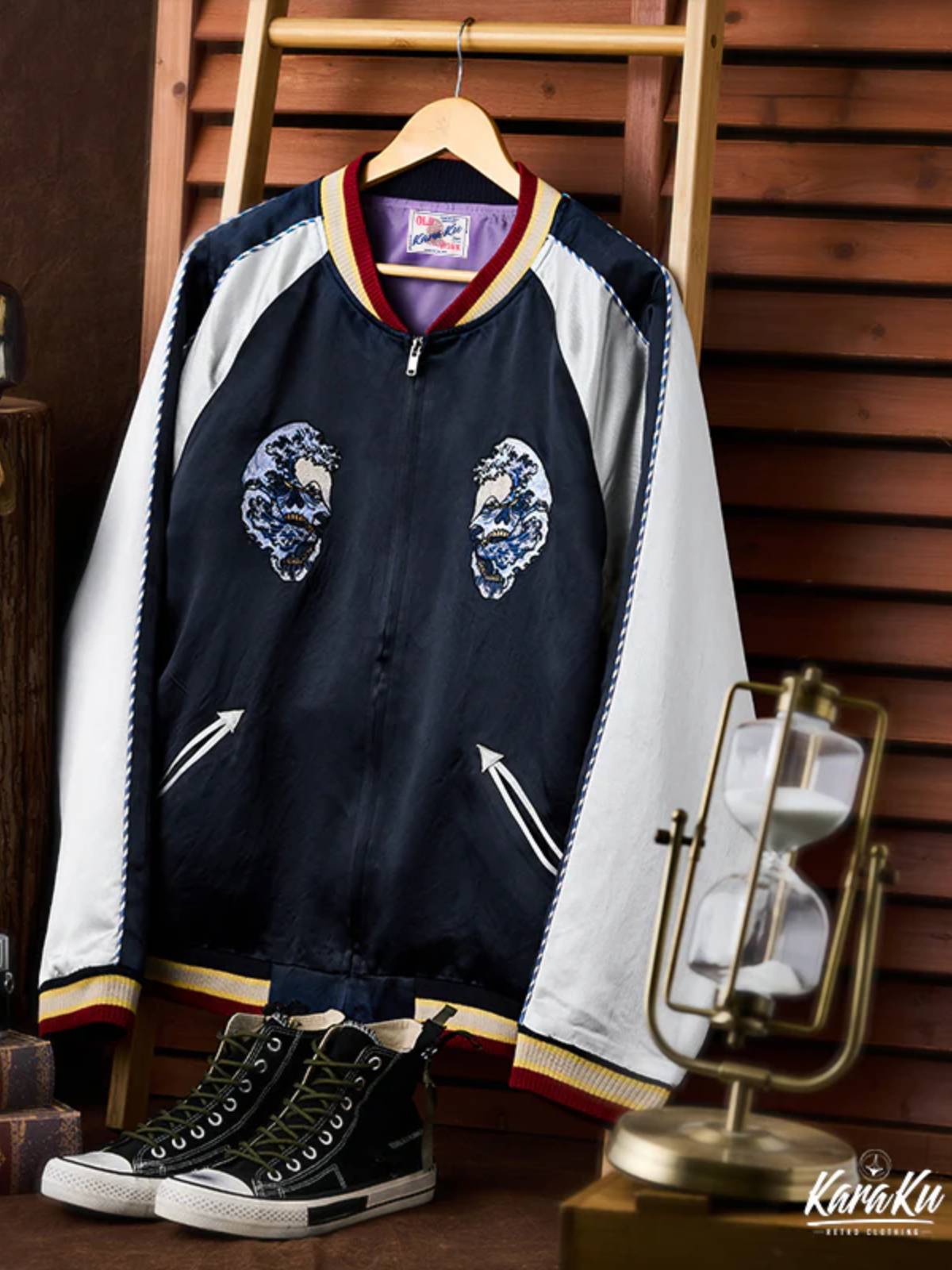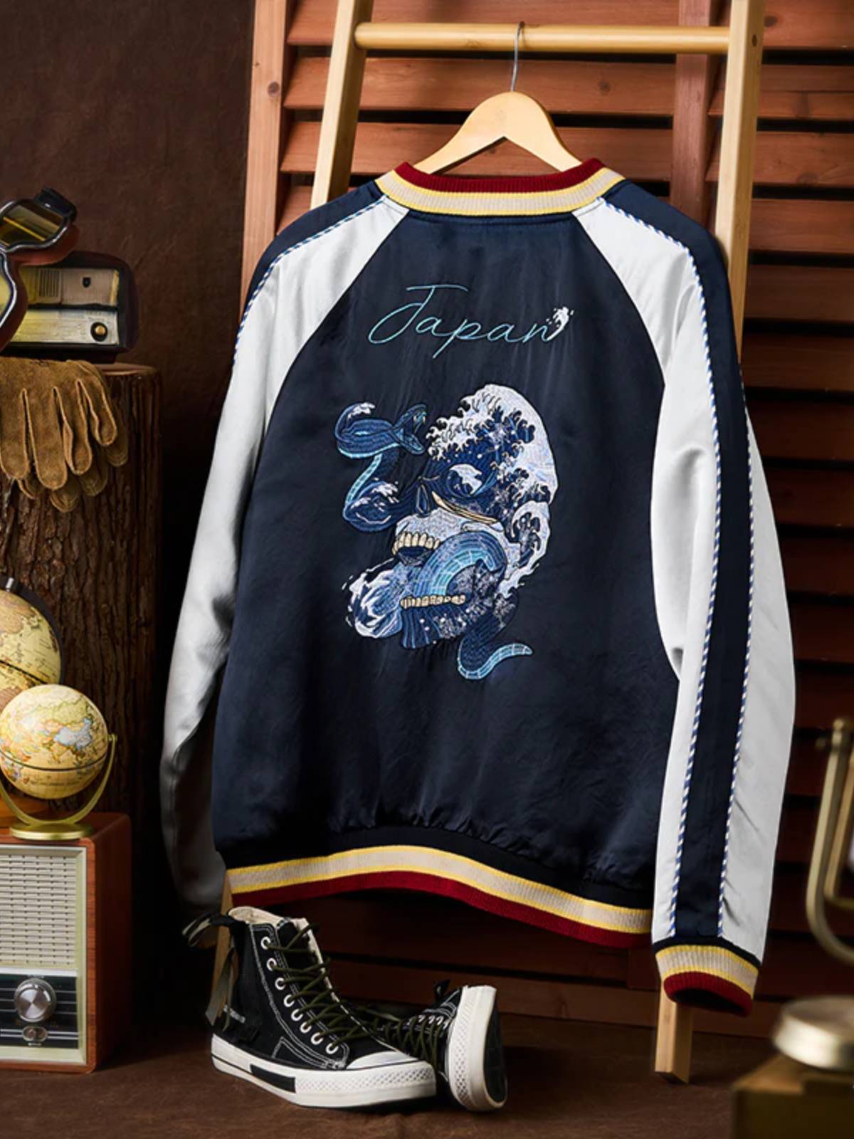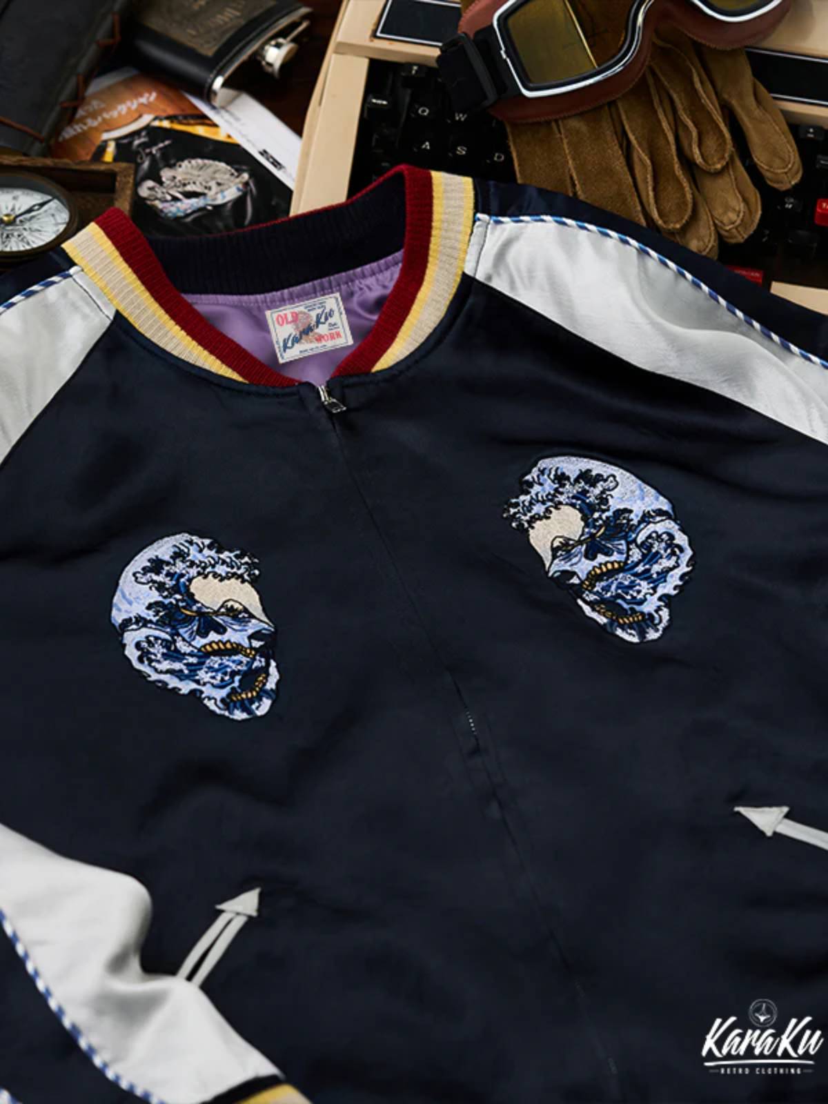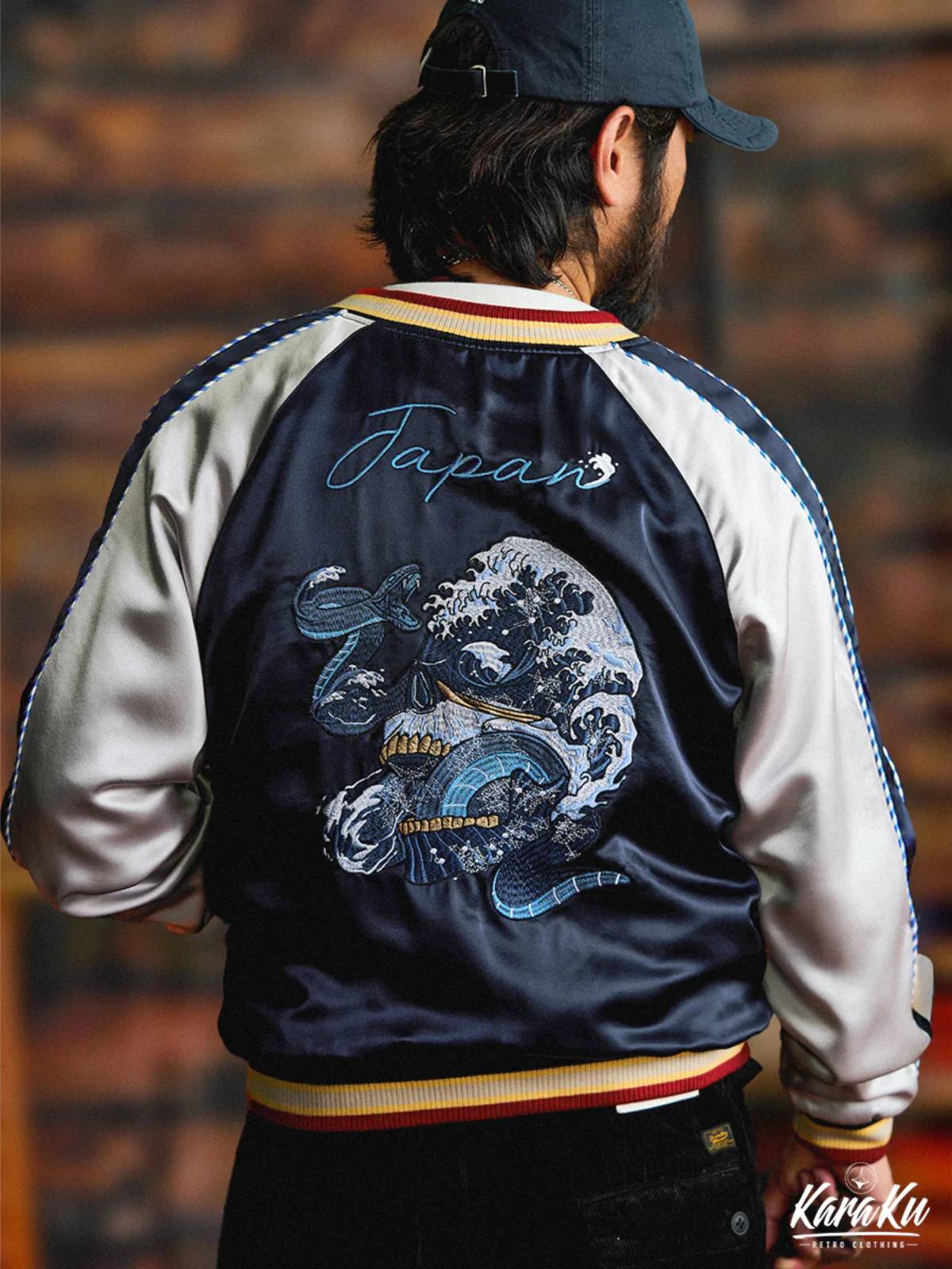 "Skull & Snake & Waves" Ukiyo-e Embroidered Sukajan