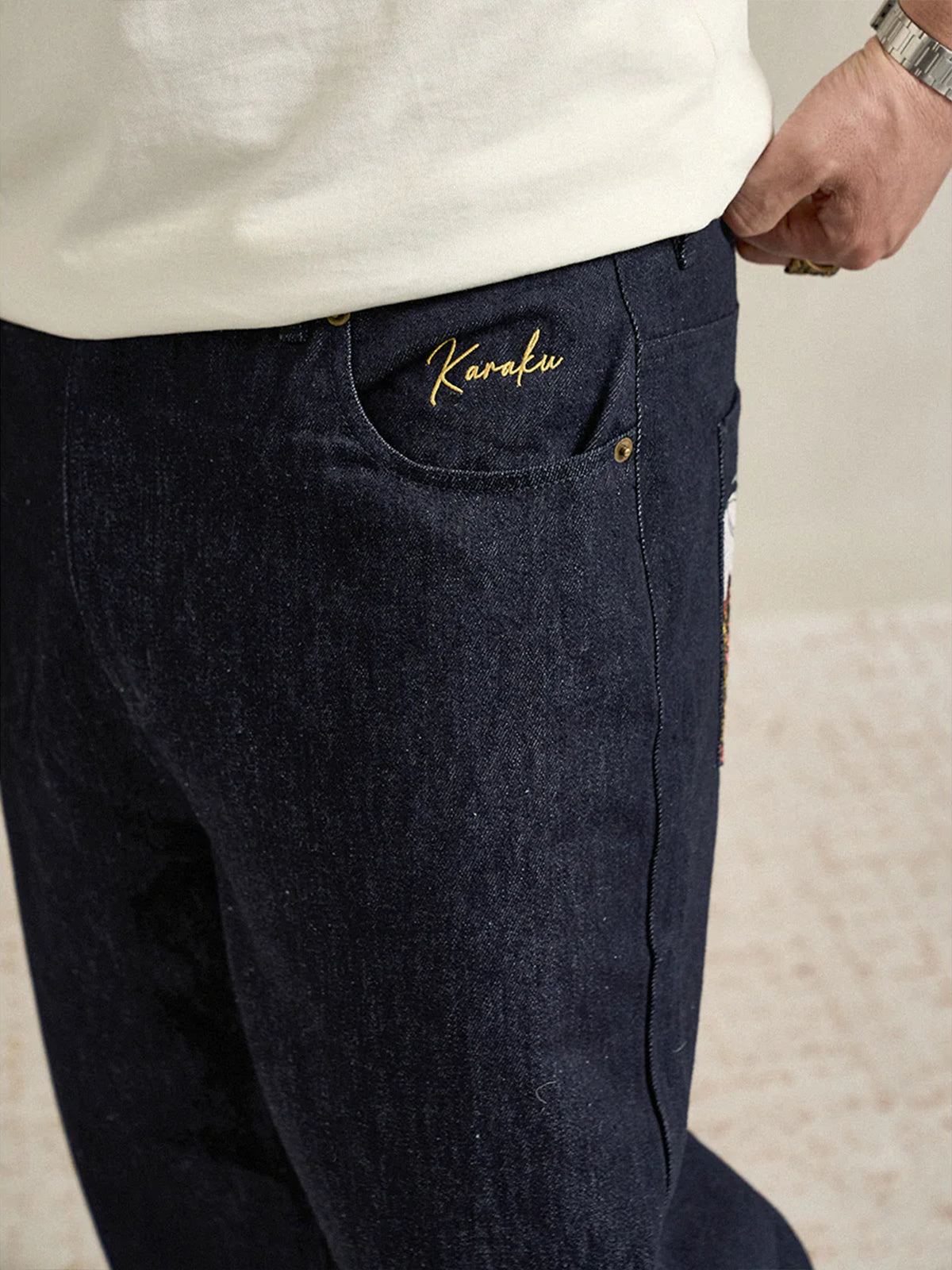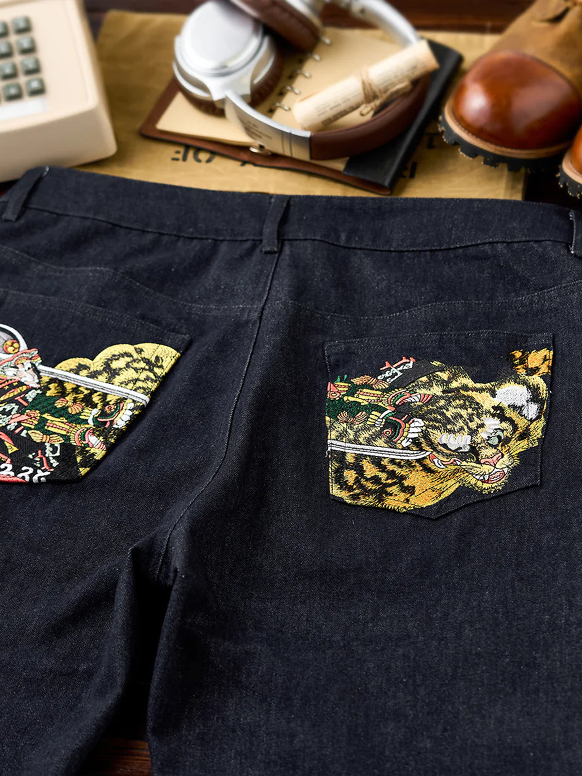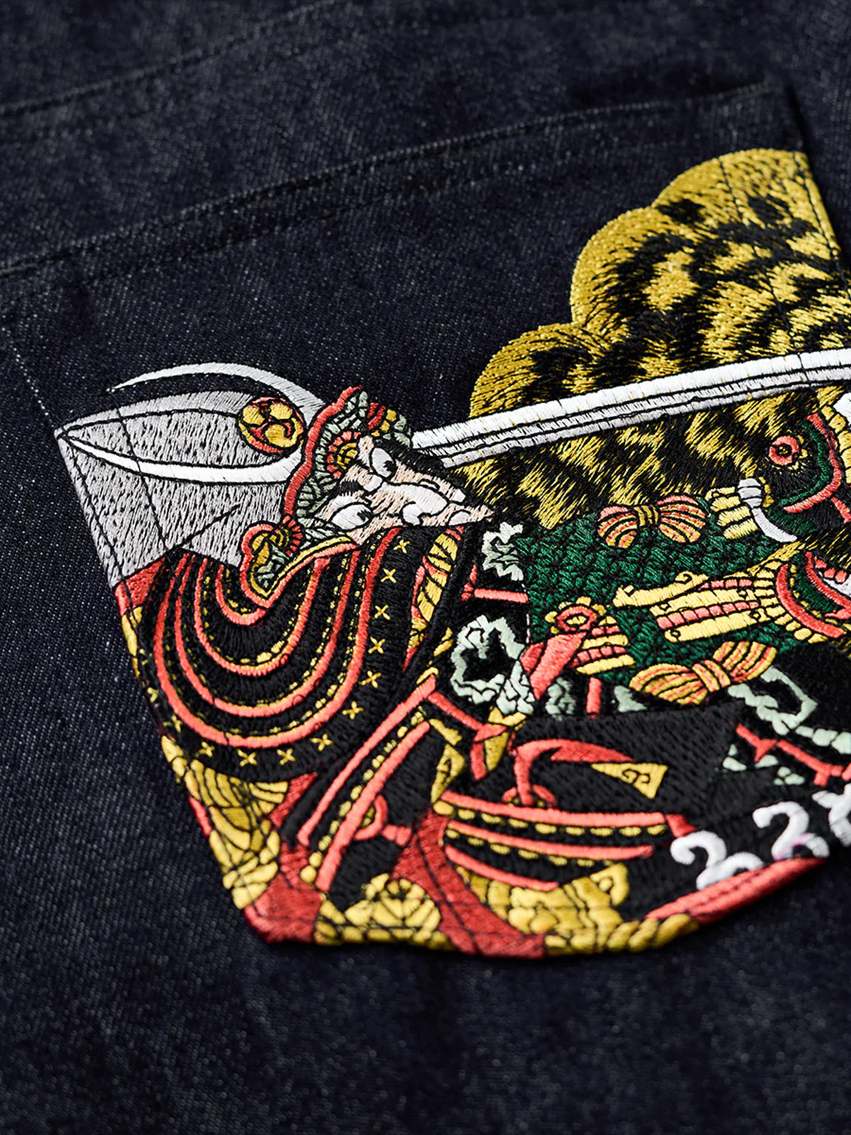 "Honchō Suikoden: Zenshin Batishi" Ukiyo-e Embroidered Denim Pants