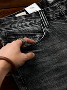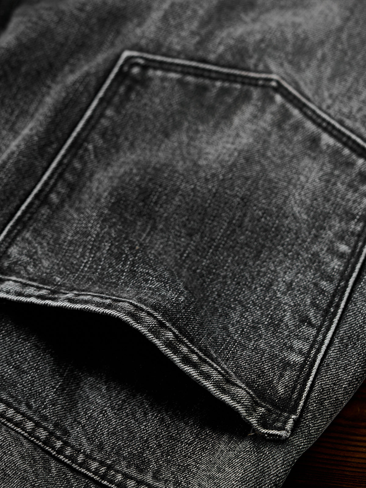 - Fabric Features: Made from cotton denim with 97% cotton and 3% spandex, offering moderate firmness — not too thick or too thin — suitable for year-round wear. The washed finish gives a well-worn texture, creating a casual, relaxed impression.