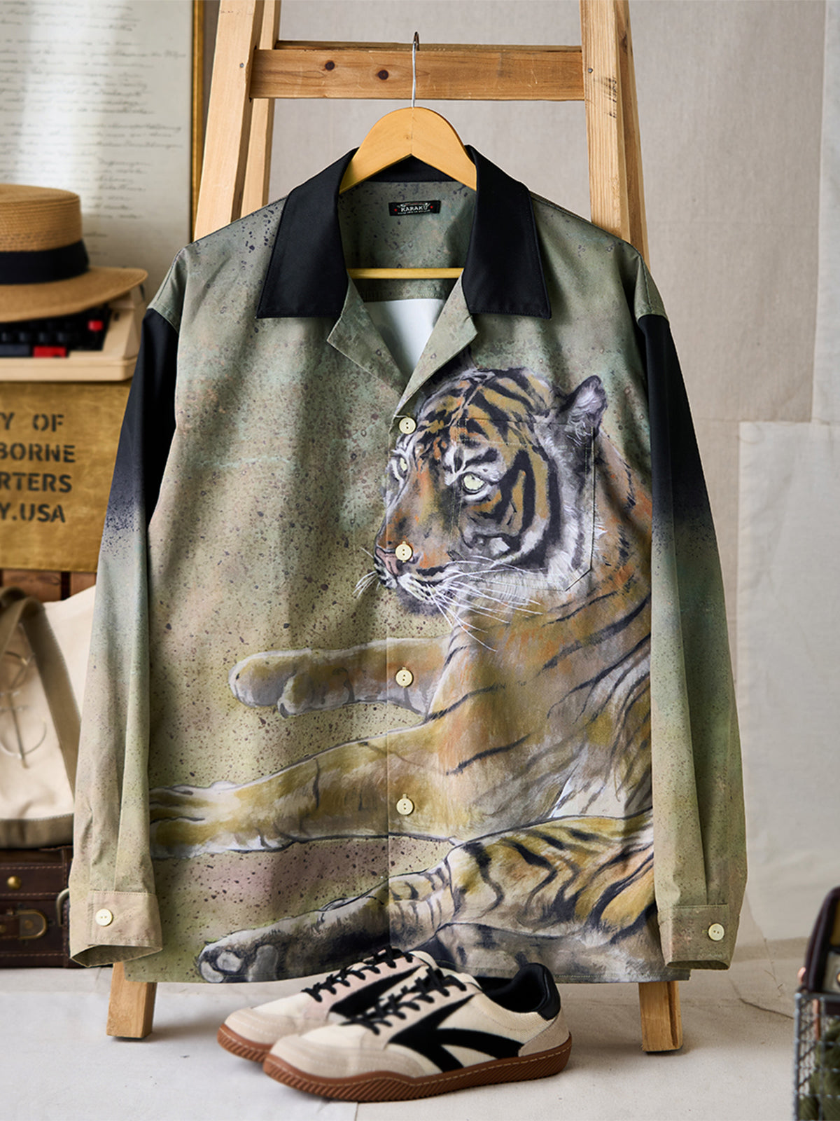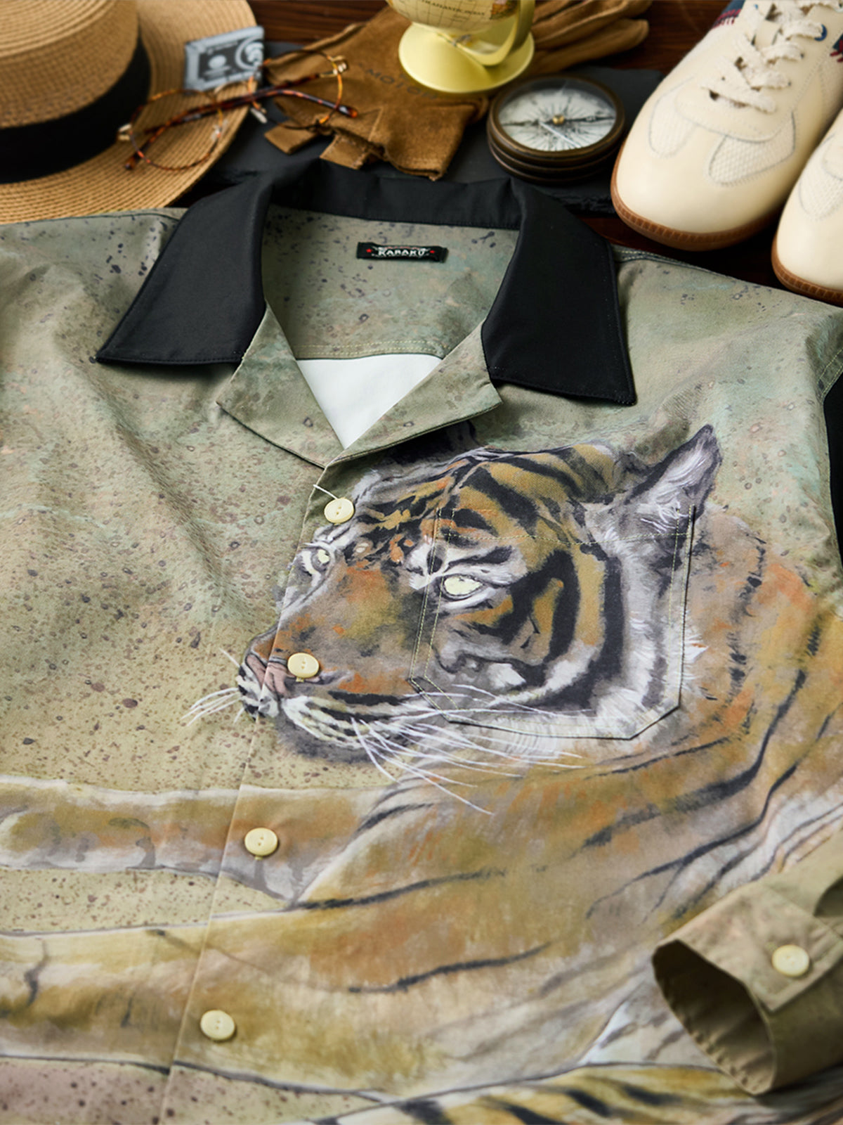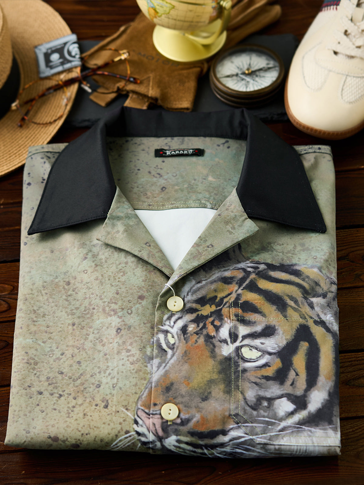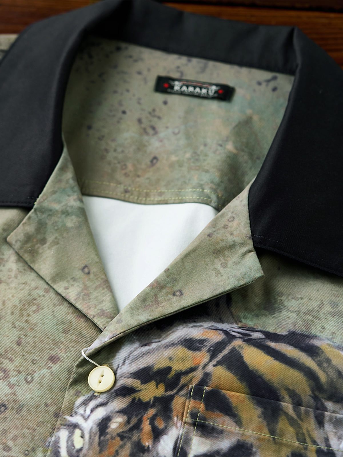 Karaku × Satoshi Kawamata “Tiger Illustration” Printed Open-Collar Shirt