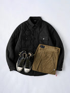 [Pre-Order] Gourd-Quilted Padded Jacket with Multi-Pockets and Red Hem Drawstring