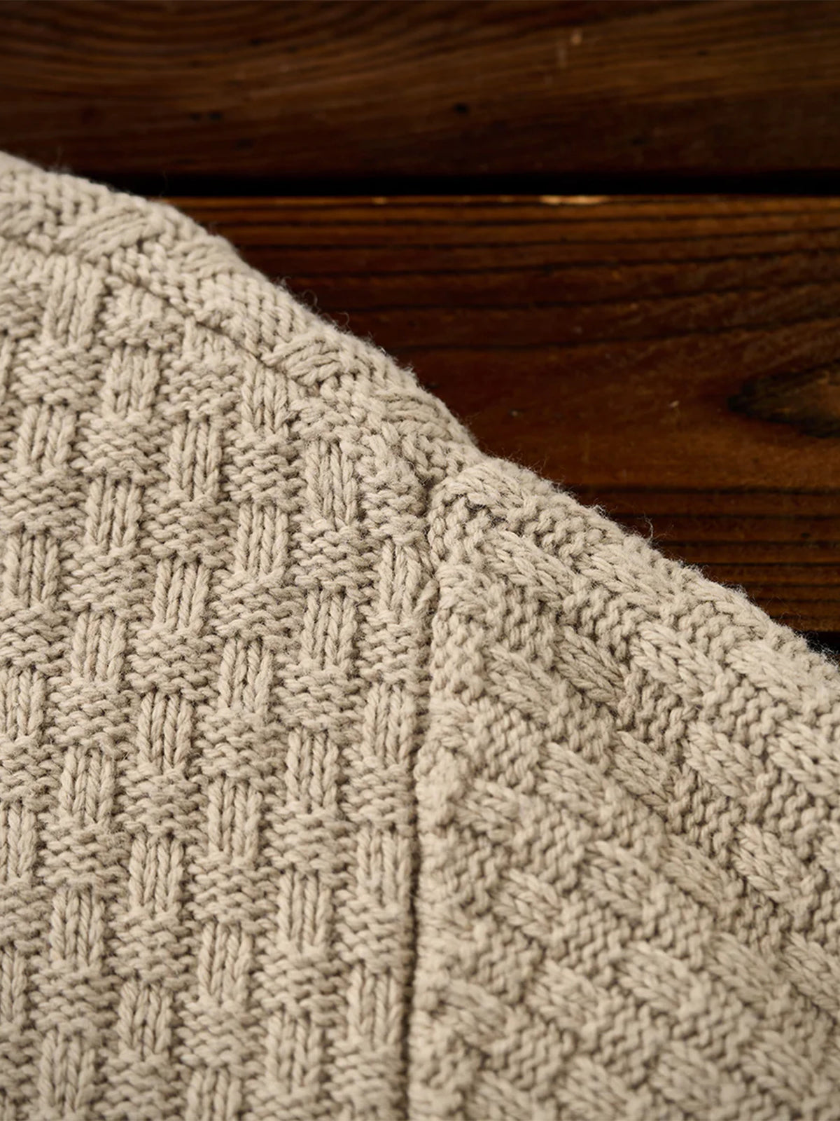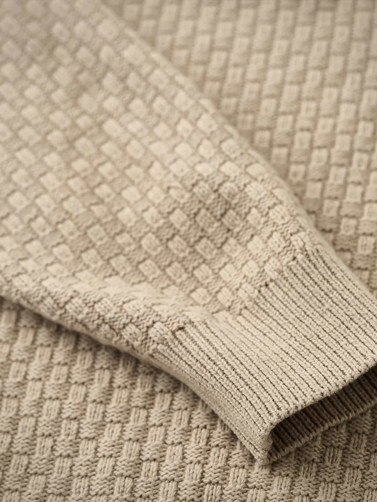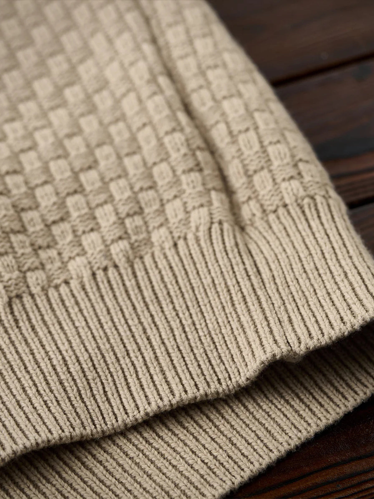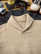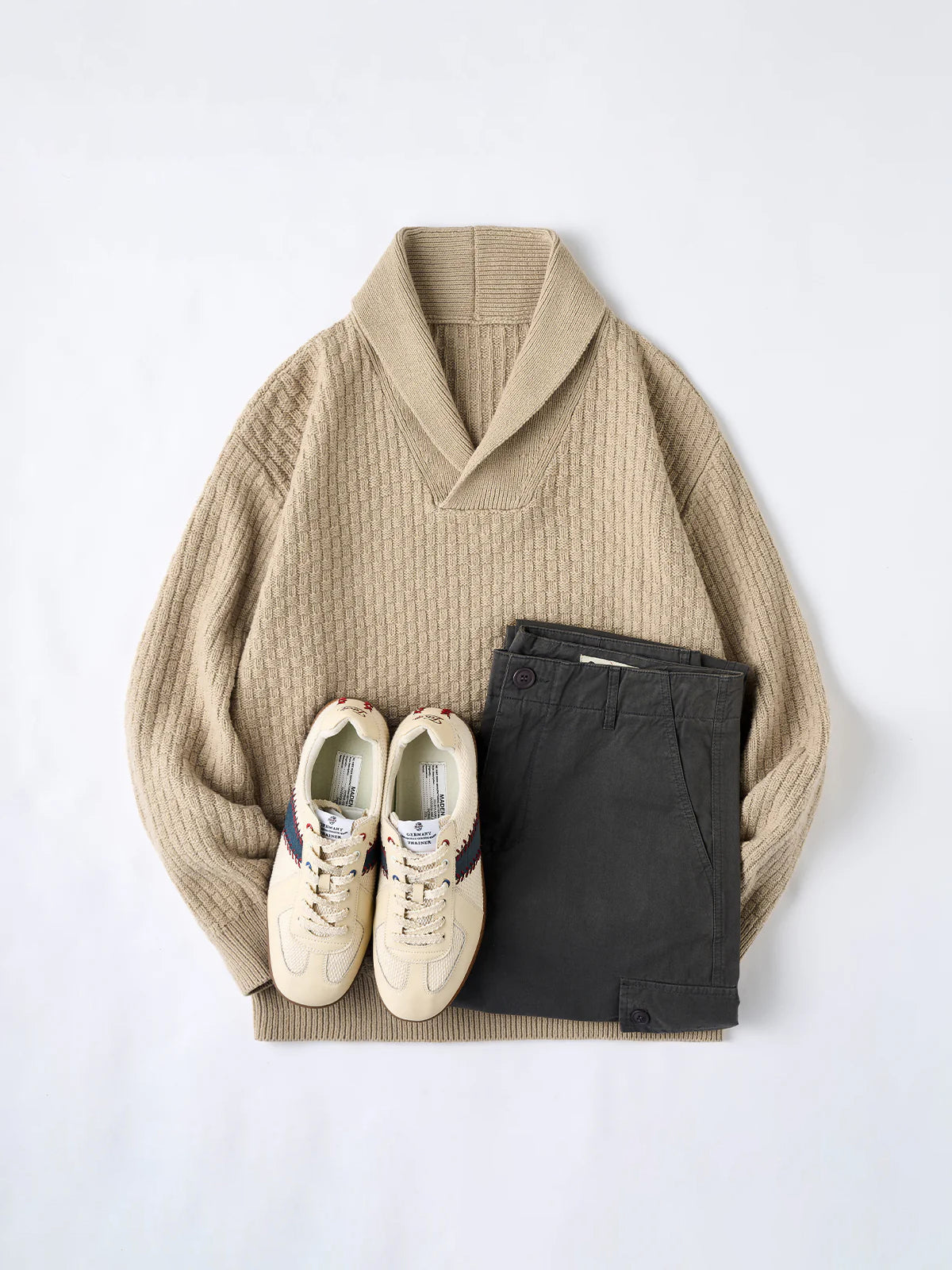 Wool-Blend Check Jacquard Shawl-Collar Knit Sweater