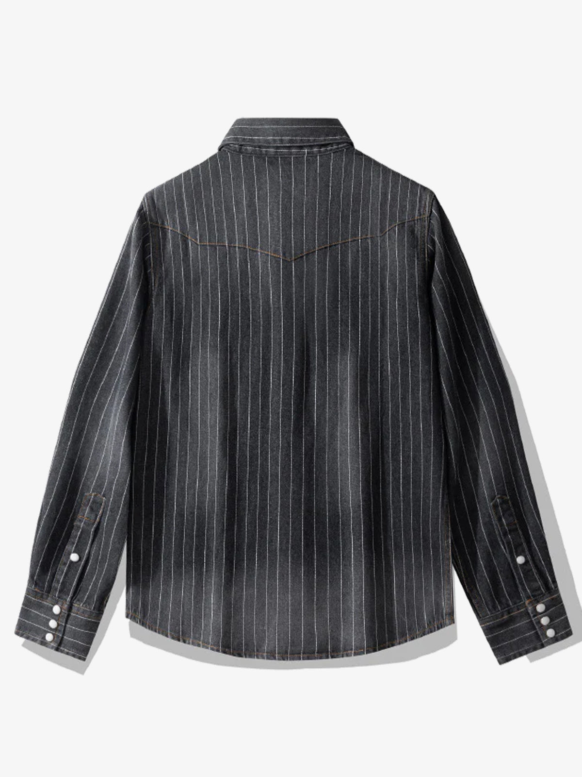 Western Yoke Wabash Stripe Denim Cotton Shirt
