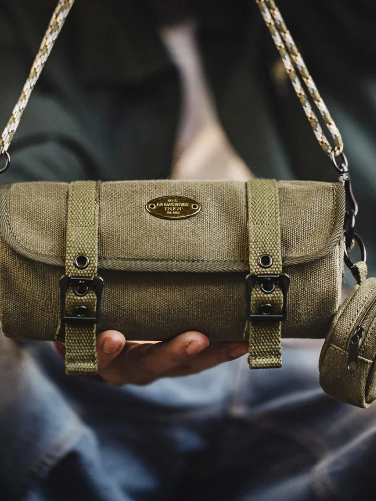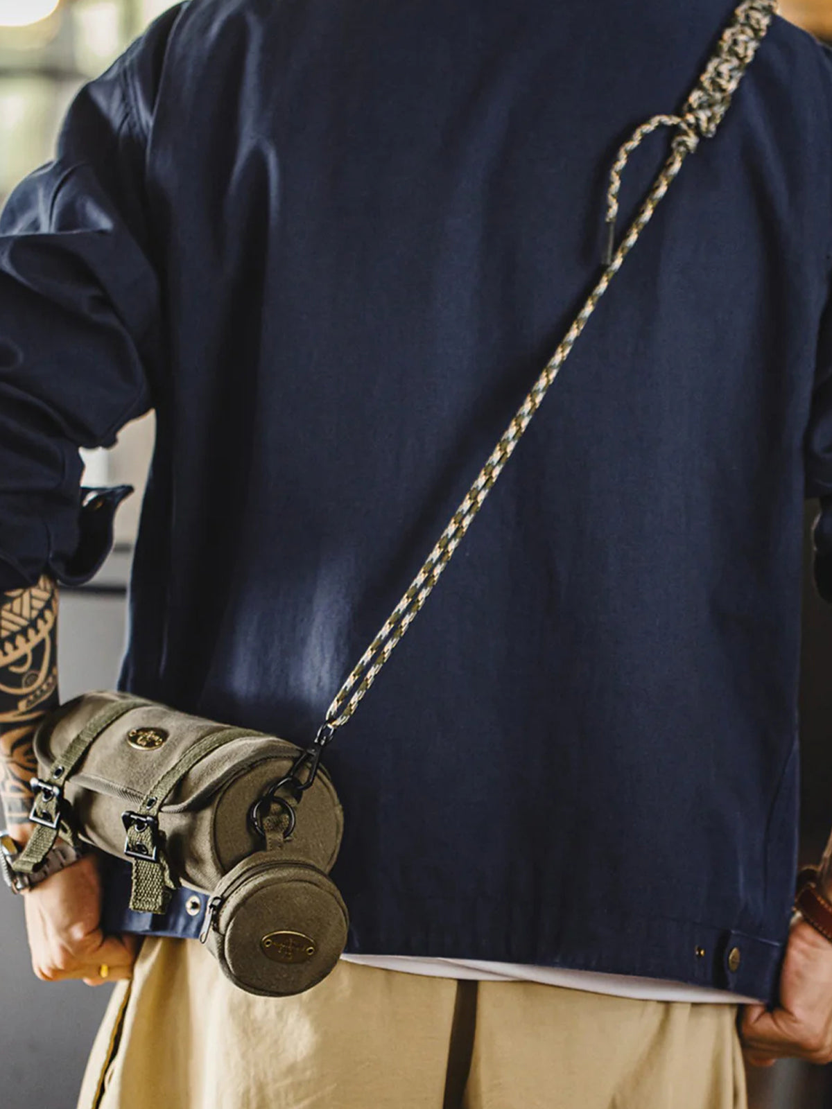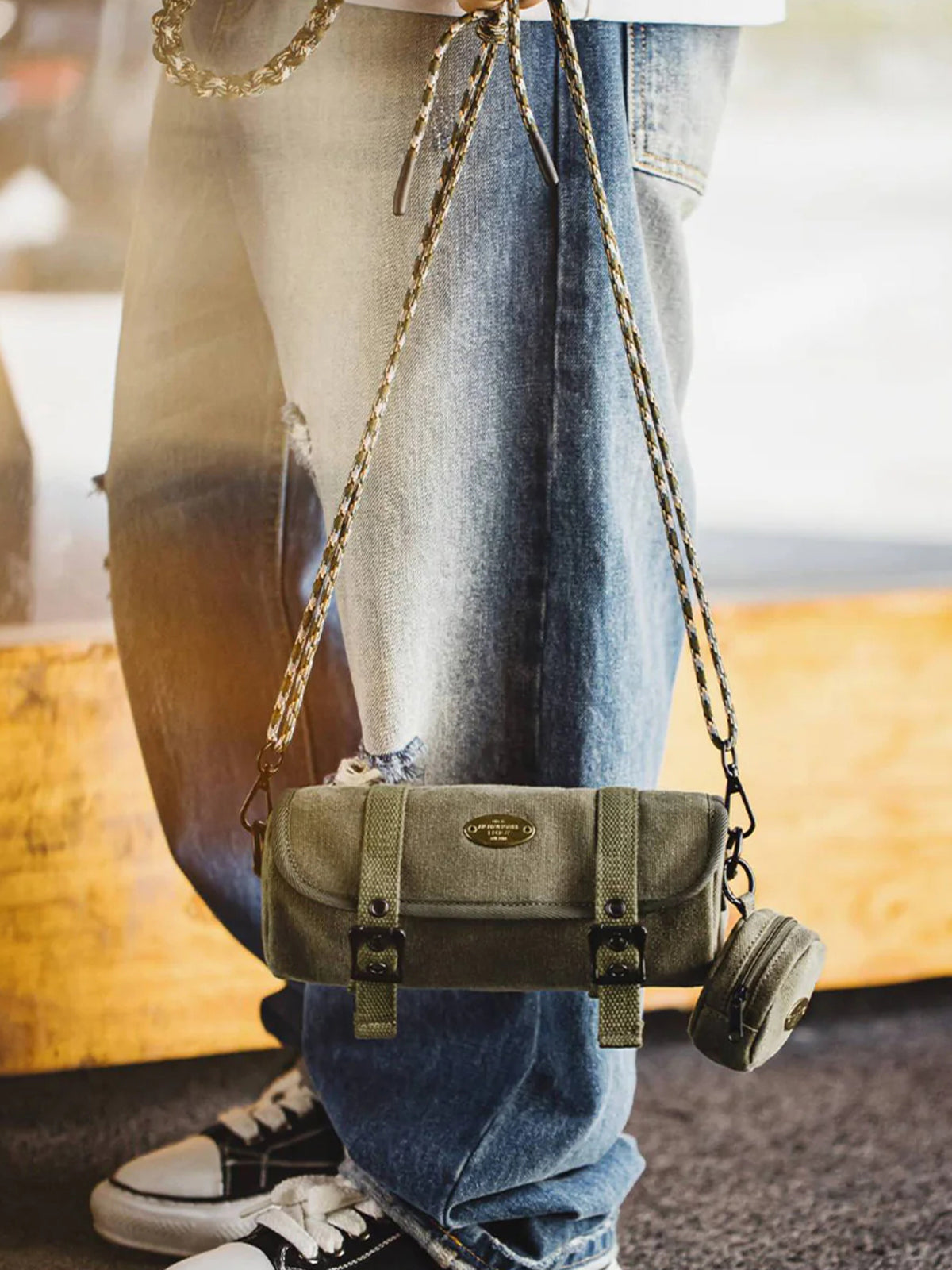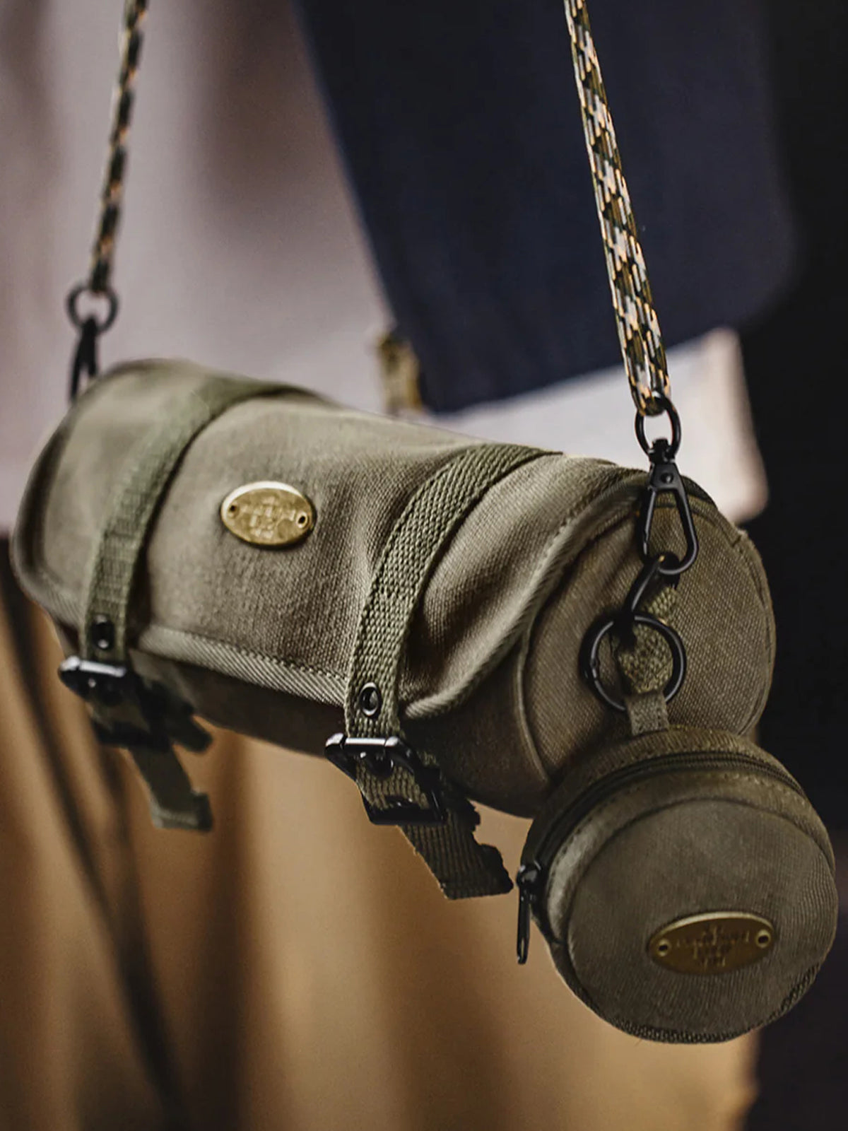 Canvas Barrel Bag with Braided Strap & Removable Round Pouch