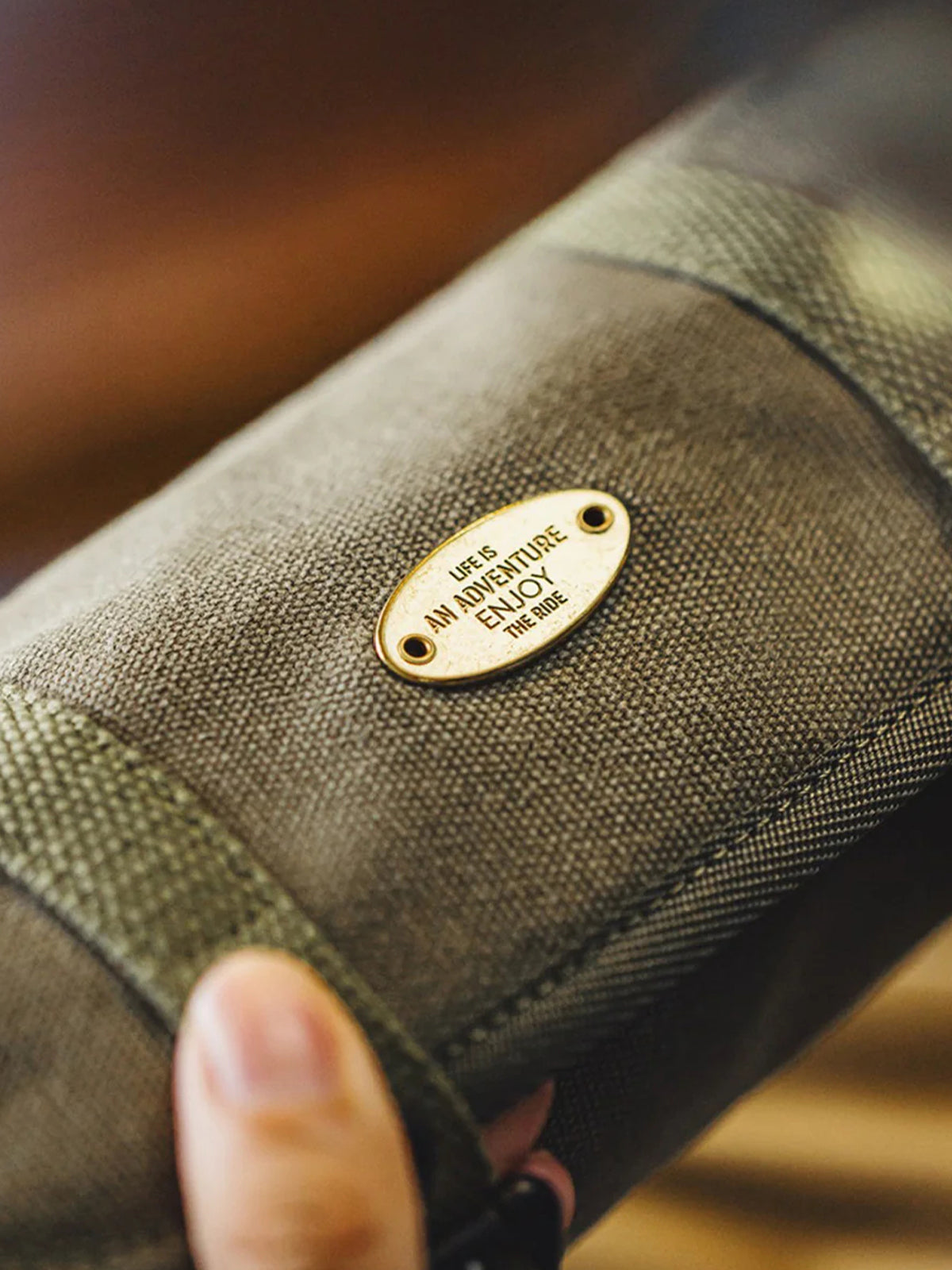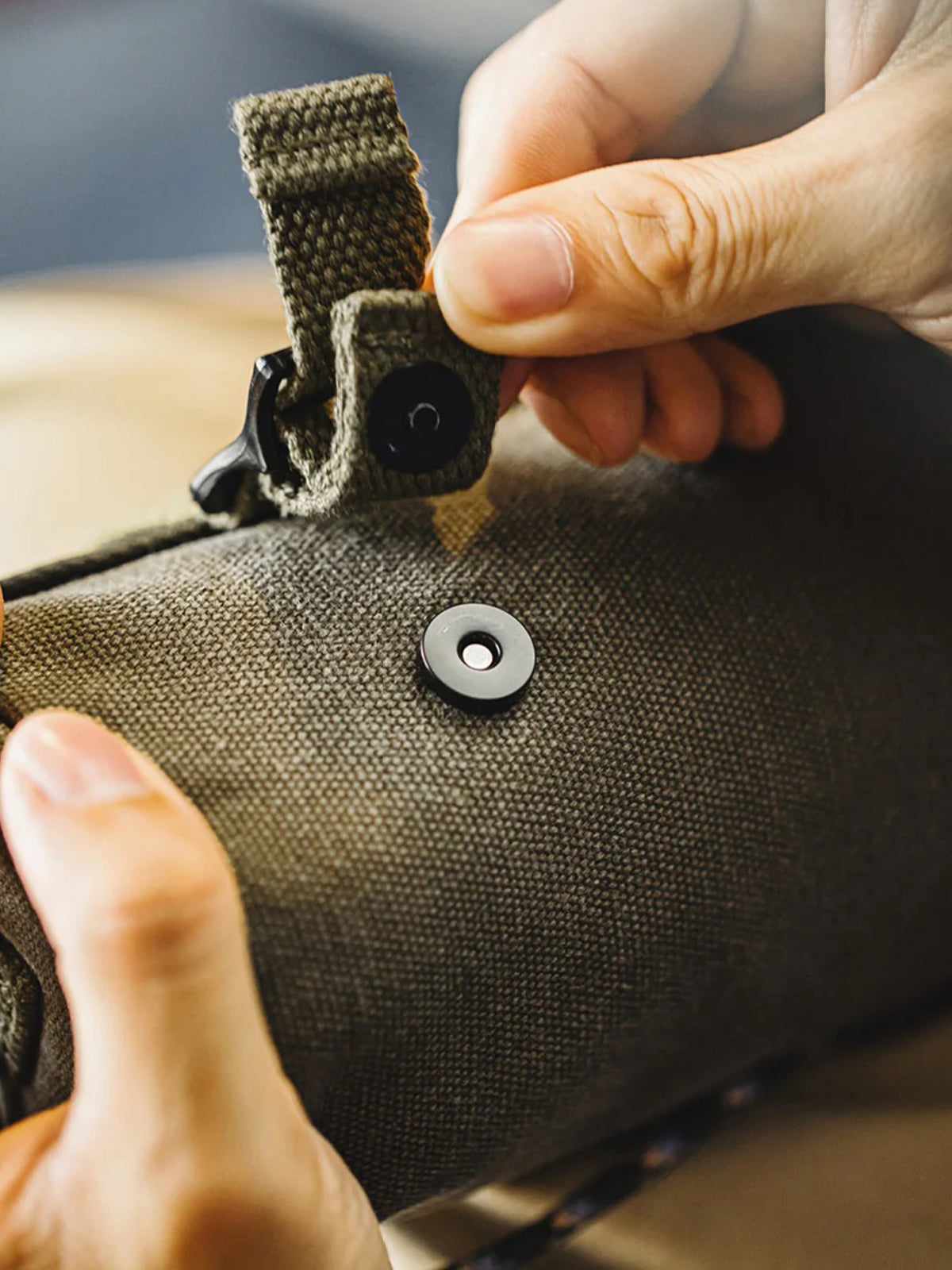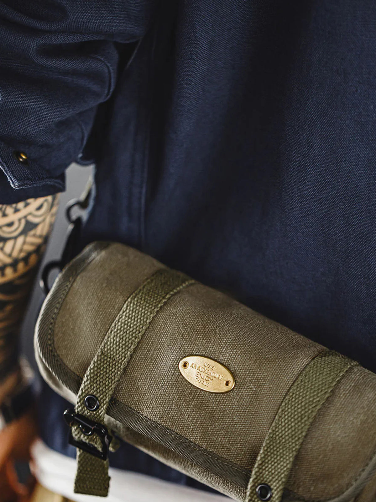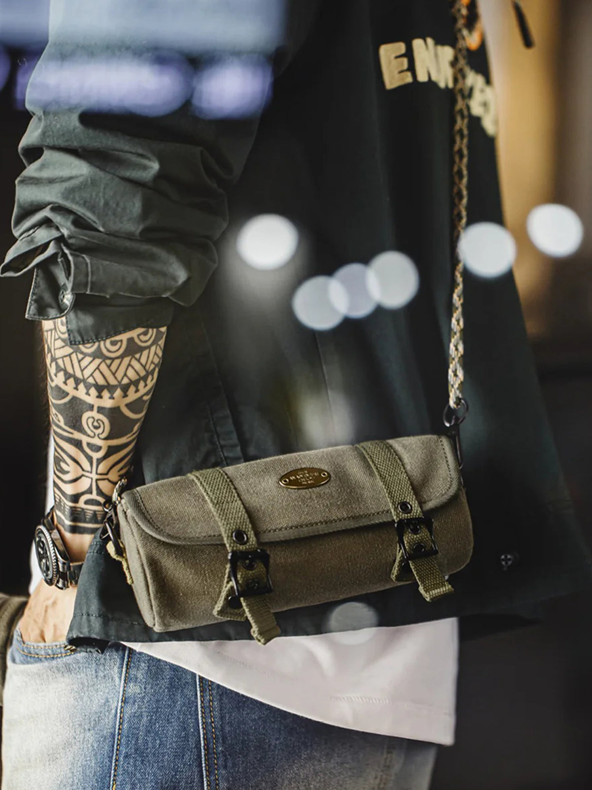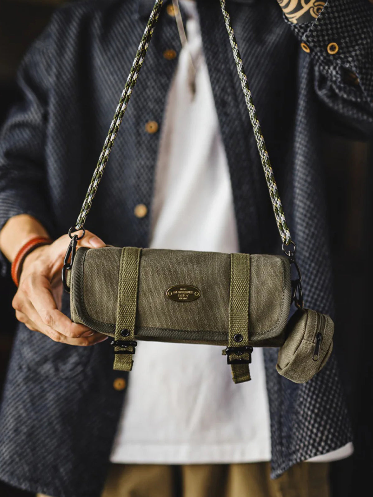 Canvas Barrel Bag with Braided Strap & Removable Round Pouch