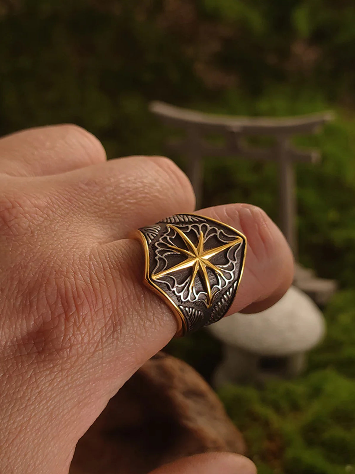 Polaris & Celtic Pattern Antique Gold Titanium Wide Ring