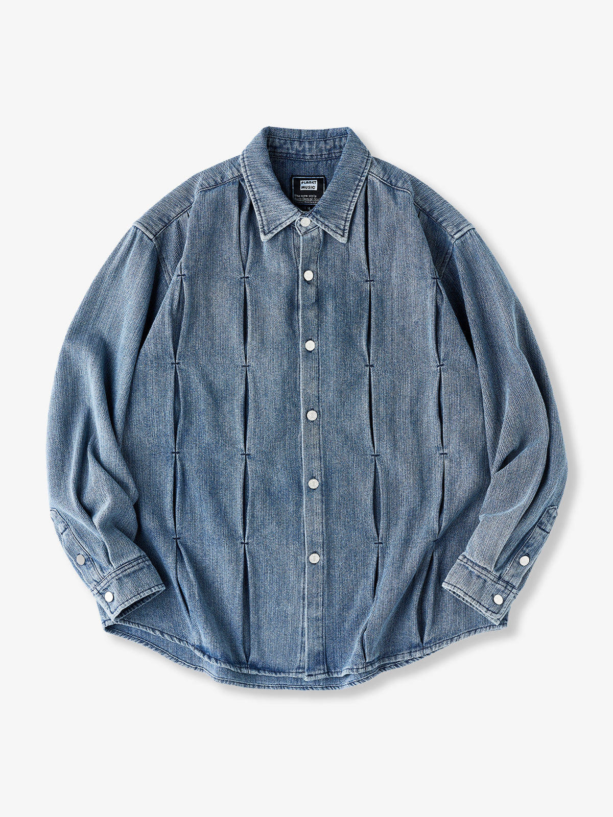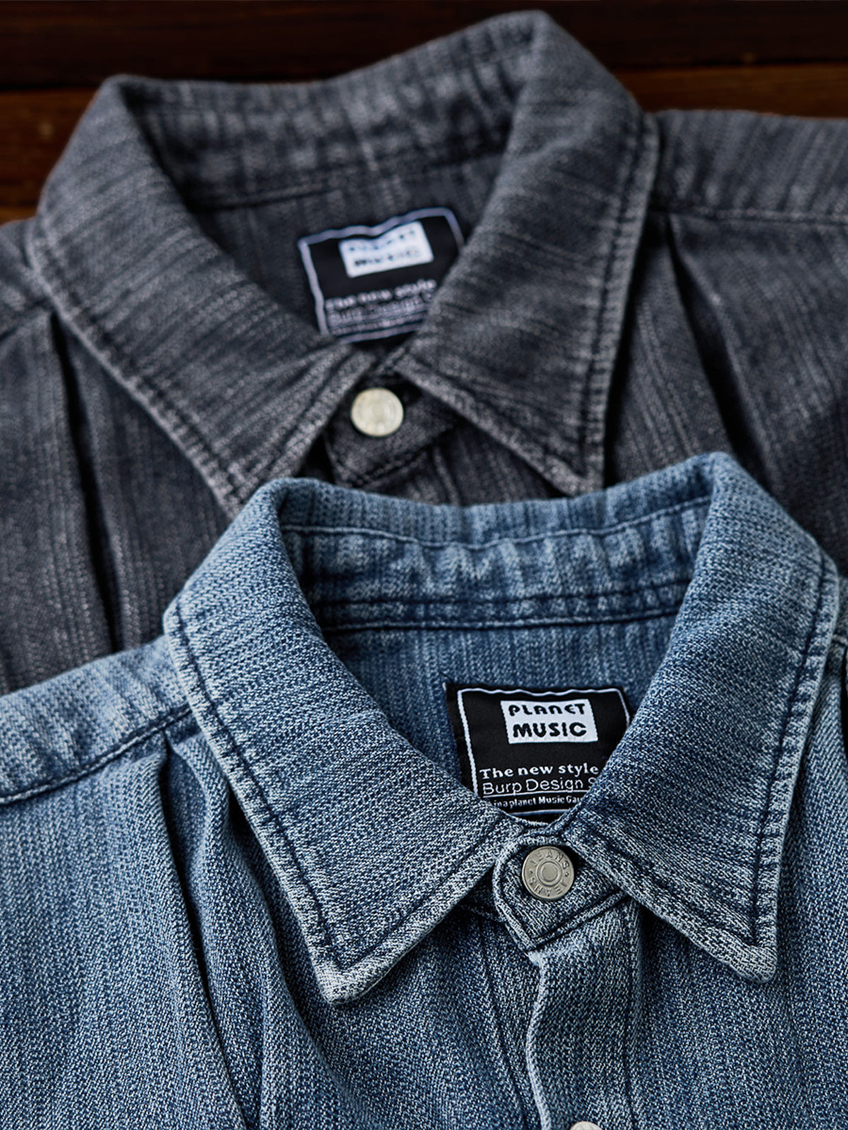 2-Color Round-Hem Washed Denim Work Shirt