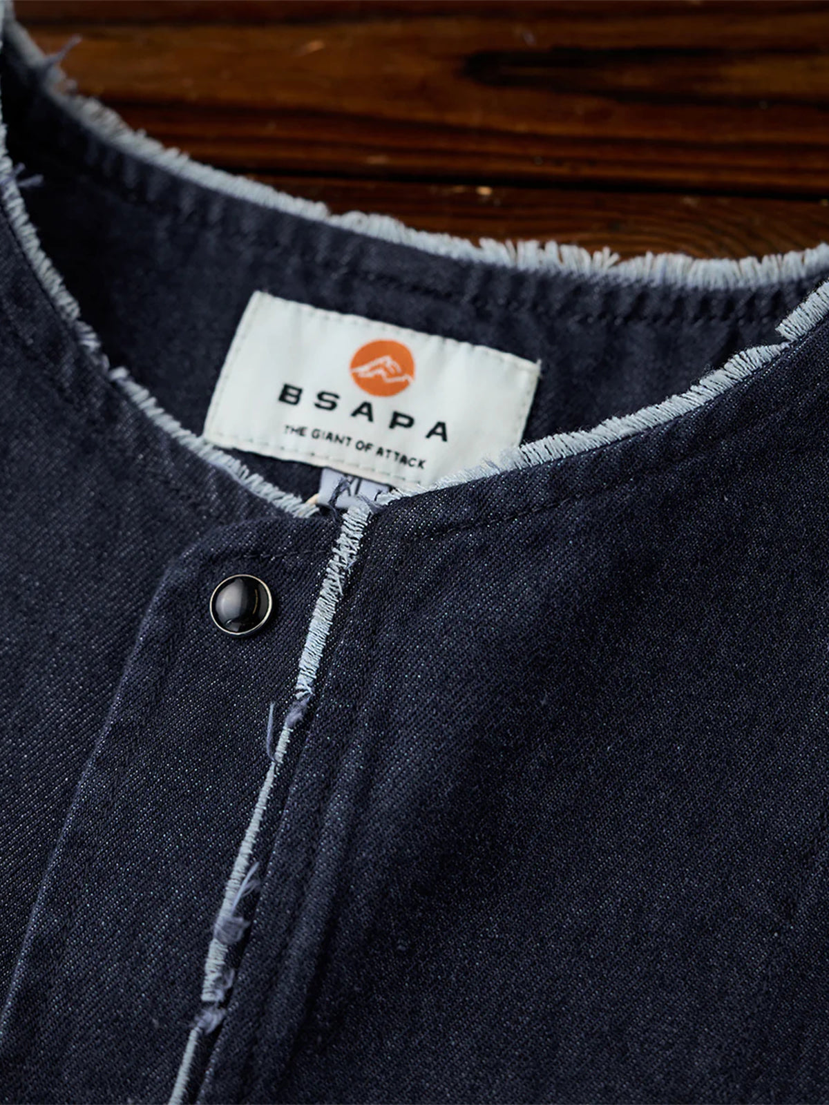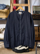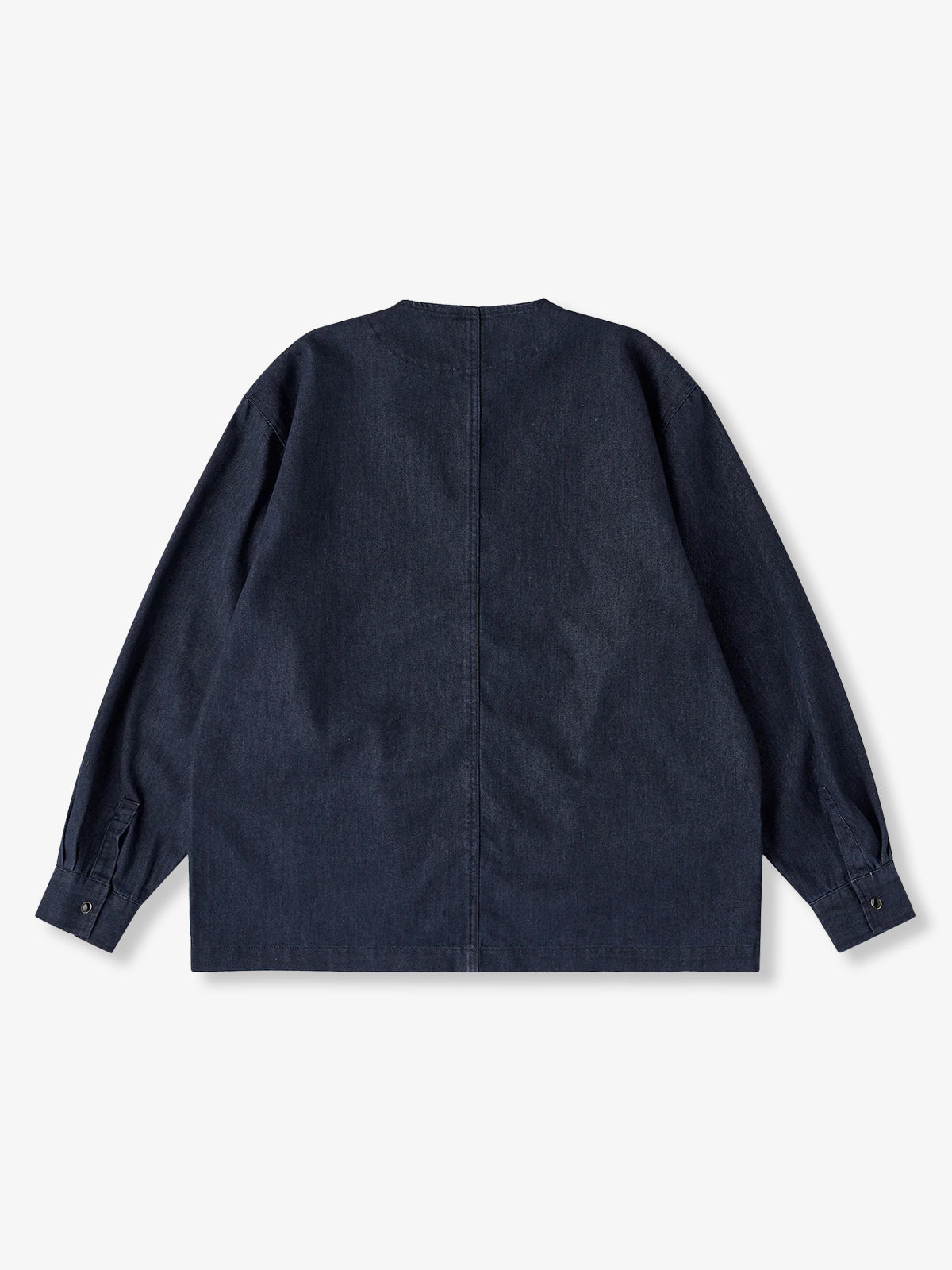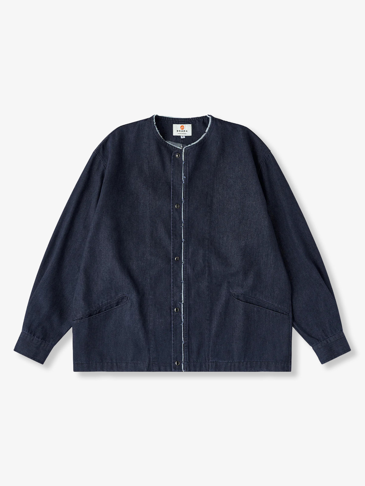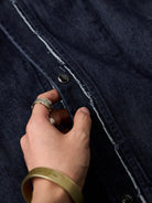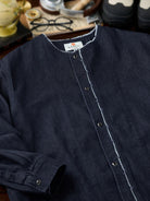 Fringed Collar & Placket No-Collar Denim Jacket