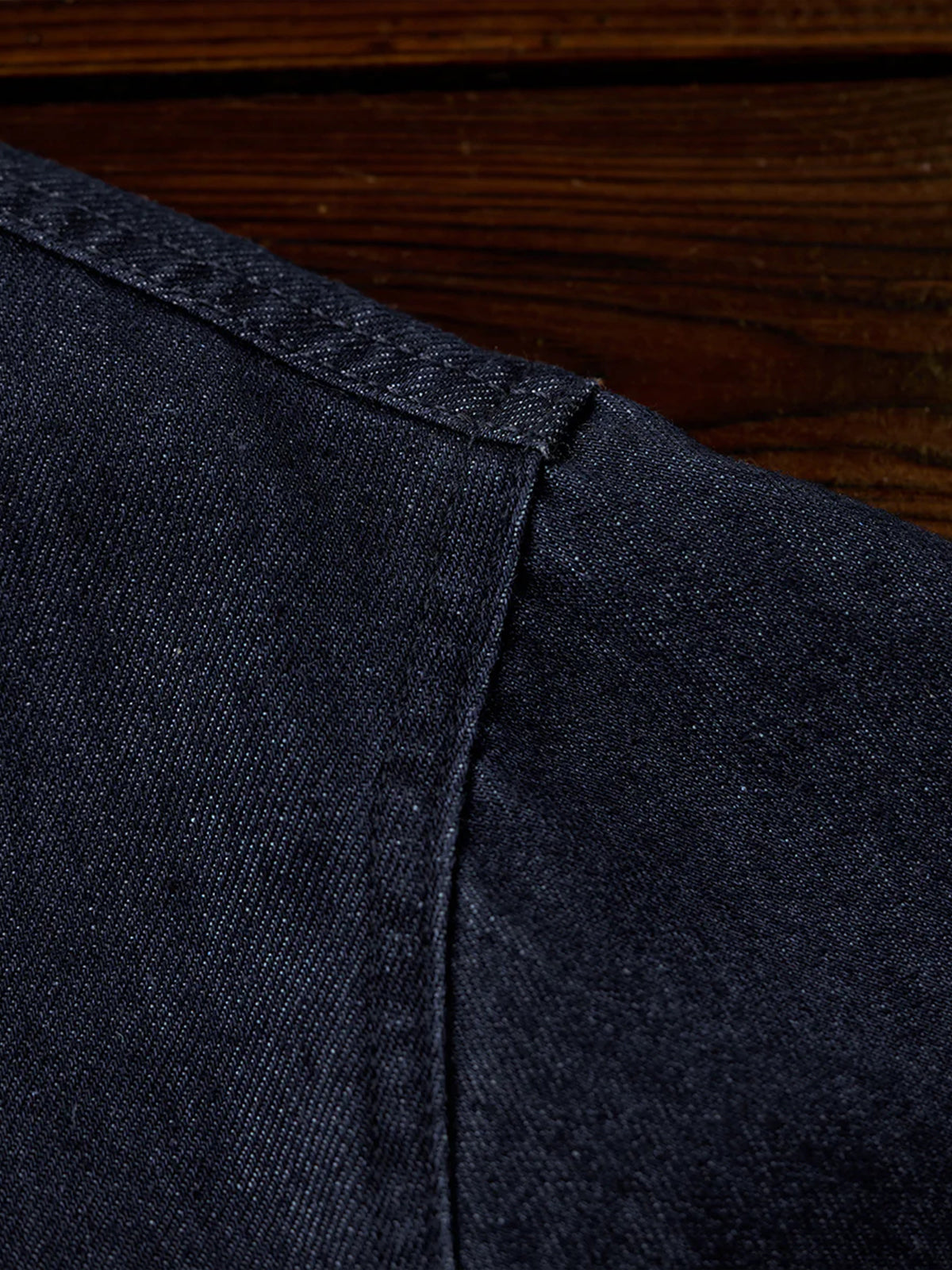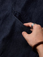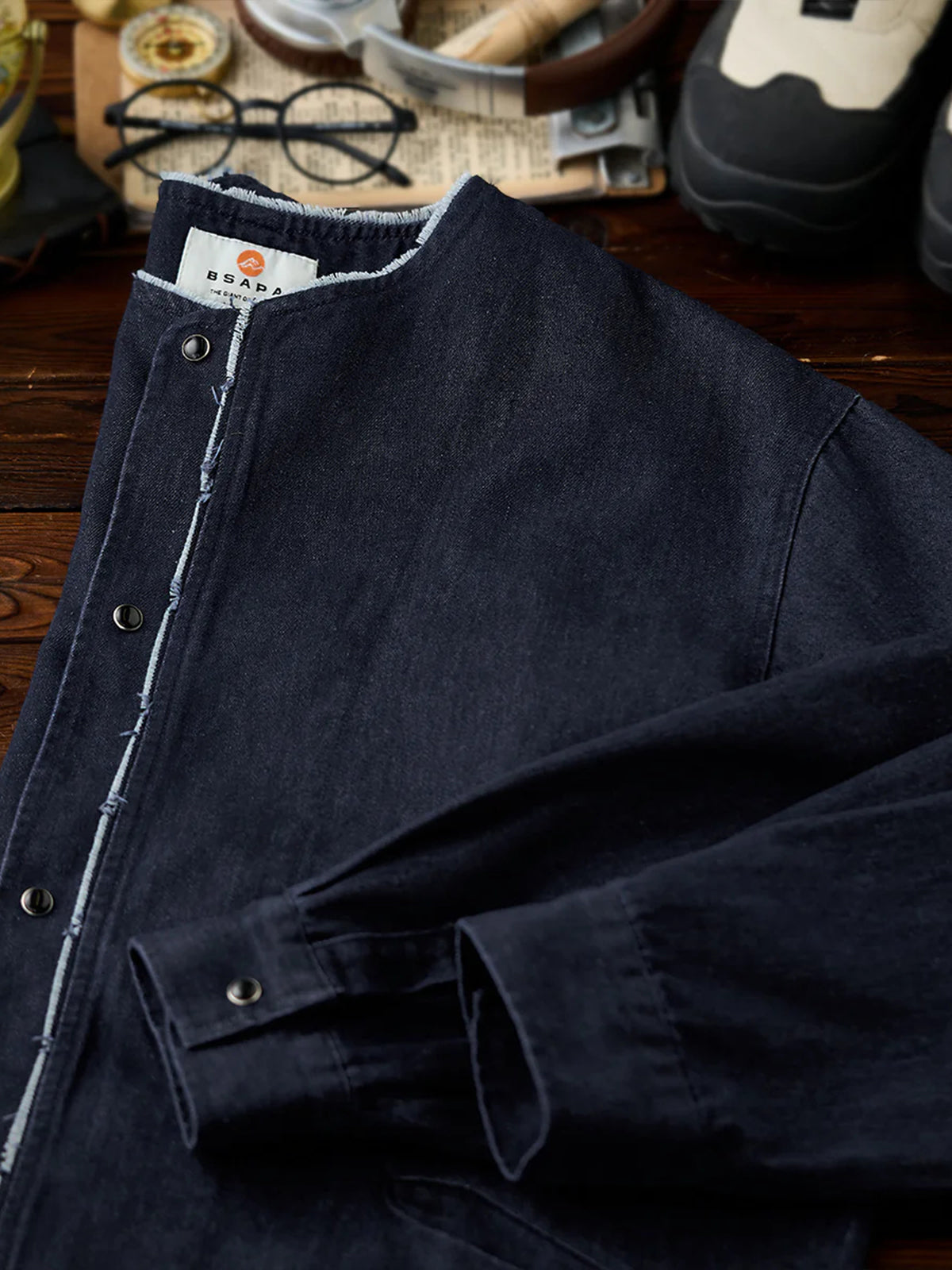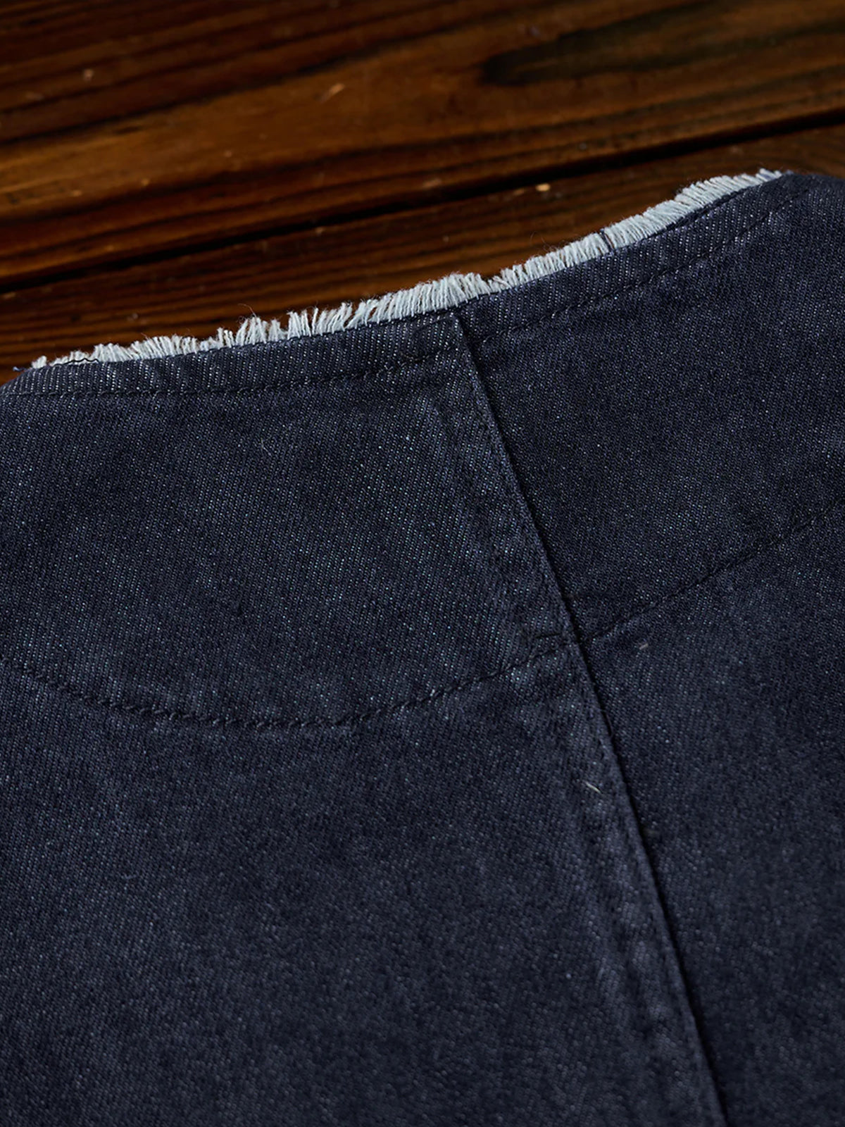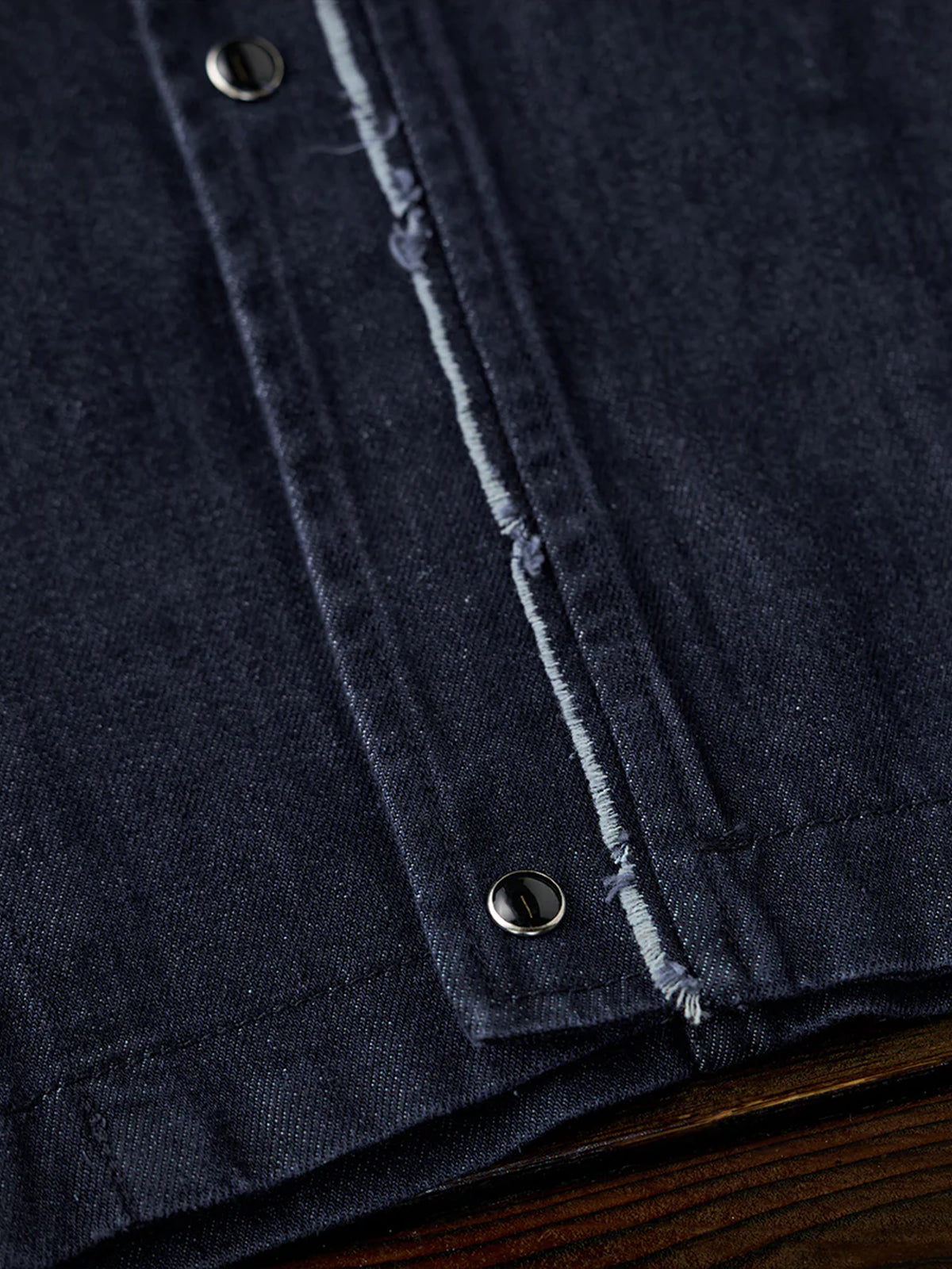 Fringed Collar & Placket No-Collar Denim Jacket