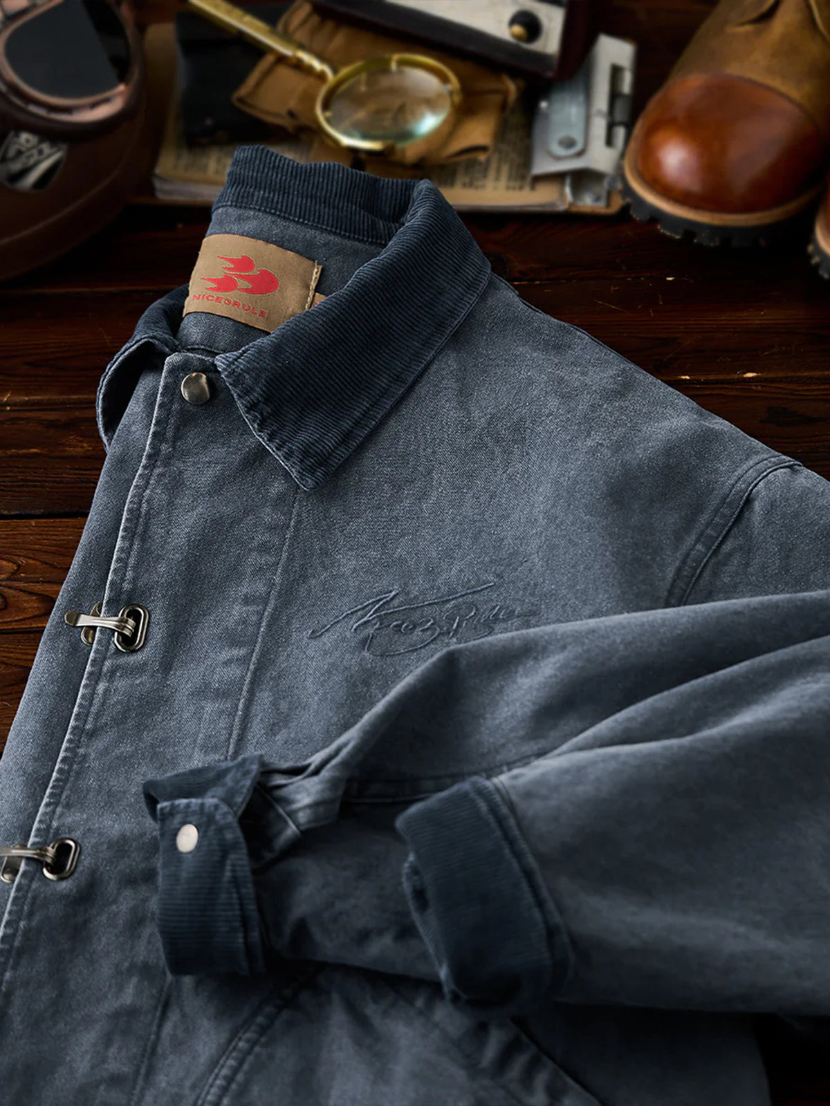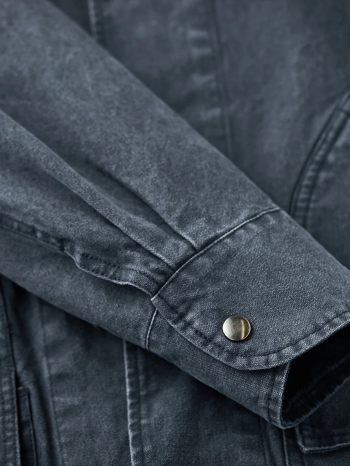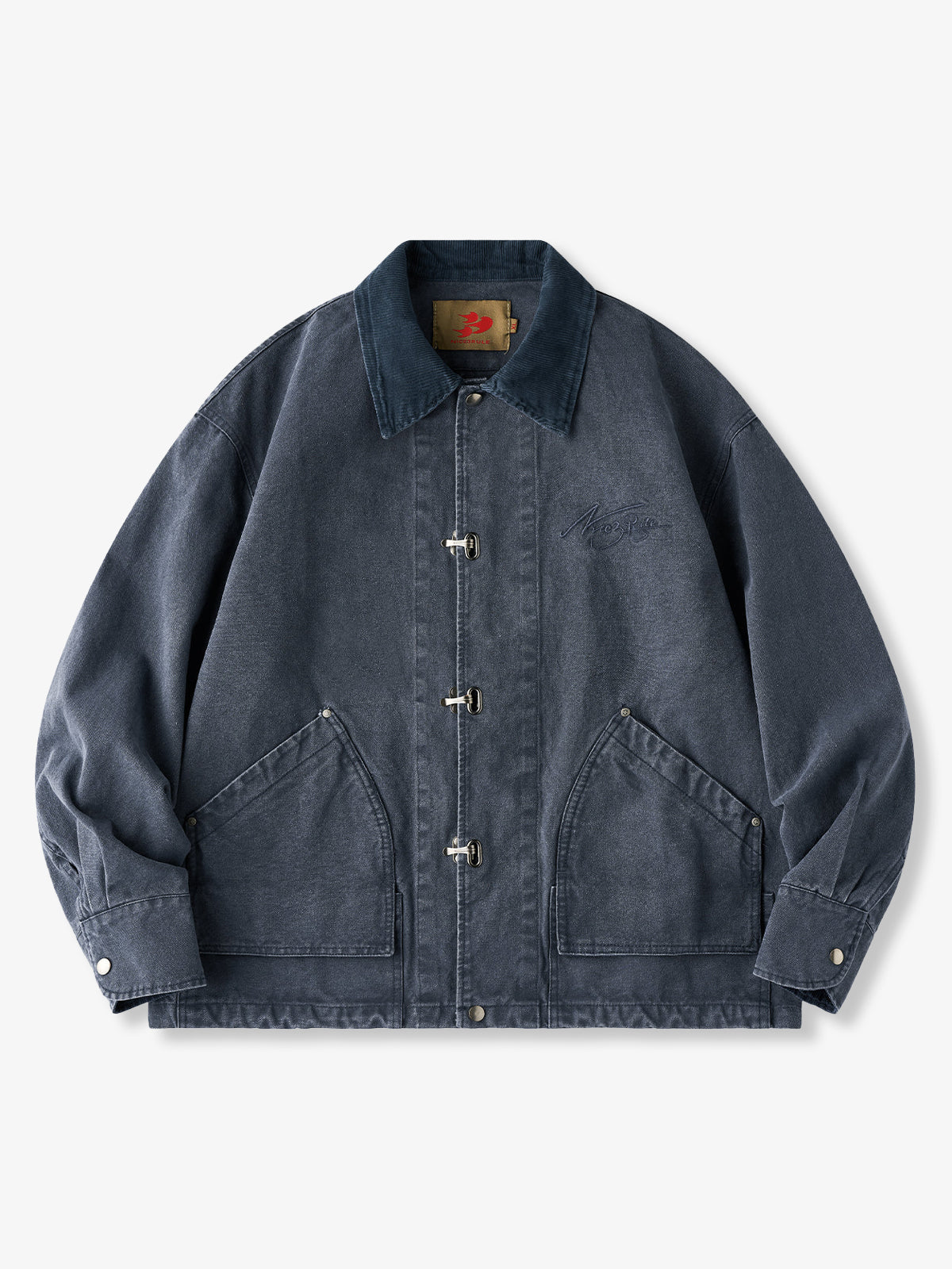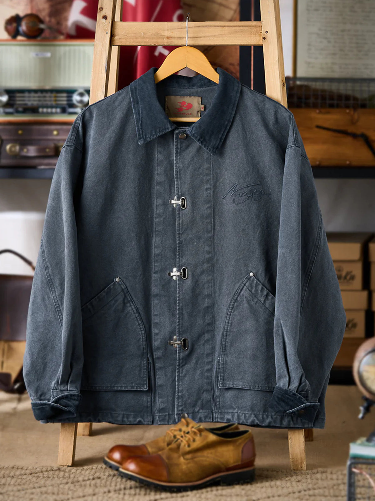 Cotton Canvas Harrington Jacket with Hook Buttons