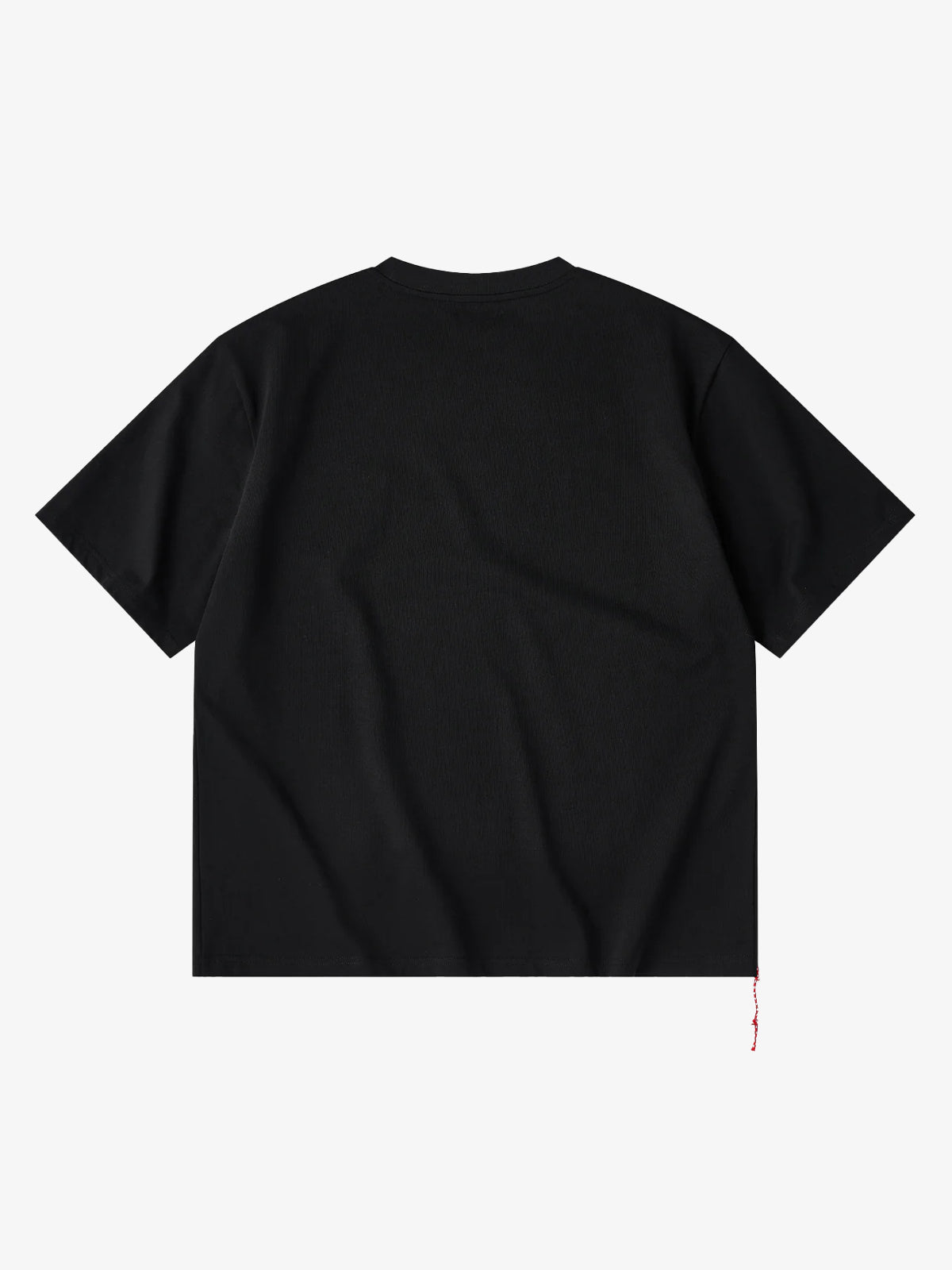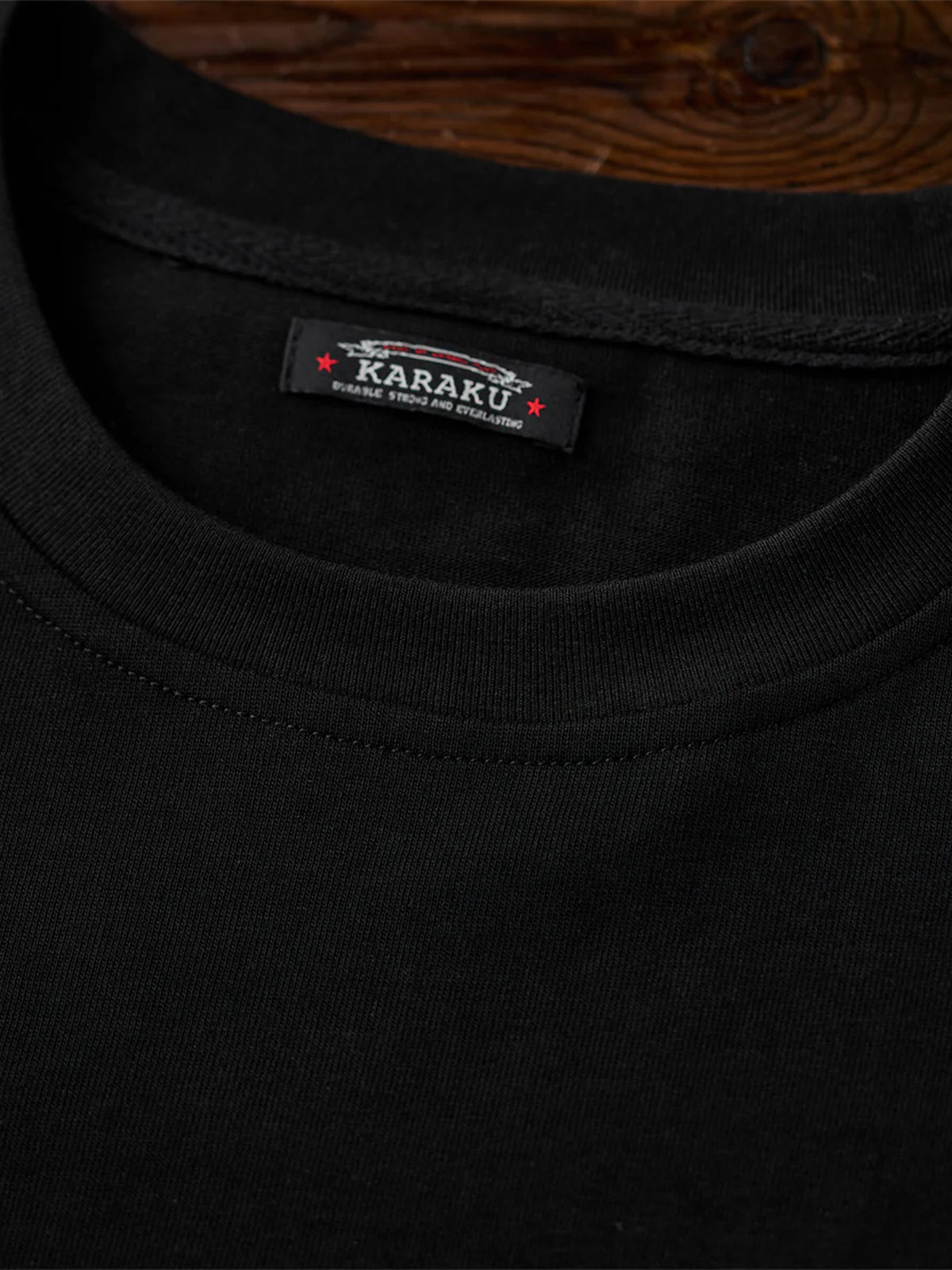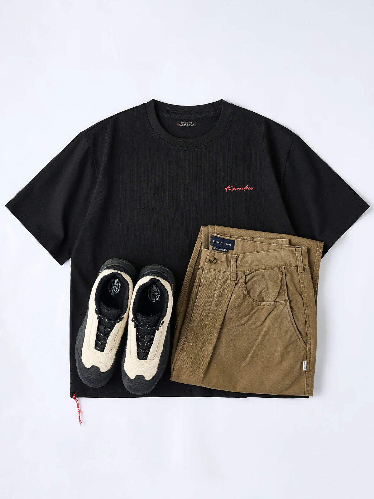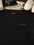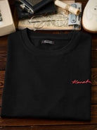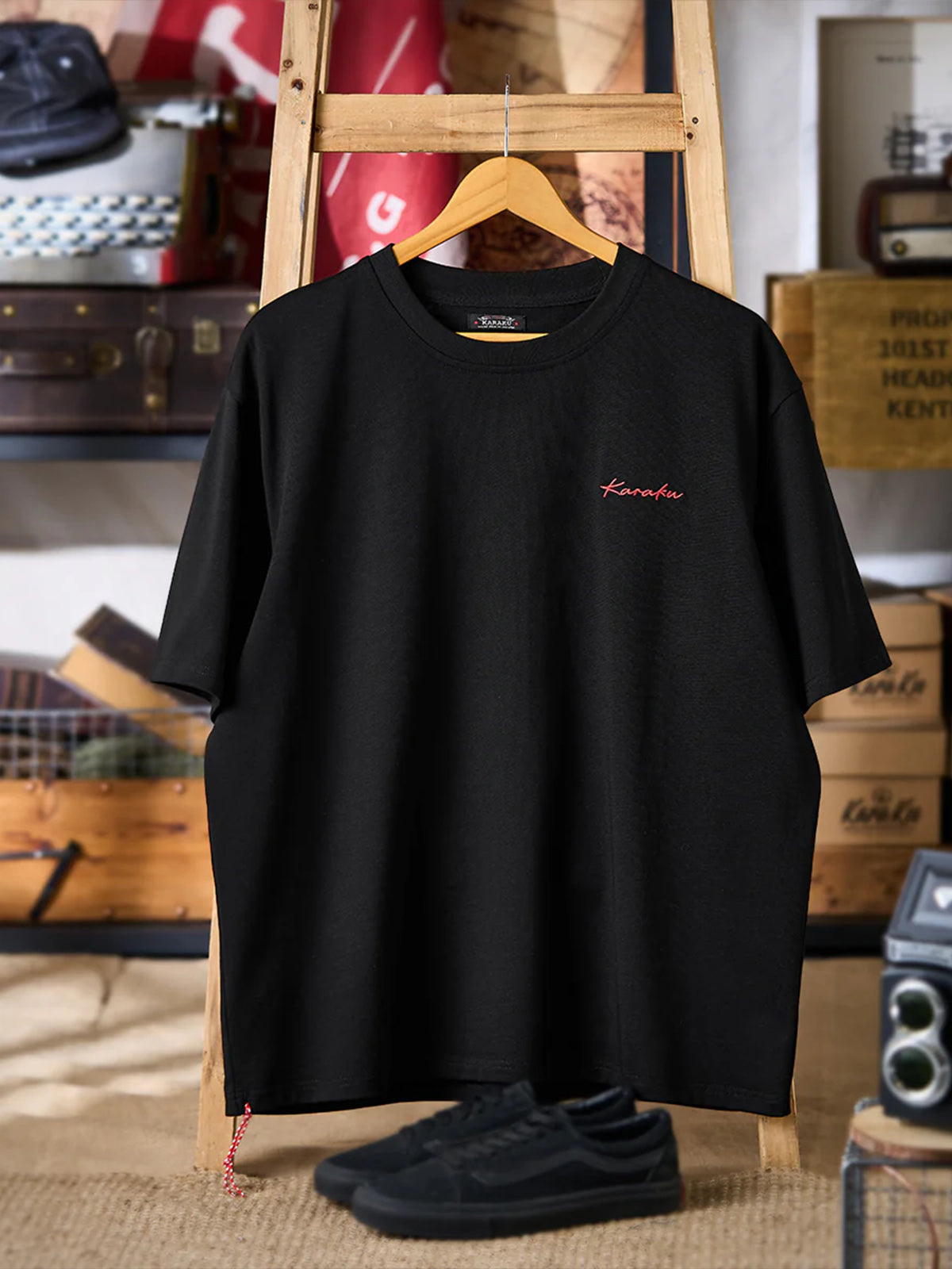 [Pre-Order] Black Cotton Tee with “KaraKu” Logo Embroidery and Red & White Drawstrings
