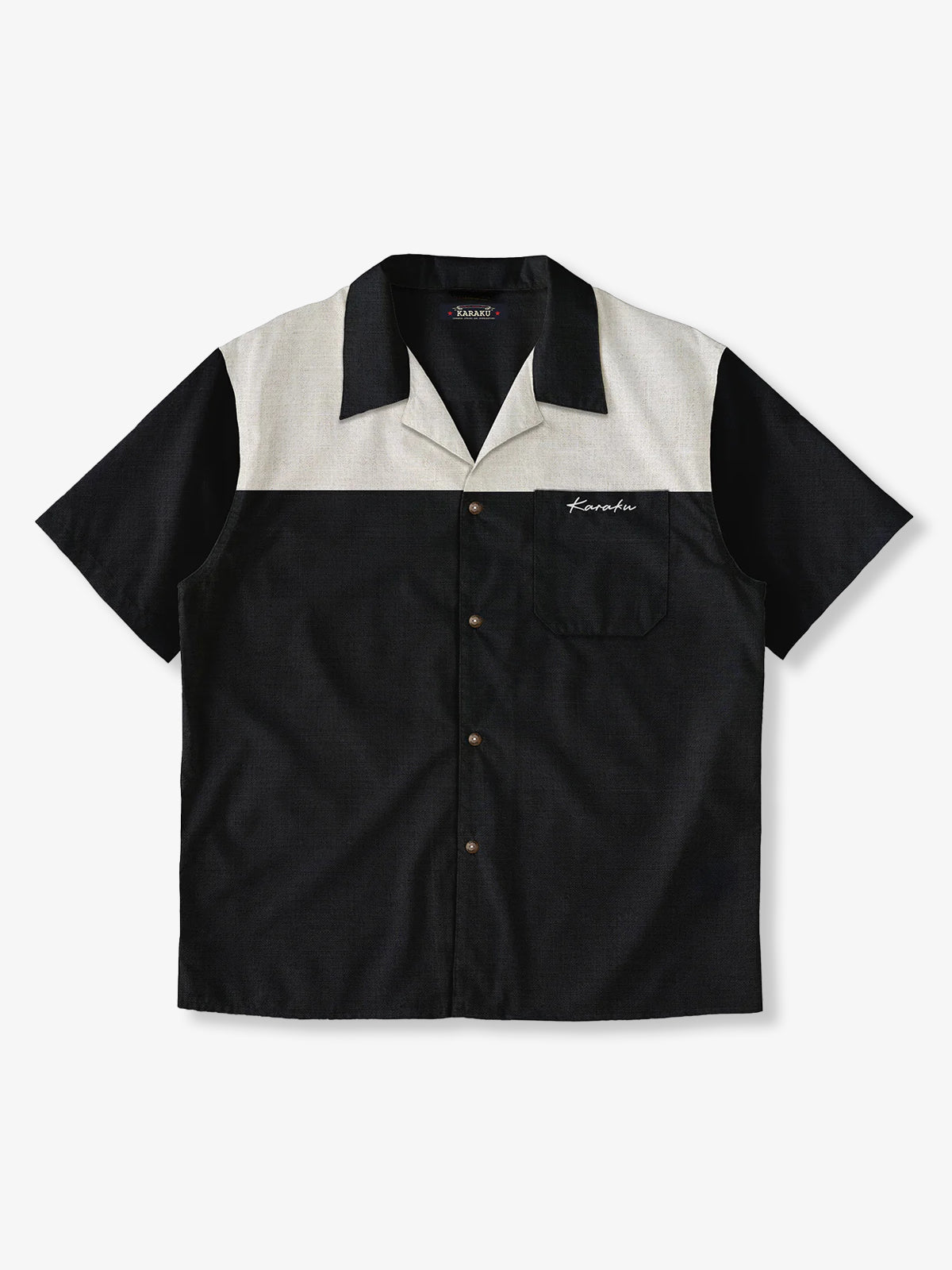 [Pre-order] “Karaku” Embroidered Color-Block Linen-Like Open Collar Shirt