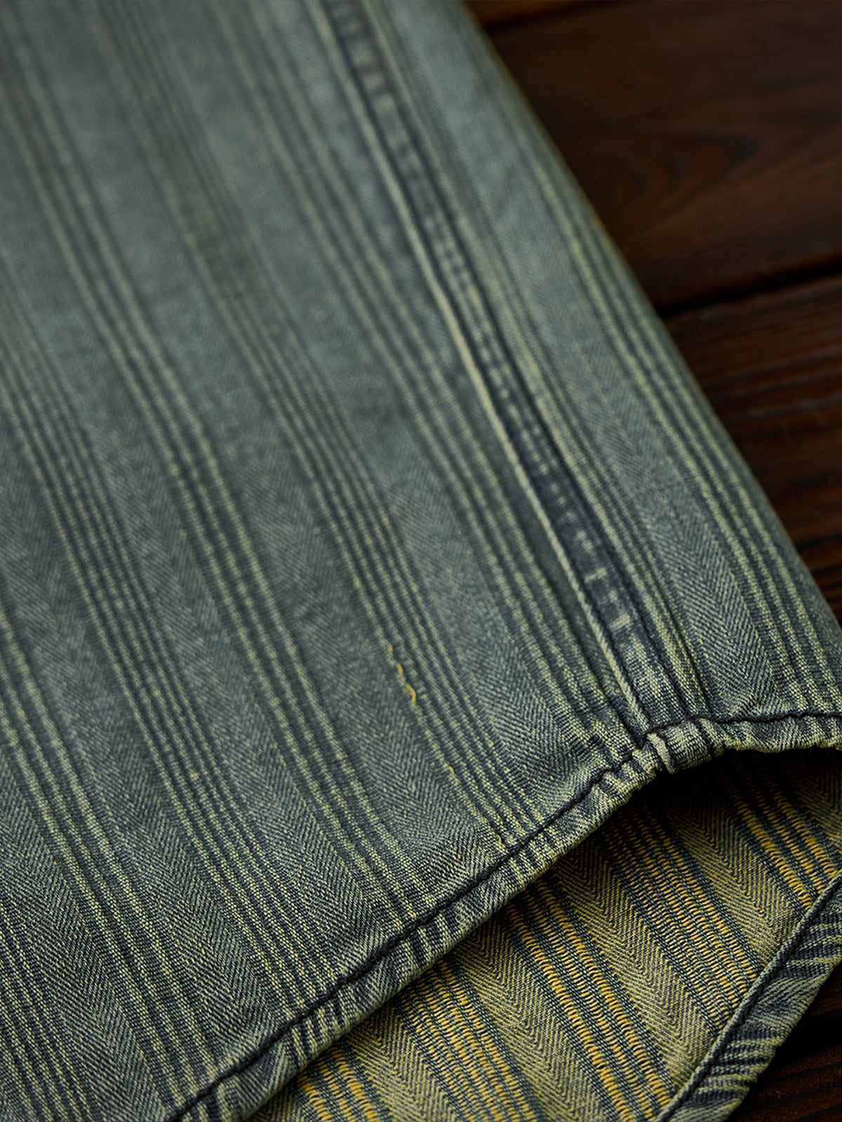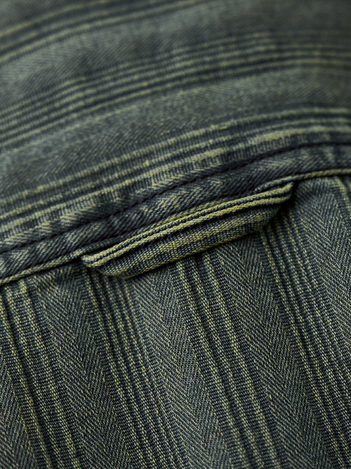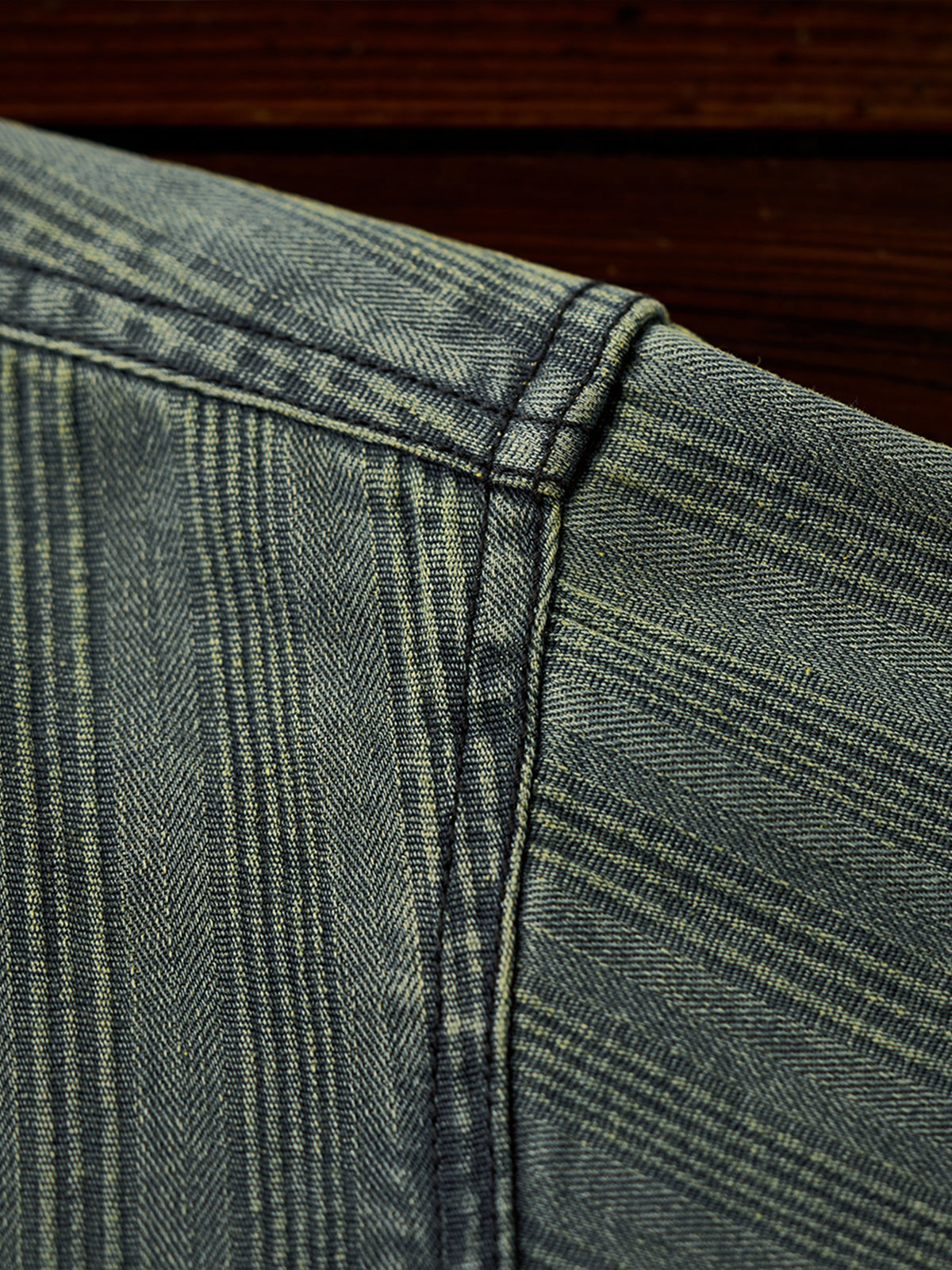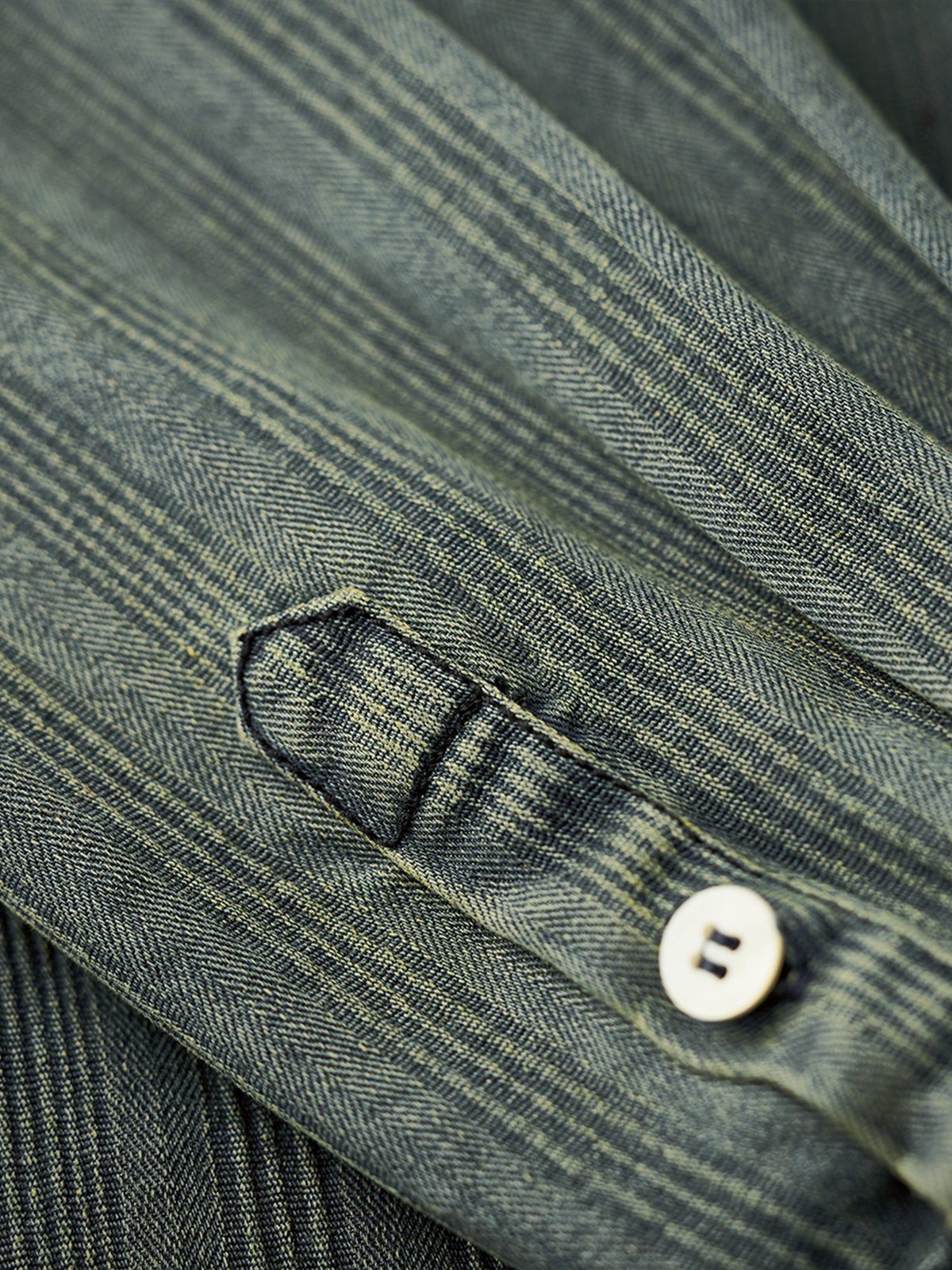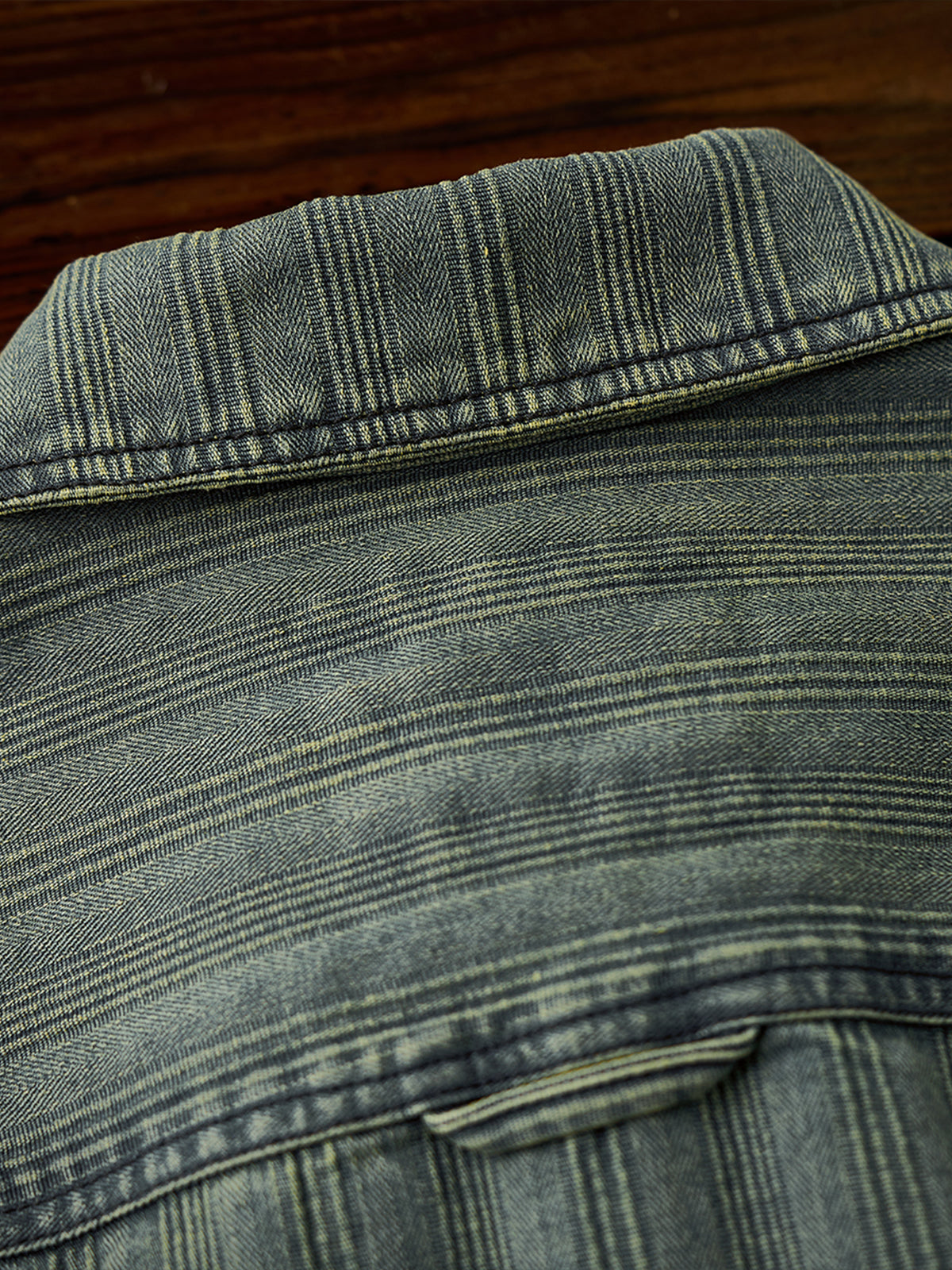 The left chest features a "STAY TRUE" embroidered patch, adding a unique, retro accent. A branded tag is stitched at the hem, highlighting fine craftsmanship. The relaxed fit ensures ease of movement and all-day comfort, while multi-button cuffs allow adjustable fit. The denim fabric offers durability and a vintage-inspired texture. Woven stripe details create visual depth and a sense of premium quality.