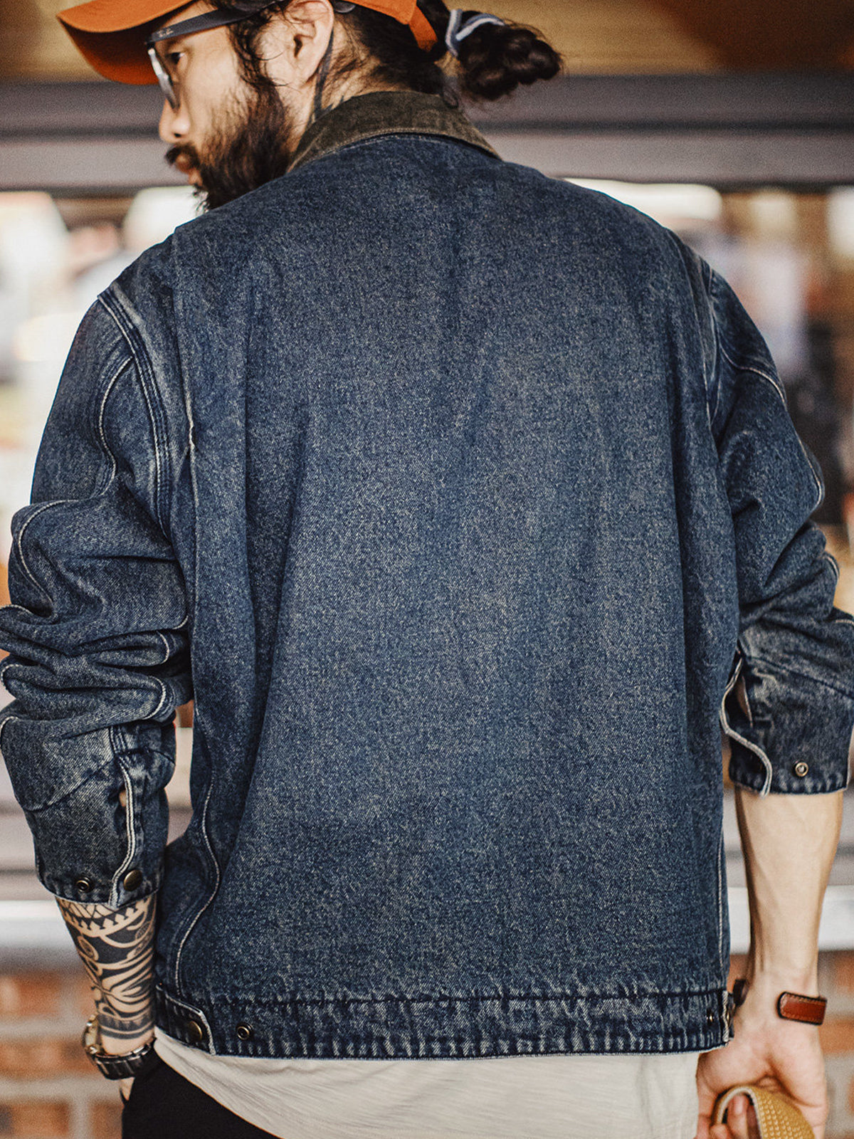 Vintage American Detroit Denim Jacket – Washed & Distressed Short Casual Collared Jacket