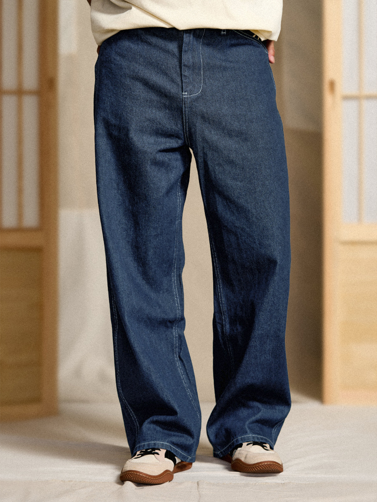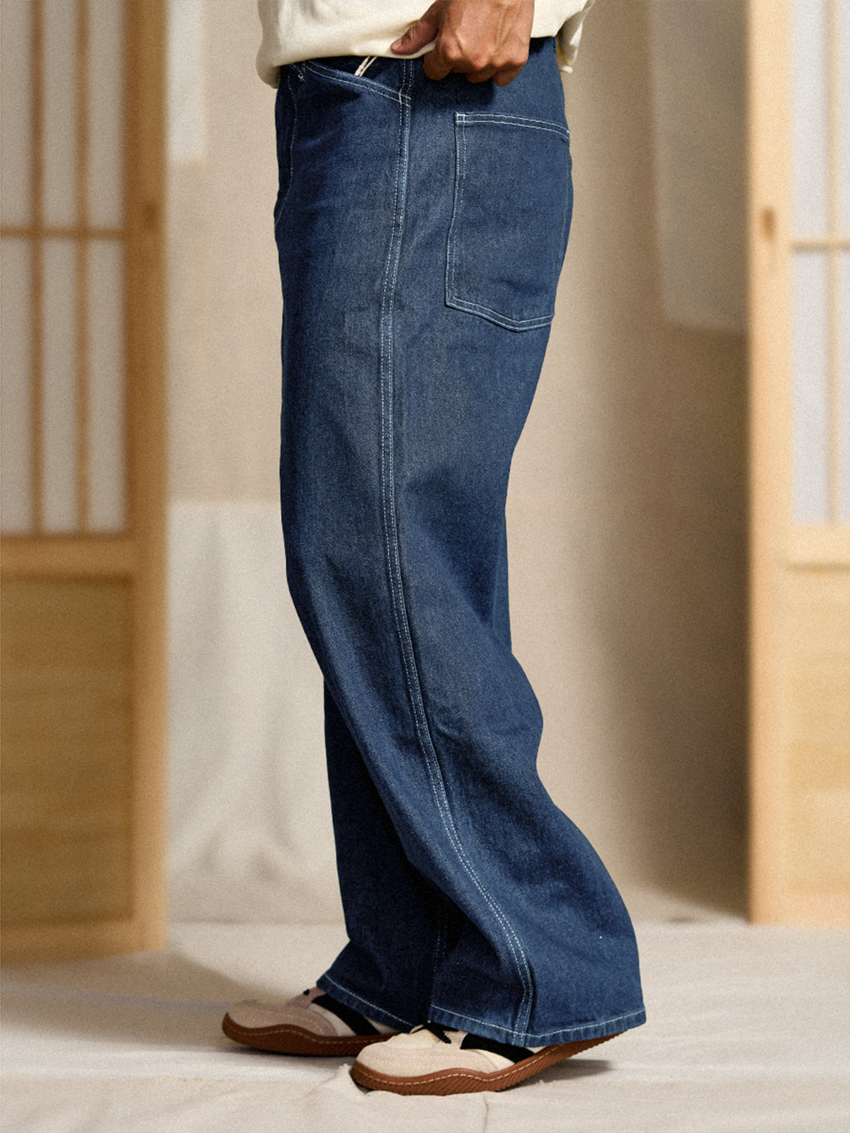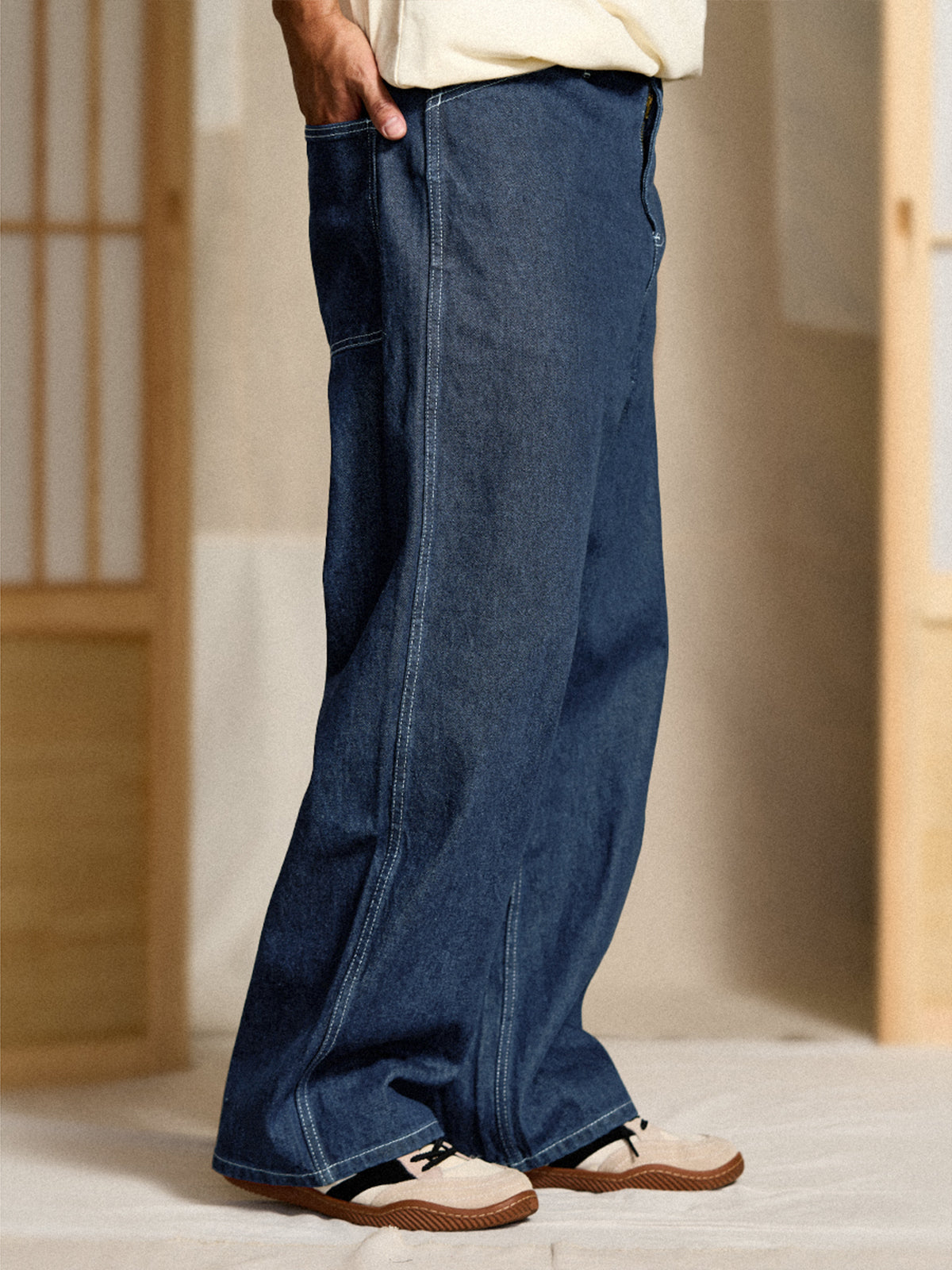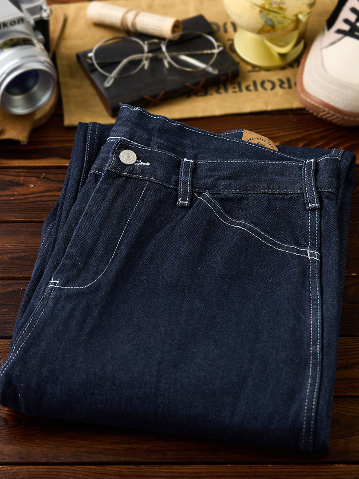 This item inherits the manufacturing with excellent practicality and durability in people's daily life in the past. From the material representing the 11.5OZ denim that workers love, the original denim fabric that thoroughly focuses on the twisting and density of the original yarn is hard, has a strong tension, and has a good texture, and can stand alone as it is. It is characterized by a deep crotch, and the silhouette is neatly displayed with a wide and calm fabric.
