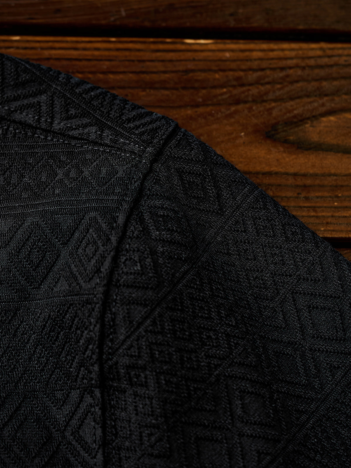 A Henley-neck T-shirt made from lightweight, soft cotton-blend fabric. Turquoise-style buttons at the chest add a subtle ethnic accent, giving the piece a distinctive vibe. The ethnic-inspired jacquard pattern across the body is not just a print but a textured weave that adds depth to the design. Casual yet visually interesting, this T-shirt stands out even worn on its own. The clean Henley neckline makes it easy to layer under shirts or jackets, making it versatile for relaxed spring–summer looks or layered autumn–winter outfits. The harmony of material and design gives a natural accent to everyday styling.