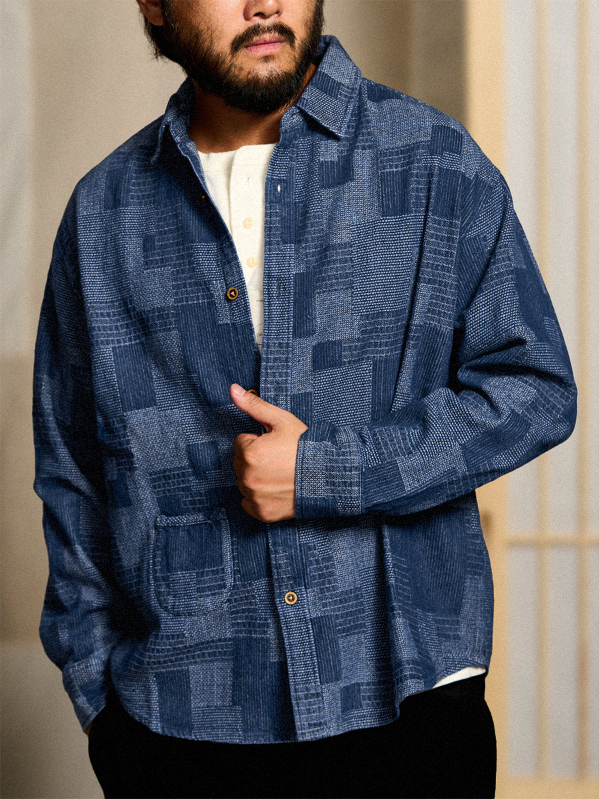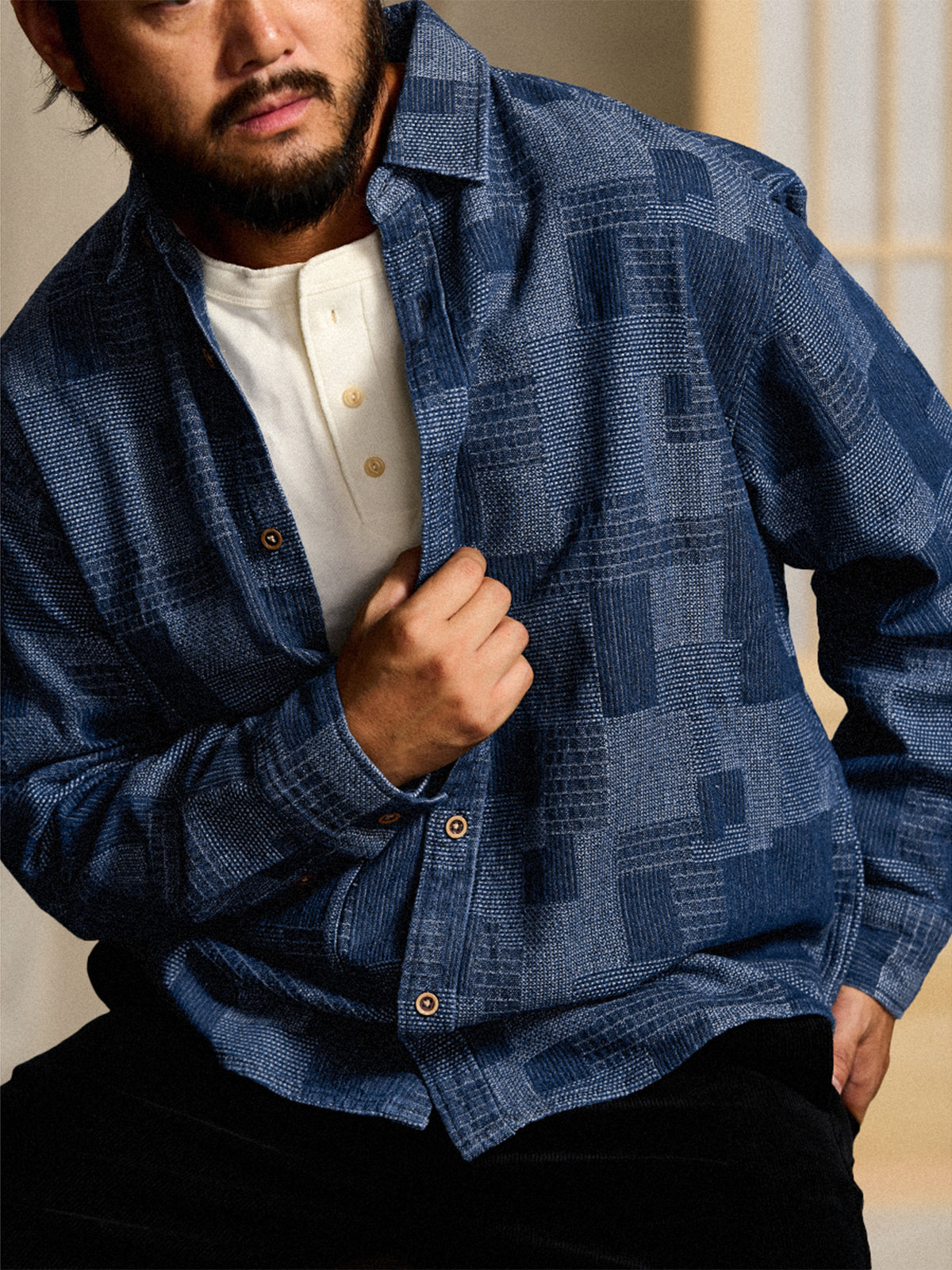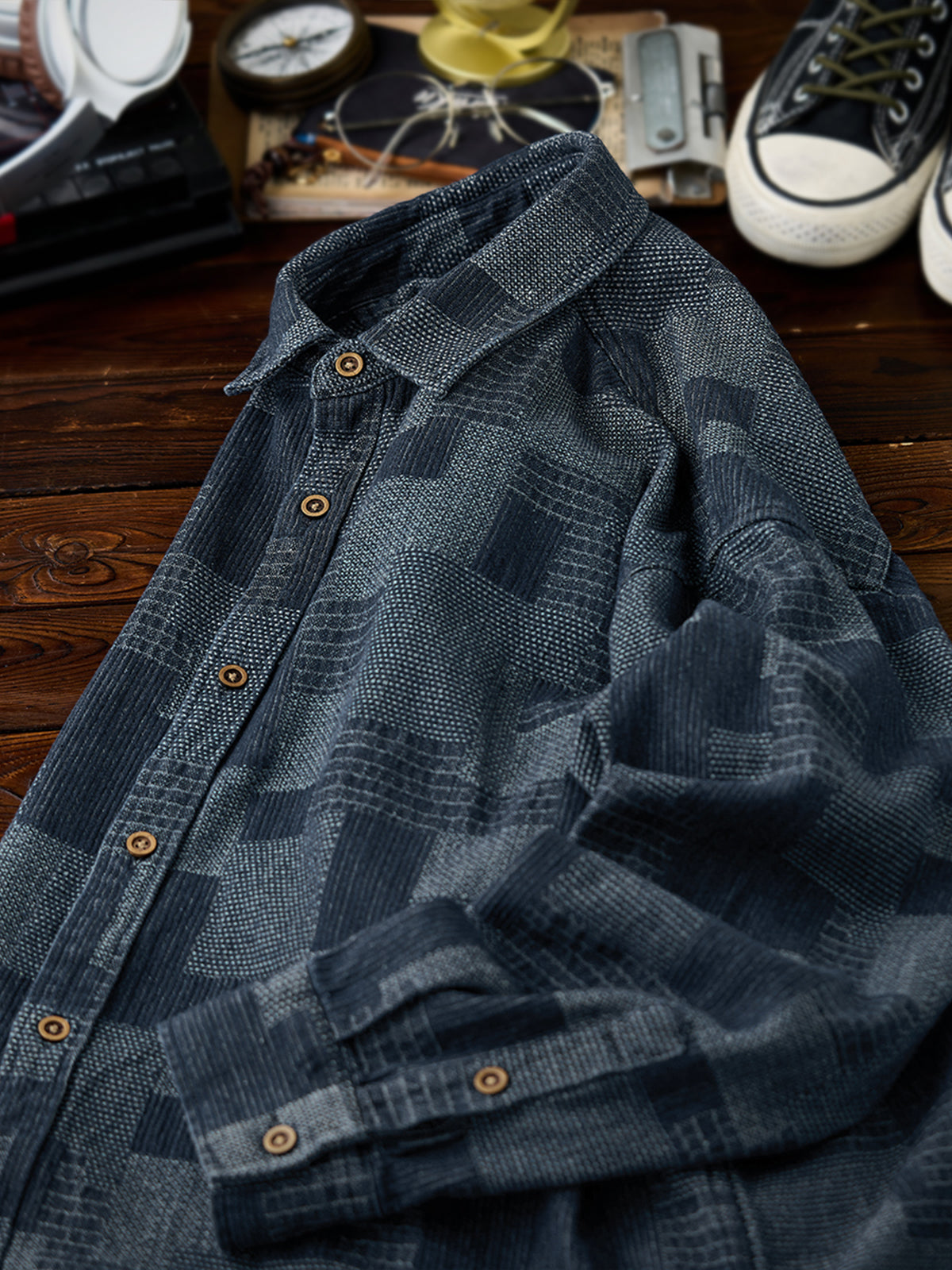 Boro Jacquard Pre-dyed Denim Work Shirt
