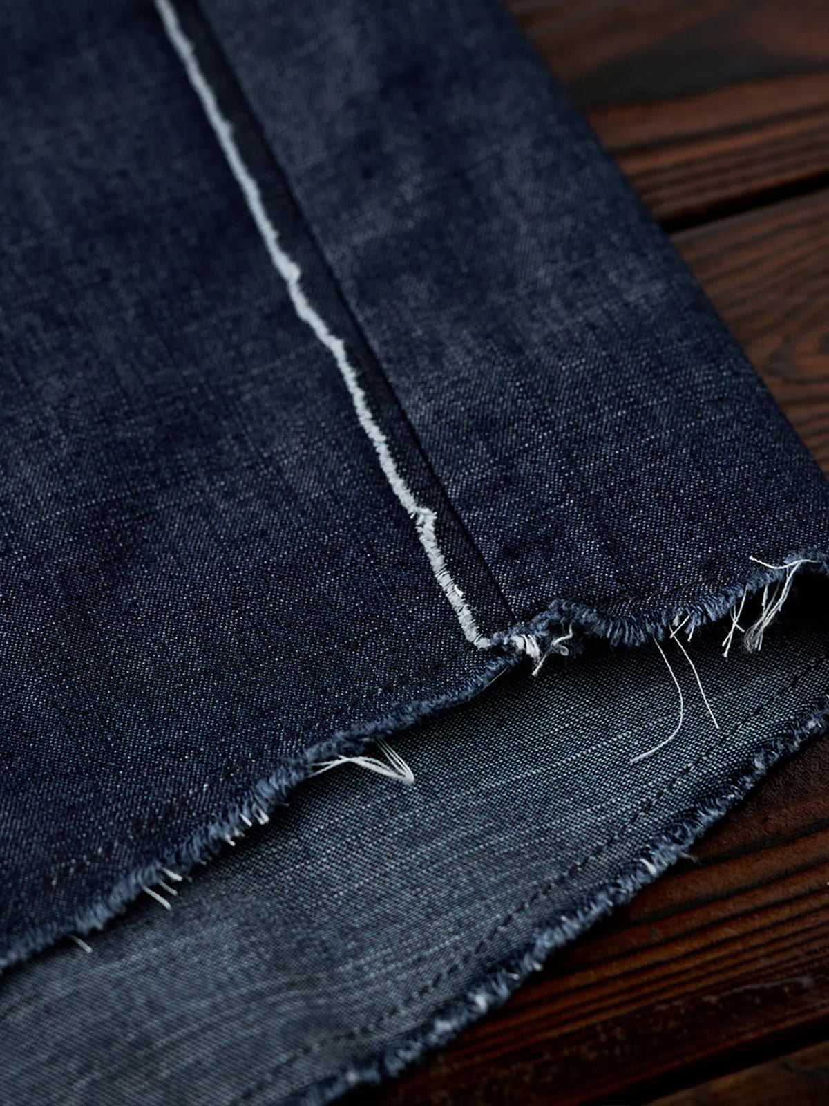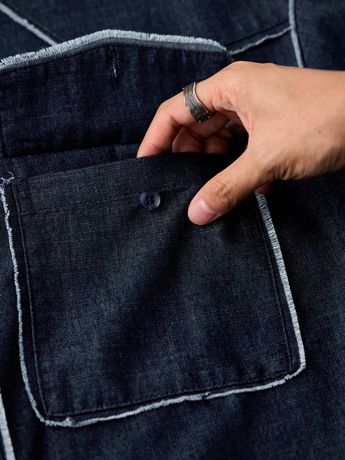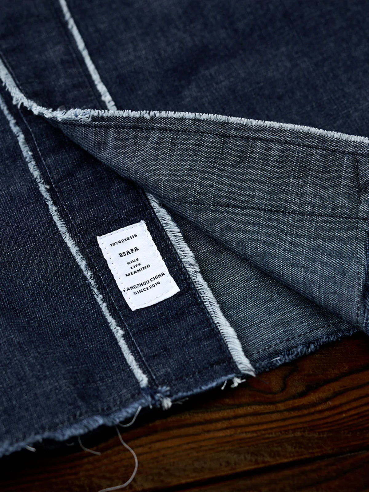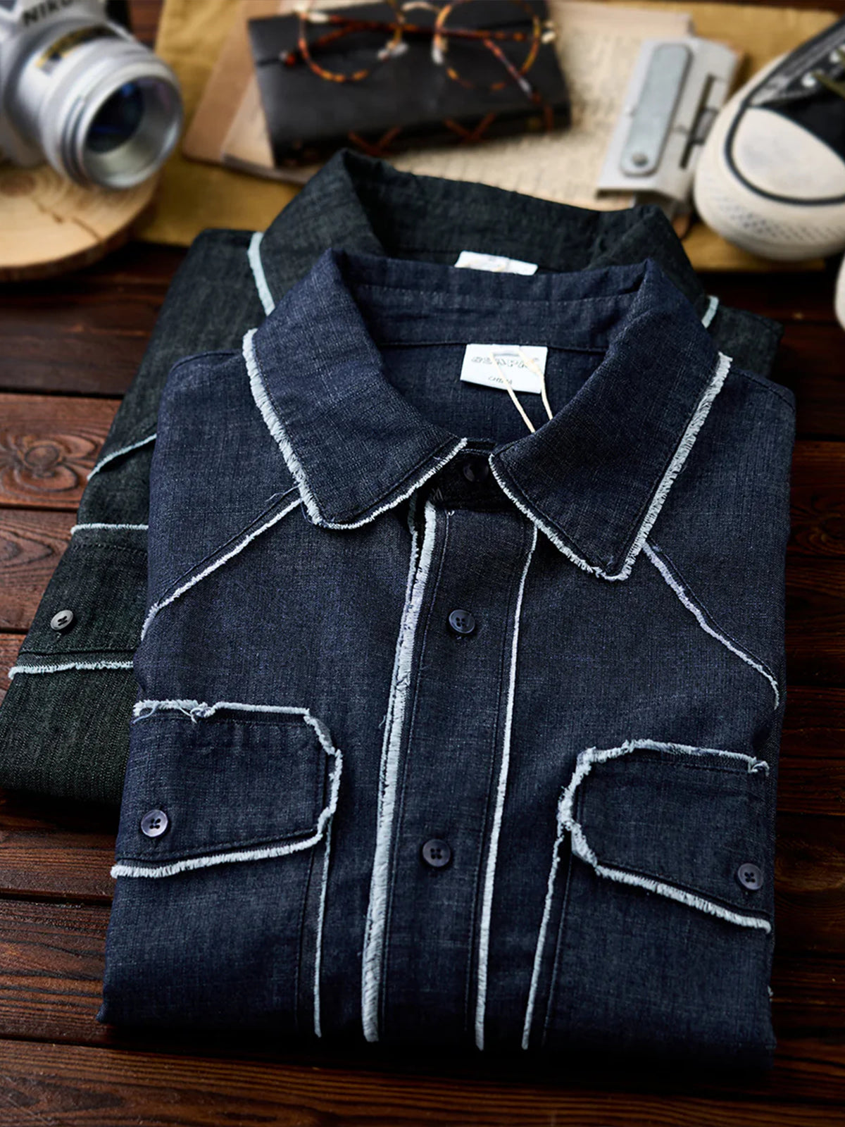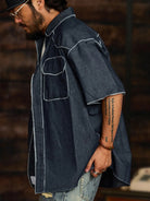 White Stitching Fringed Denim Short-Sleeve Shirt
