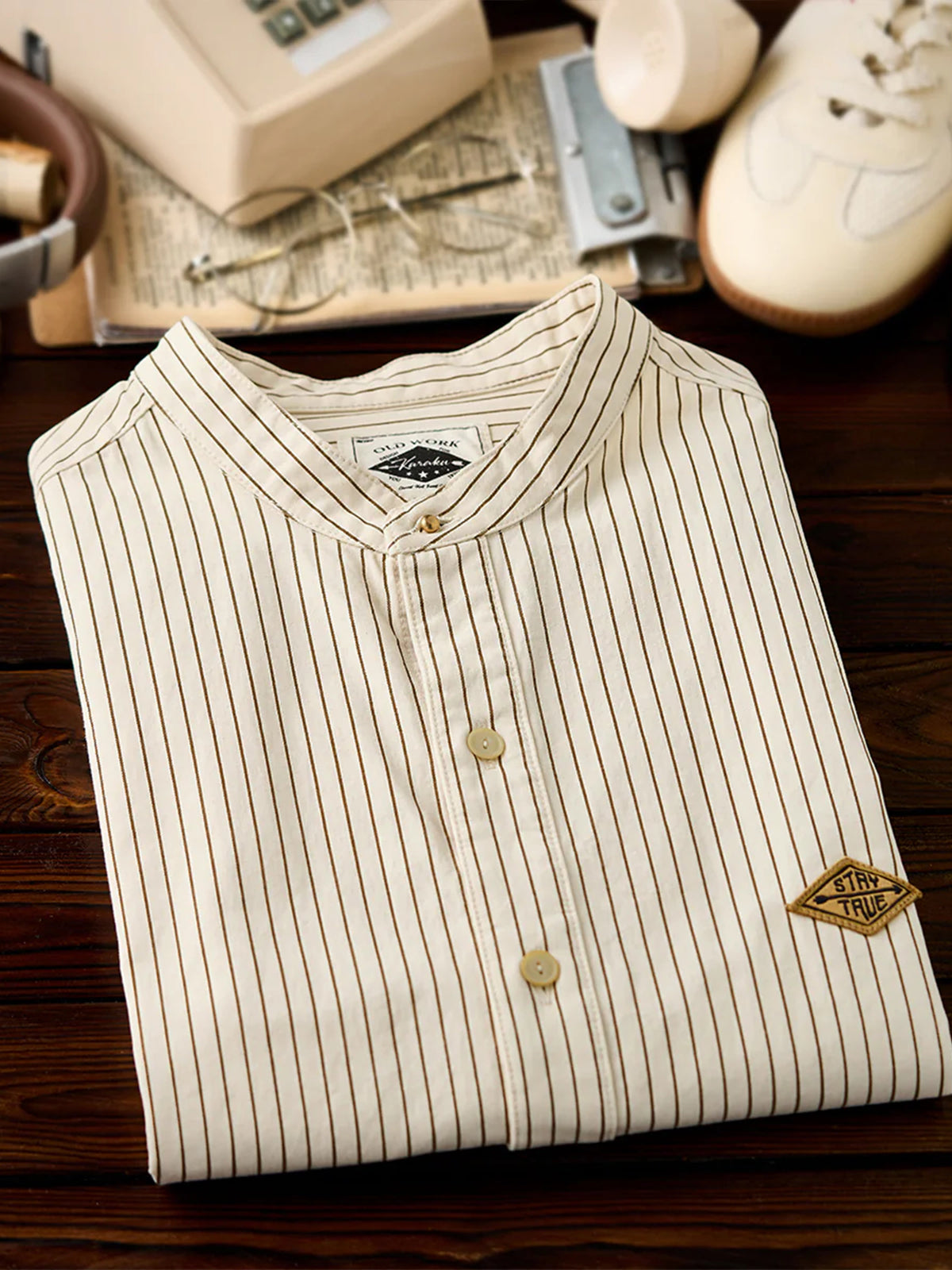 A subtle embroidered "stay true" badge sits on the left chest, bringing a playful accent to this shirt. The overall striped design lends it a classic vintage, old-school baseball vibe, while the relaxed oversized fit aligns with modern streetwear trends. This fusion of retro and contemporary style makes it a standout piece for versatile layering and fresh silhouettes.