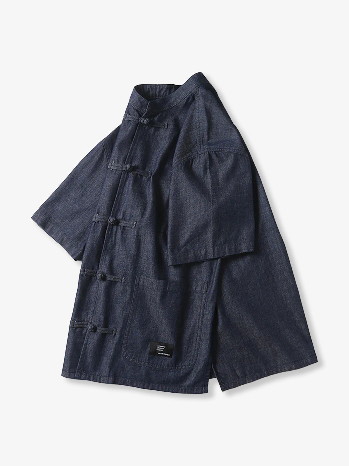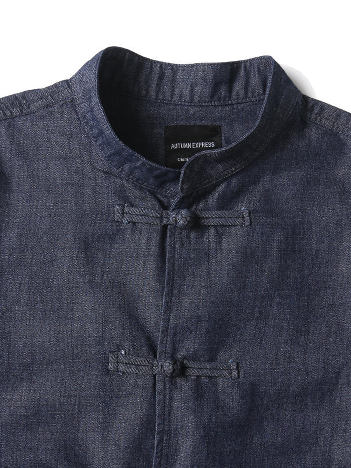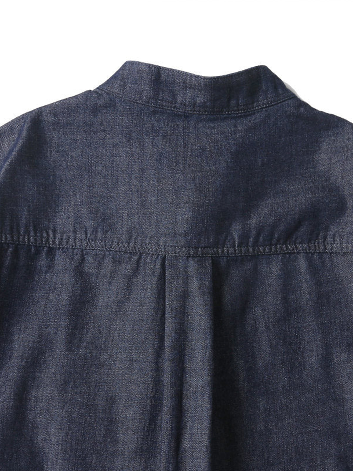 Chinese Button Down Collar Denim Short Sleeve Shirt