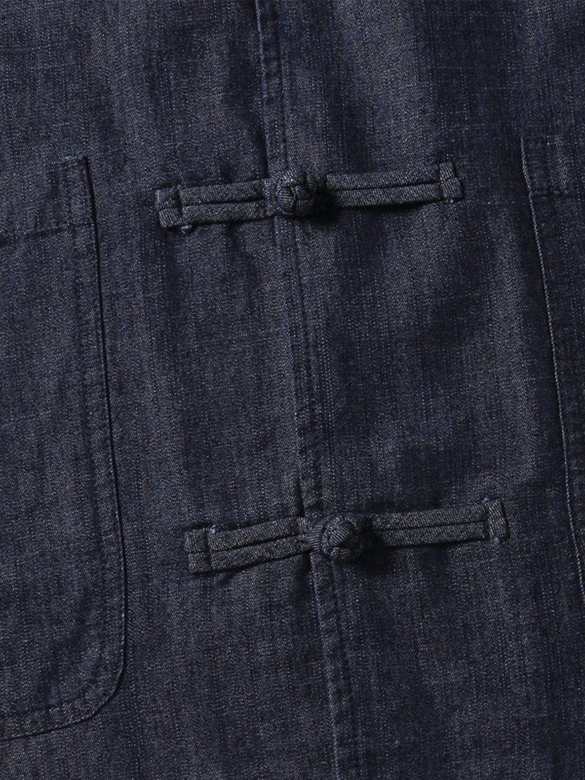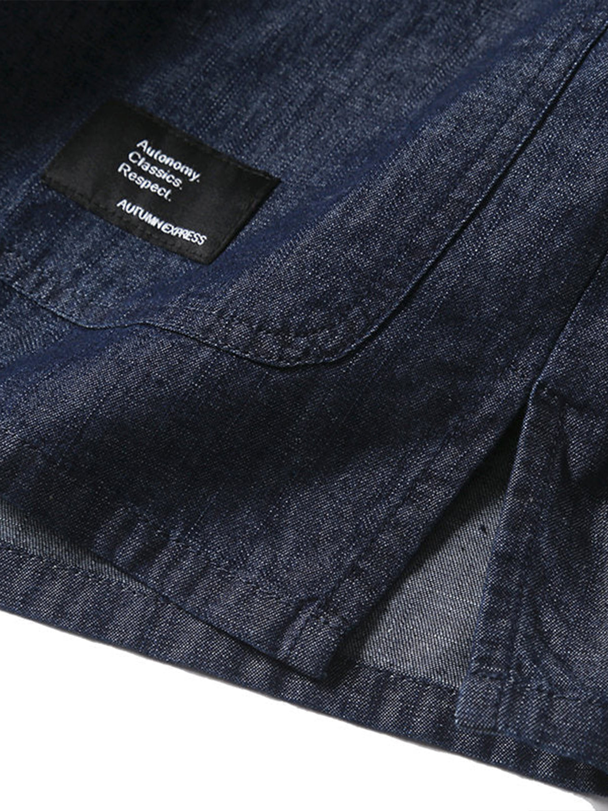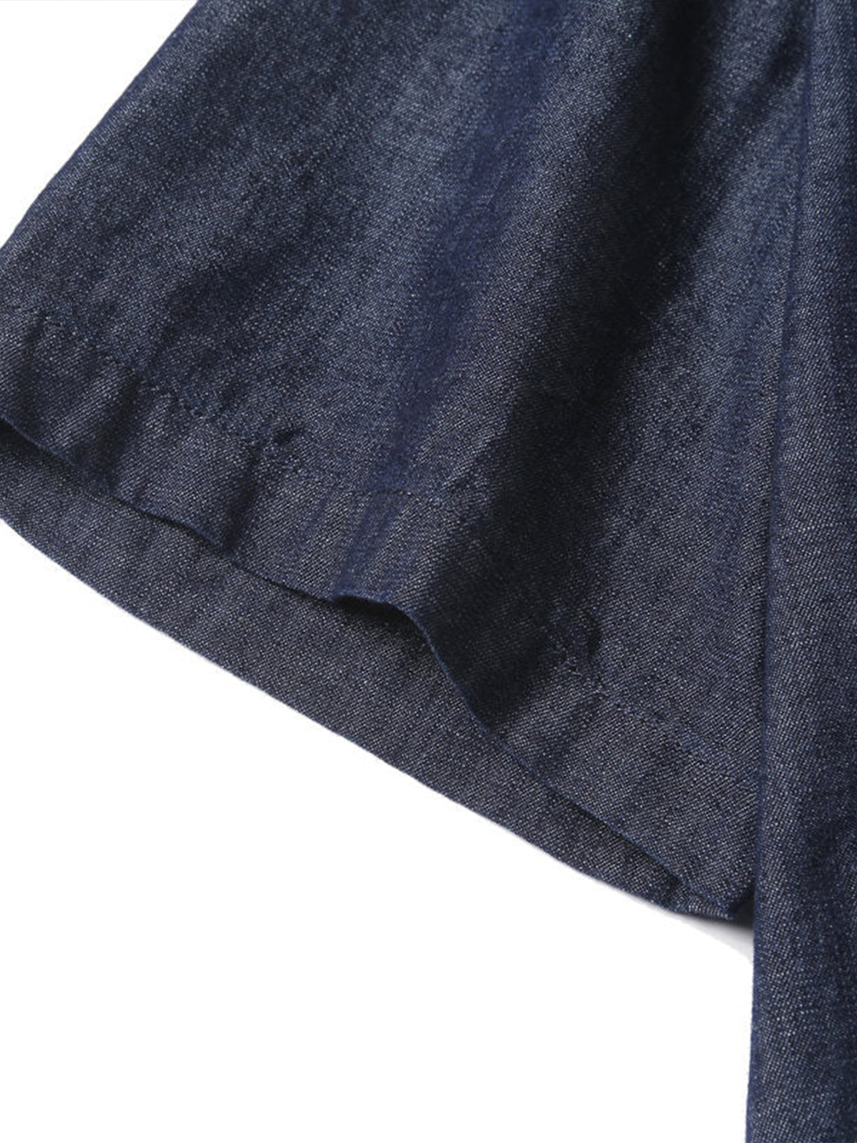 Chinese Button Down Collar Denim Short Sleeve Shirt