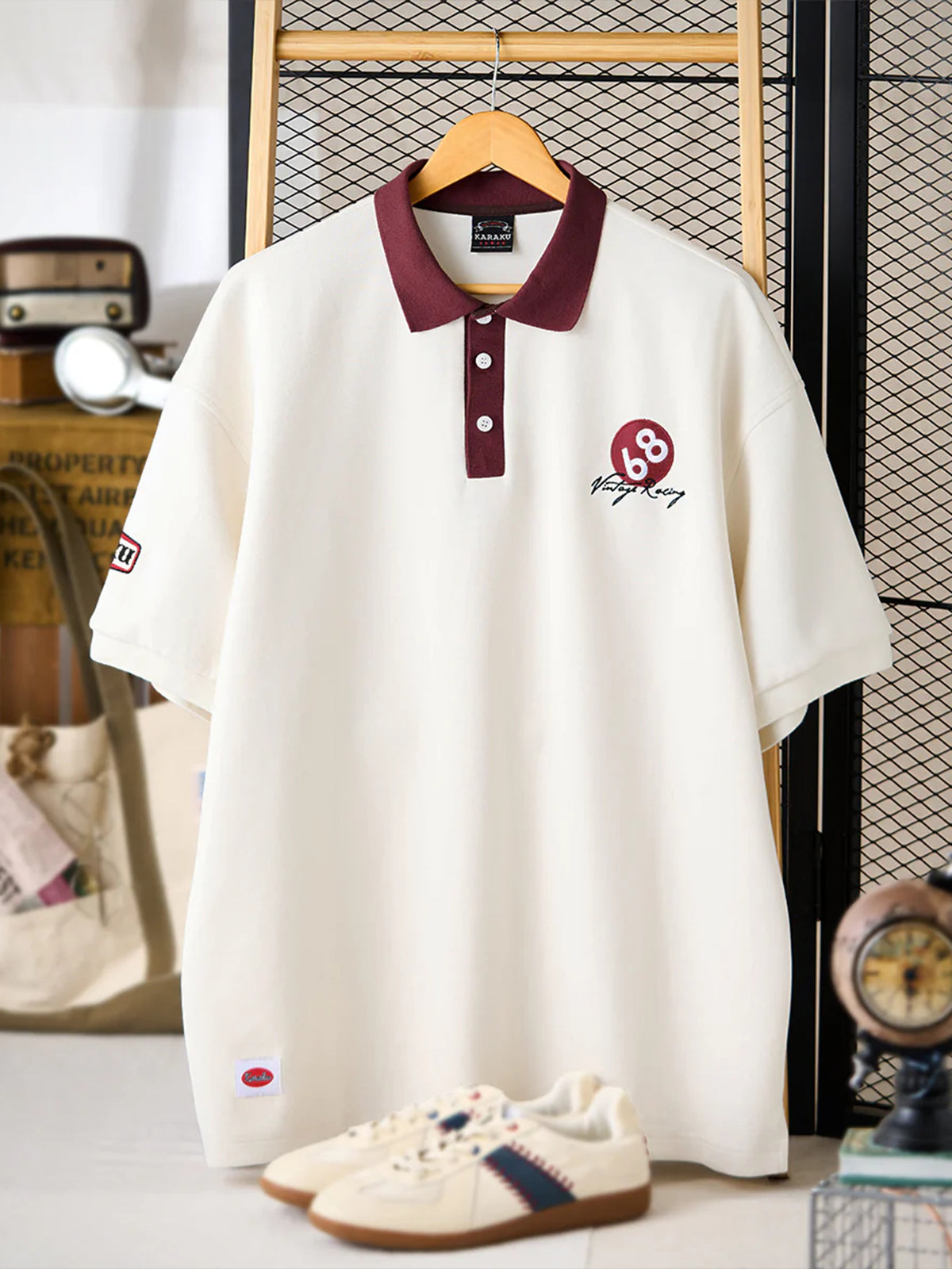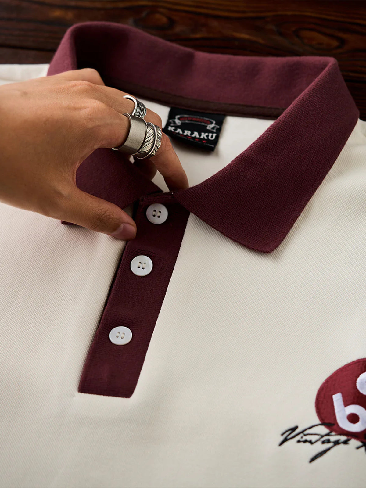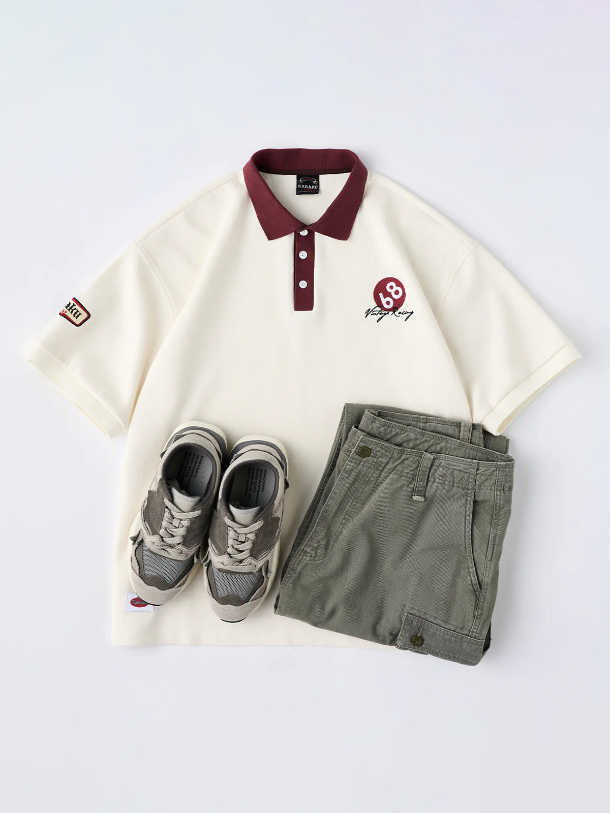 KaraKu Logo & Racing Embroidery Colorblock Polo Shirt