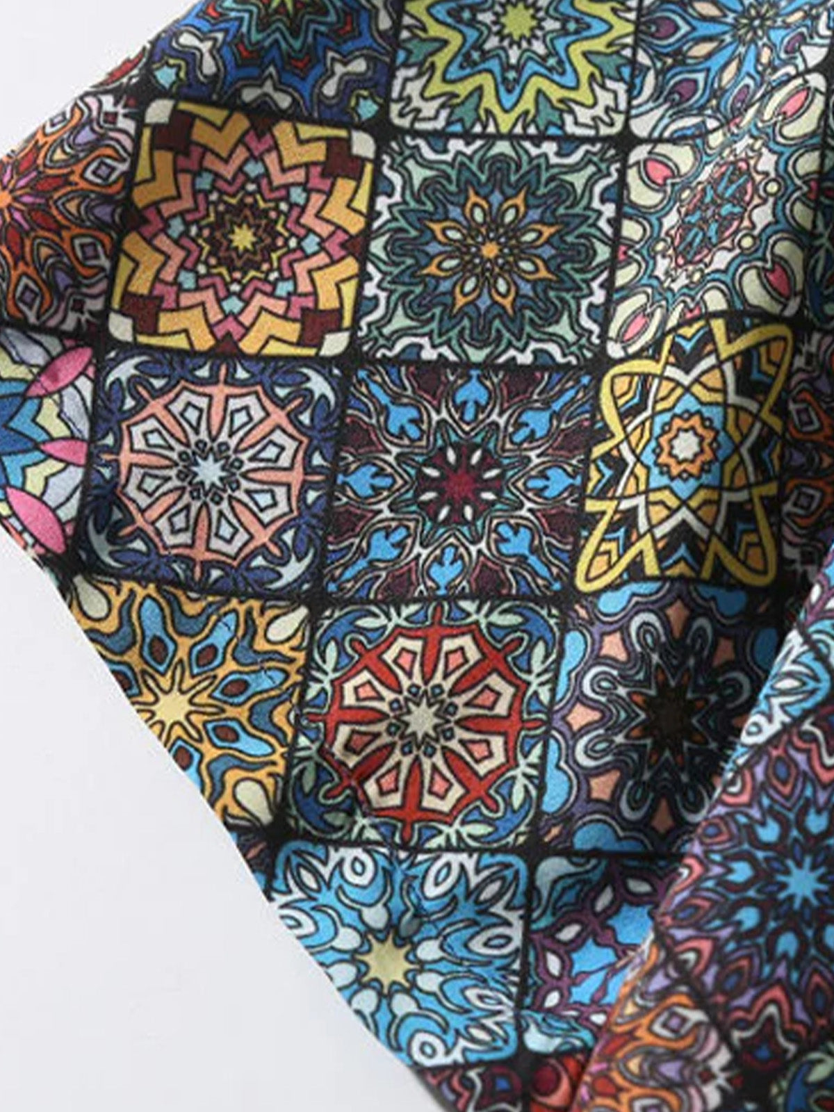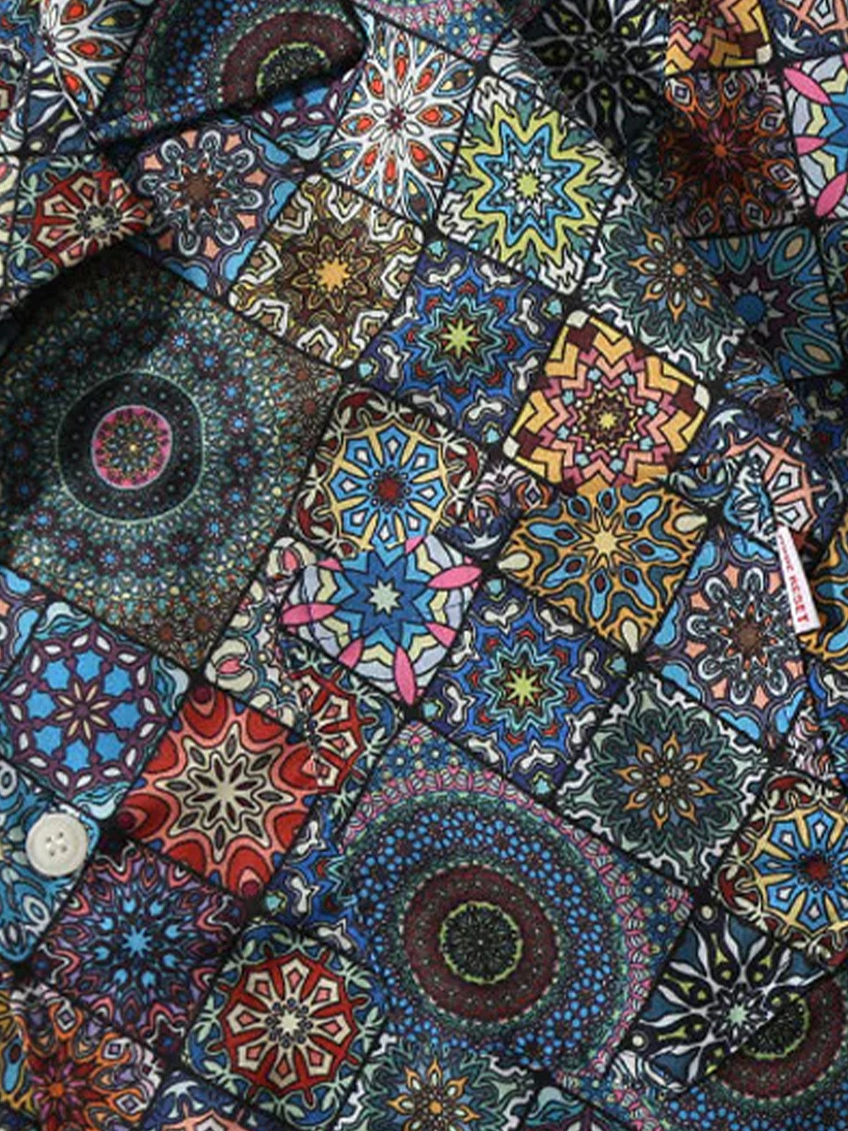 Design Concept: Inspired by kaleidoscope, this Hawaiian shirt with eye-catching and bright prints is designed. The coconut button on the front is a subtle embellishment that can inspire your sense of fashion. The wide collar, unique print and wide cuffs create a relaxed feeling. The chest is equipped with pockets with excellent storage capacity, which is convenient for storing necessary small items. Perfect for the upcoming hot season!