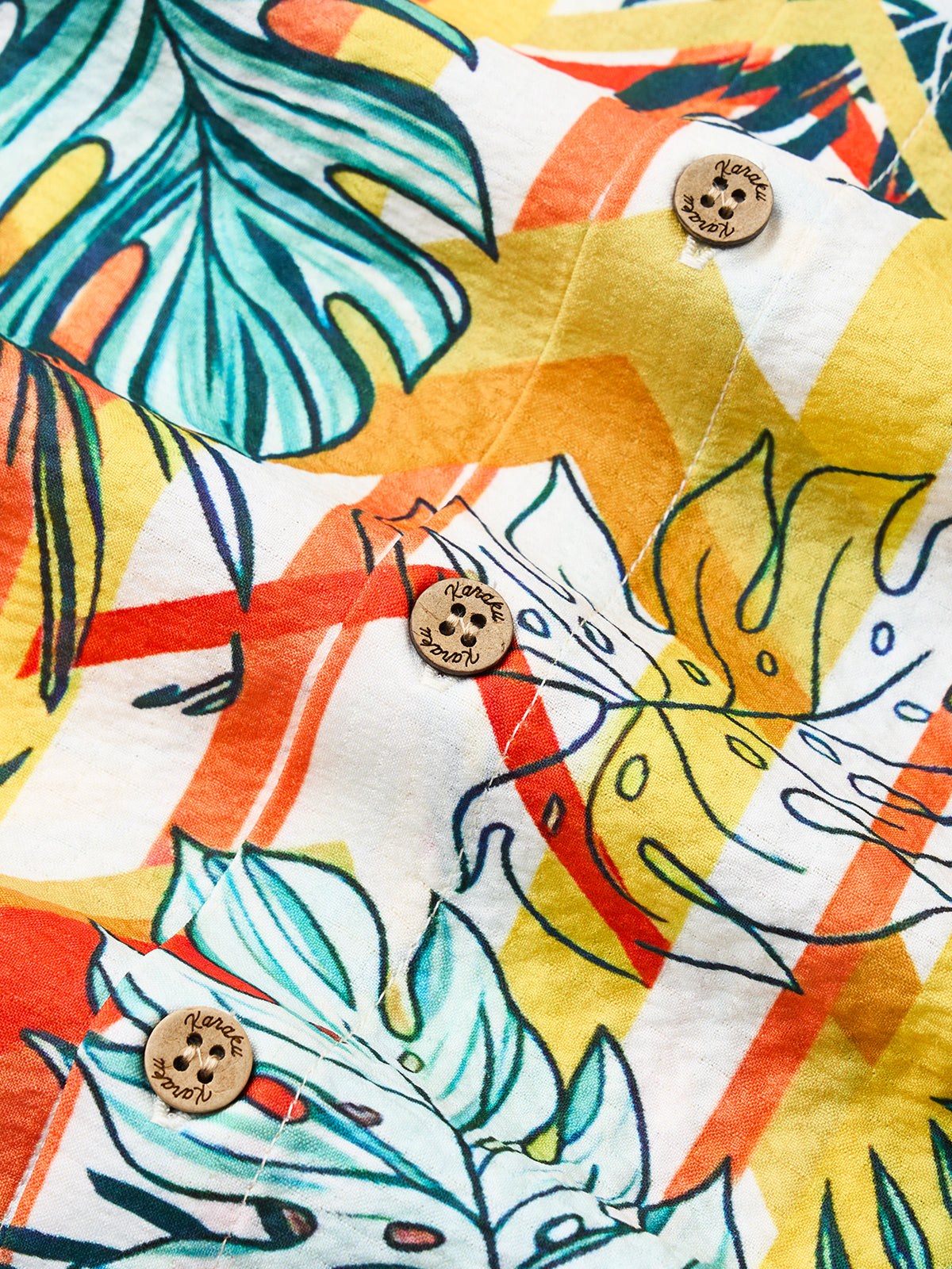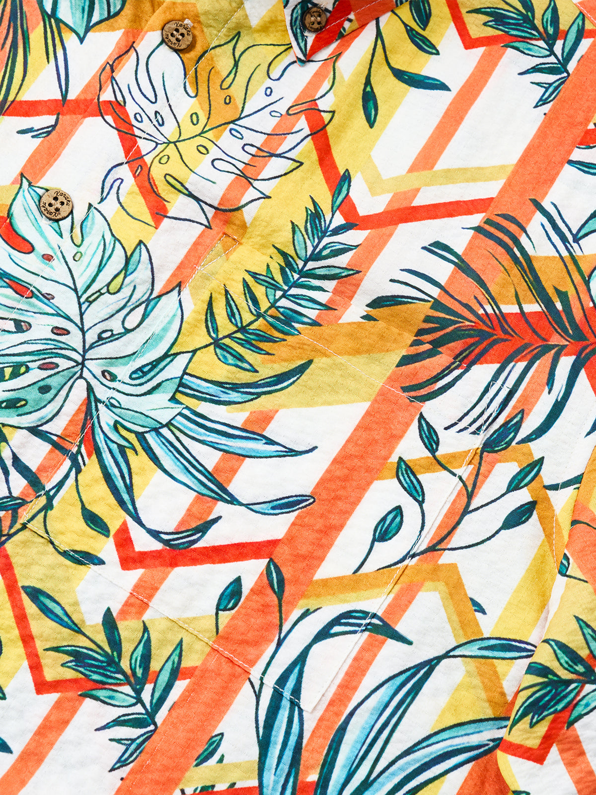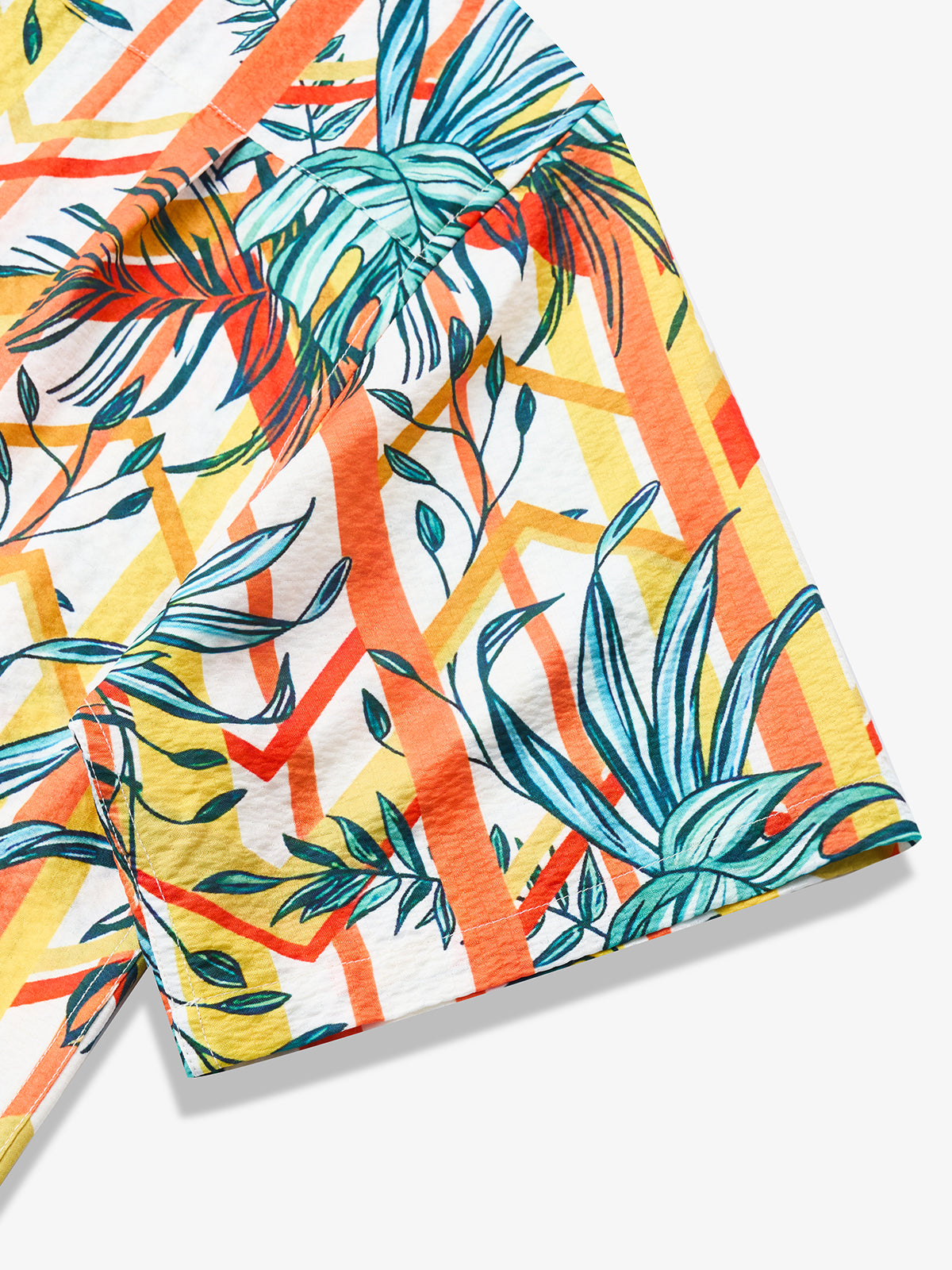 Inspired by the vibrant tropical jungle, this shirt features green Monstera patterns on a lively orange-yellow background, exuding freedom and energy. Made from seersucker fabric, it offers lightweight comfort and breathability. Perfect for beach vacations, summer gatherings, or casual wear, it's ideal for men who love nature and seek a unique, stylish look to showcase their confidence.